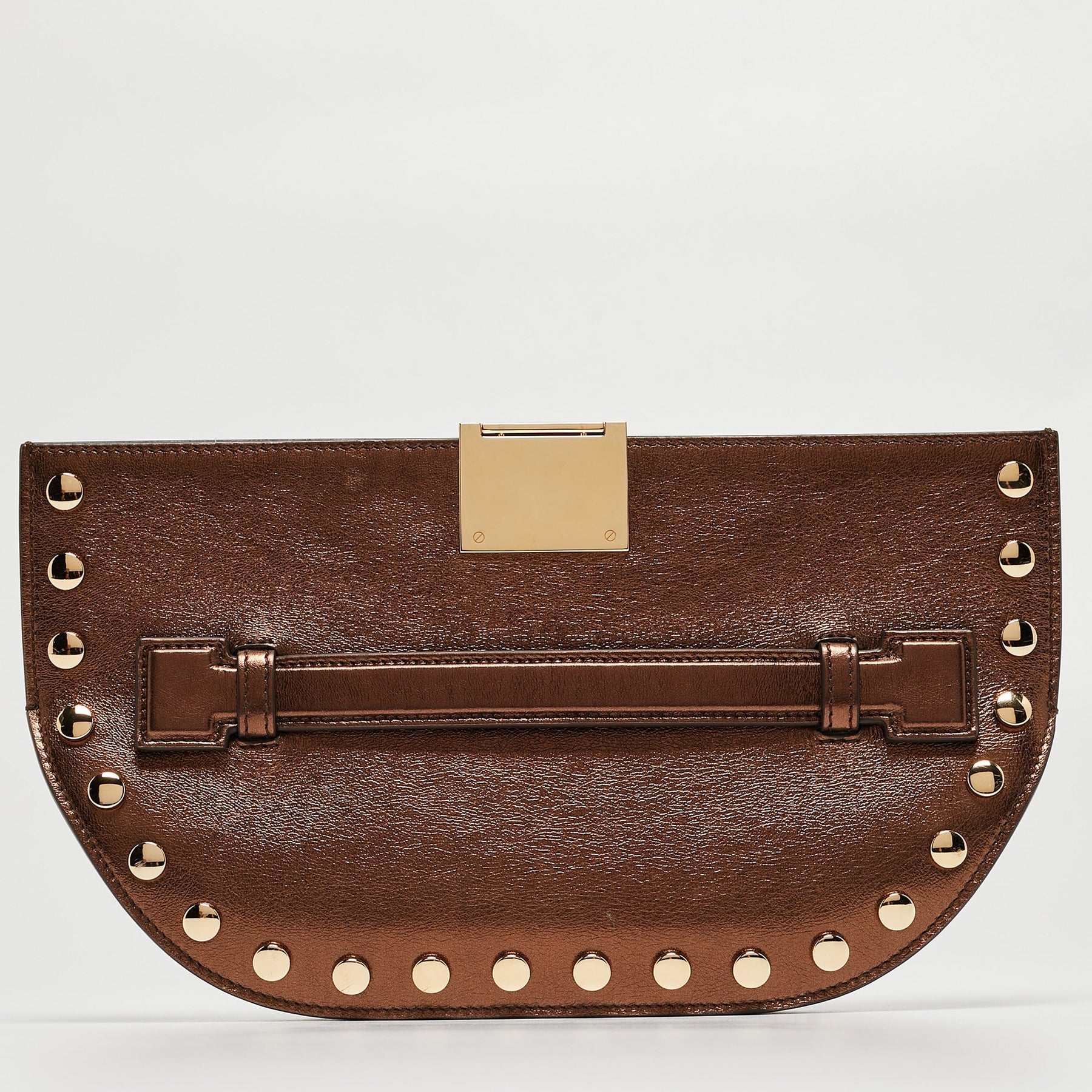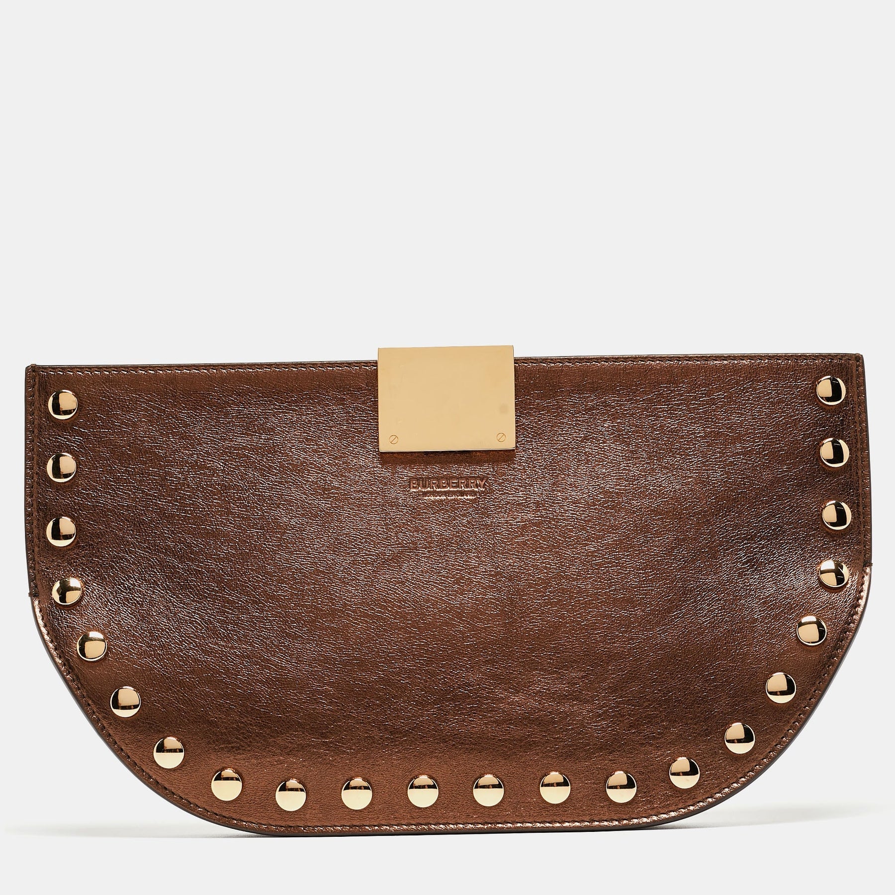 BURBERRY Bronze Leather Studded Olympia Clutch