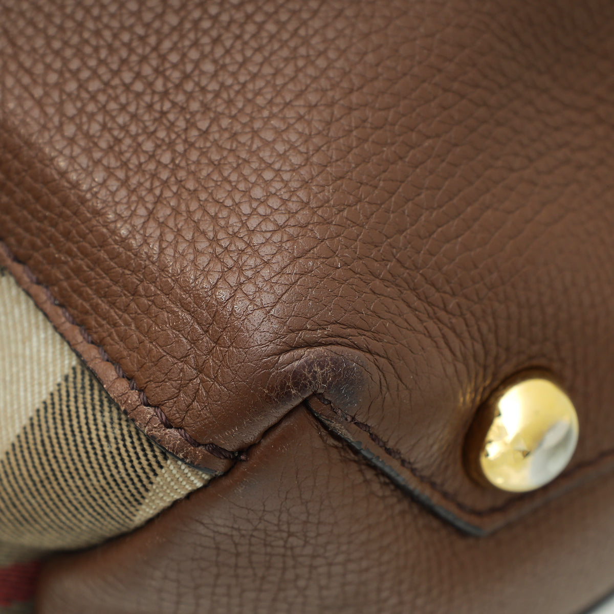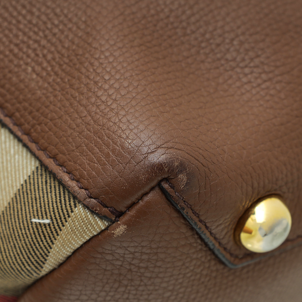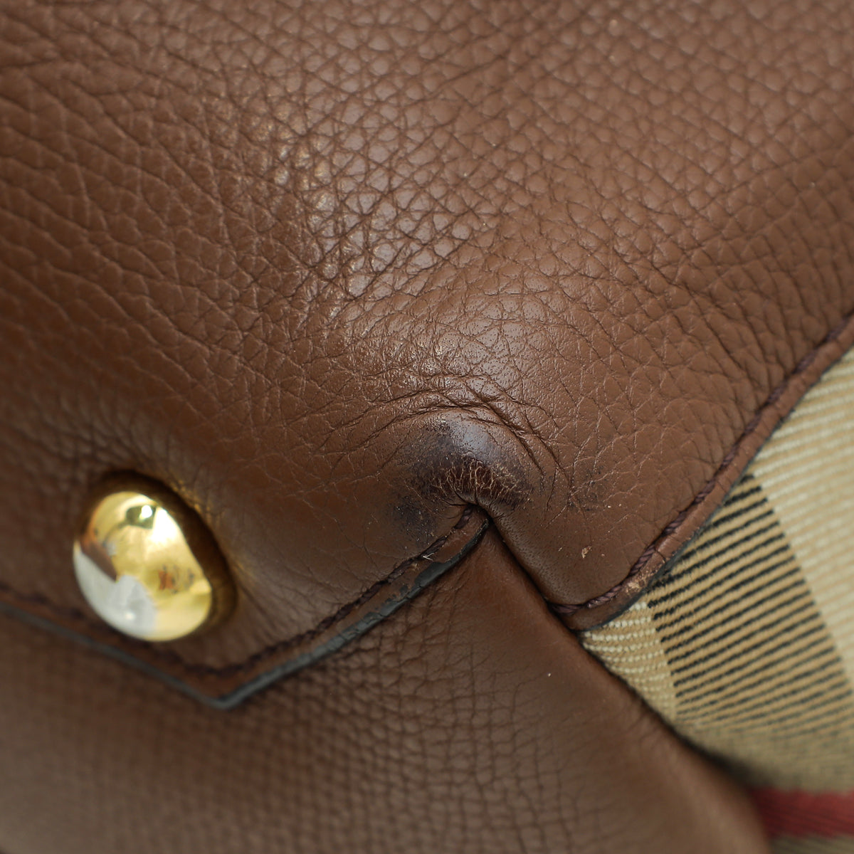 - Material: Brown Calfskin Leather with House Check Canvas Trim