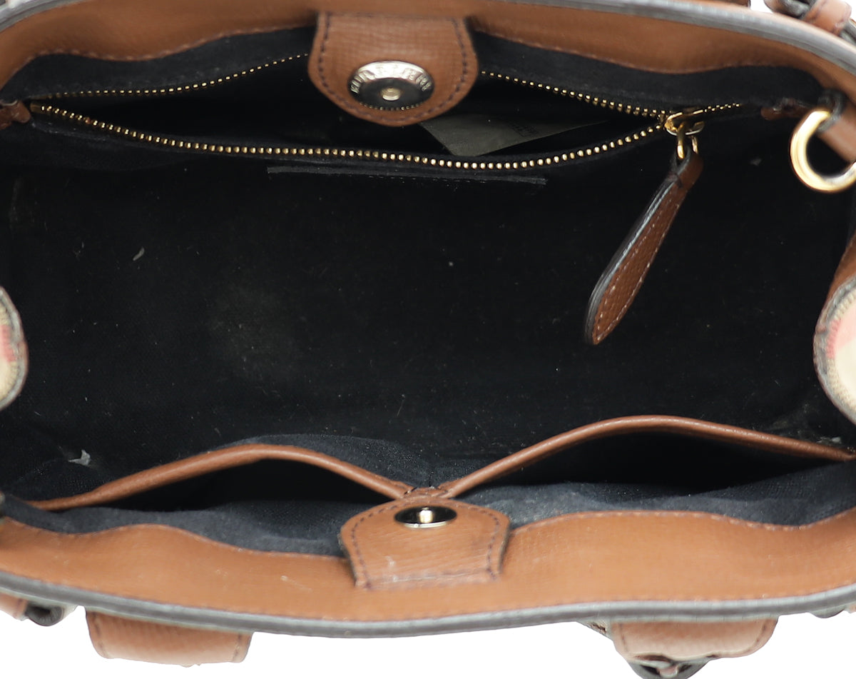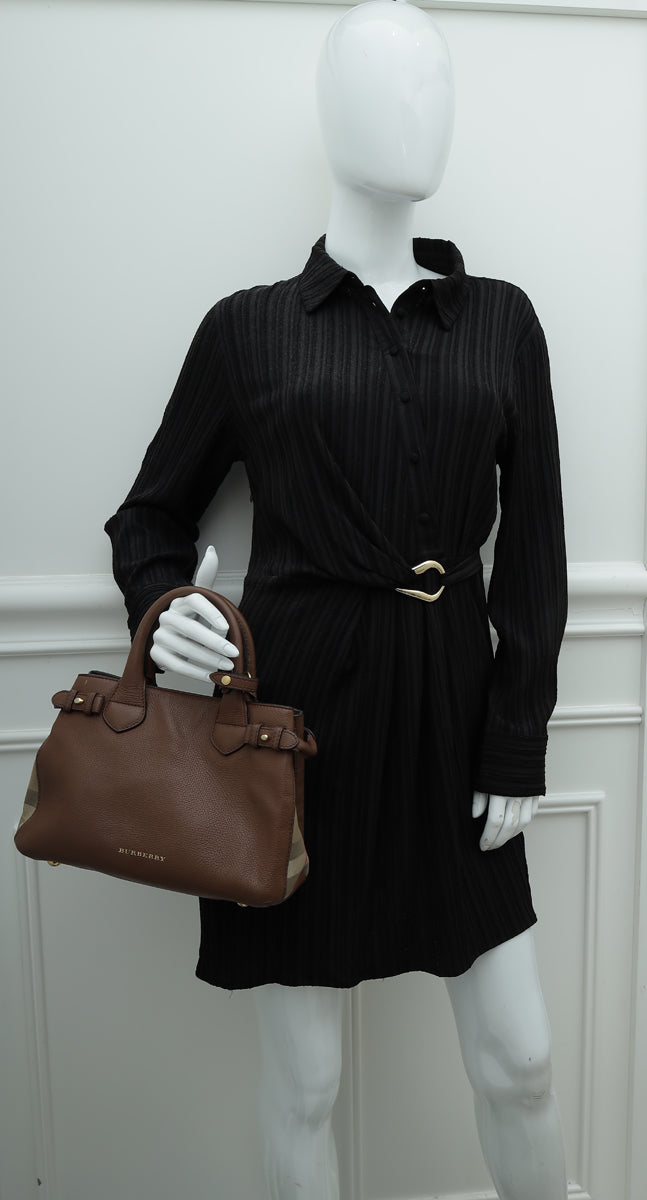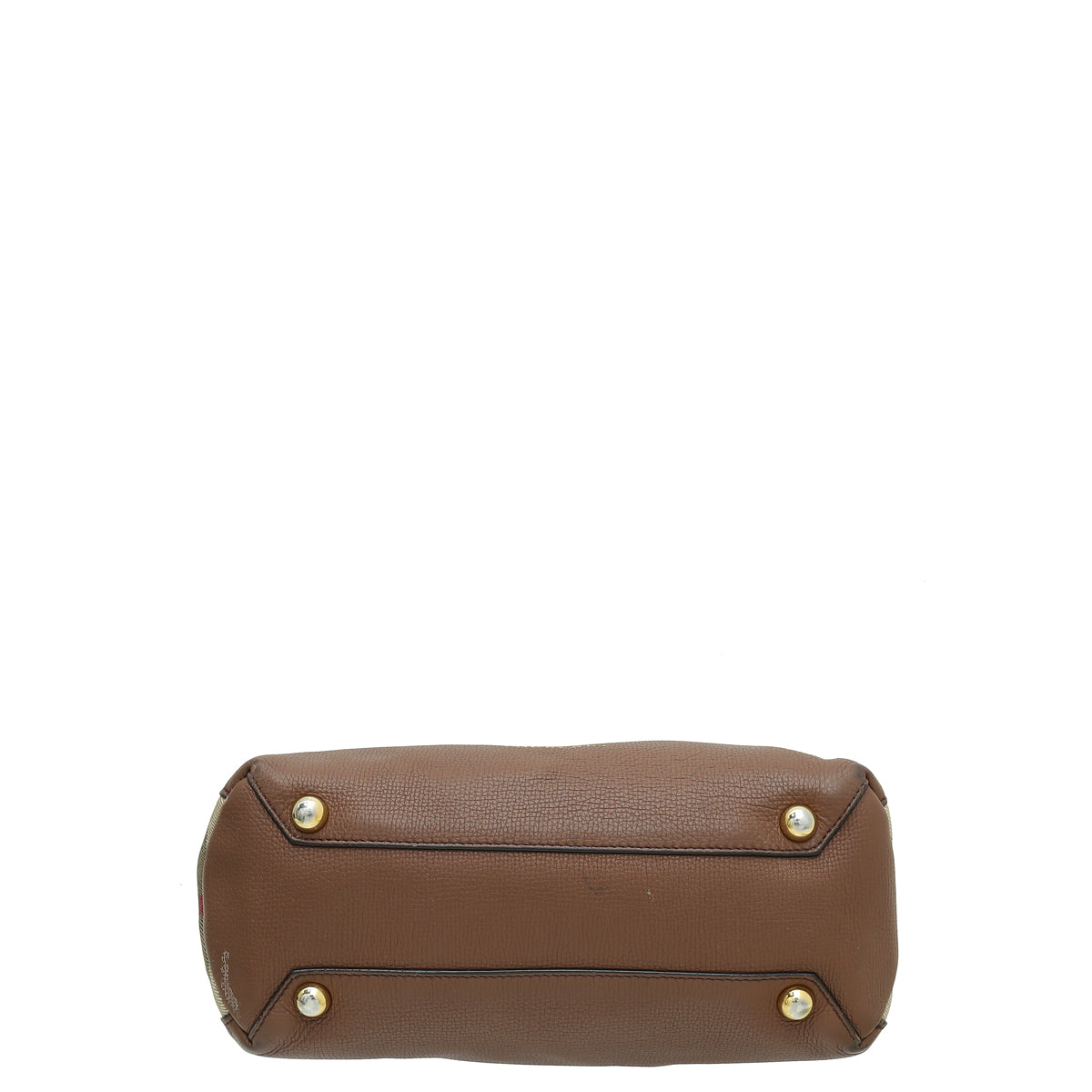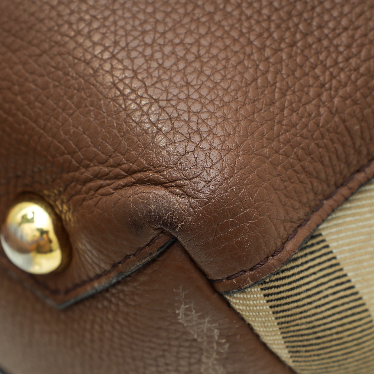 - Material: Brown Calfskin Leather with House Check Canvas Trim