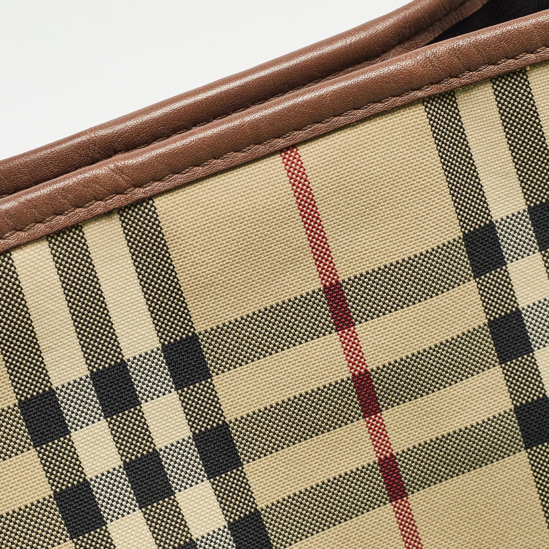 BURBERRY Brown/Beige Haymarket Fabric and Leather Canterbury Tote