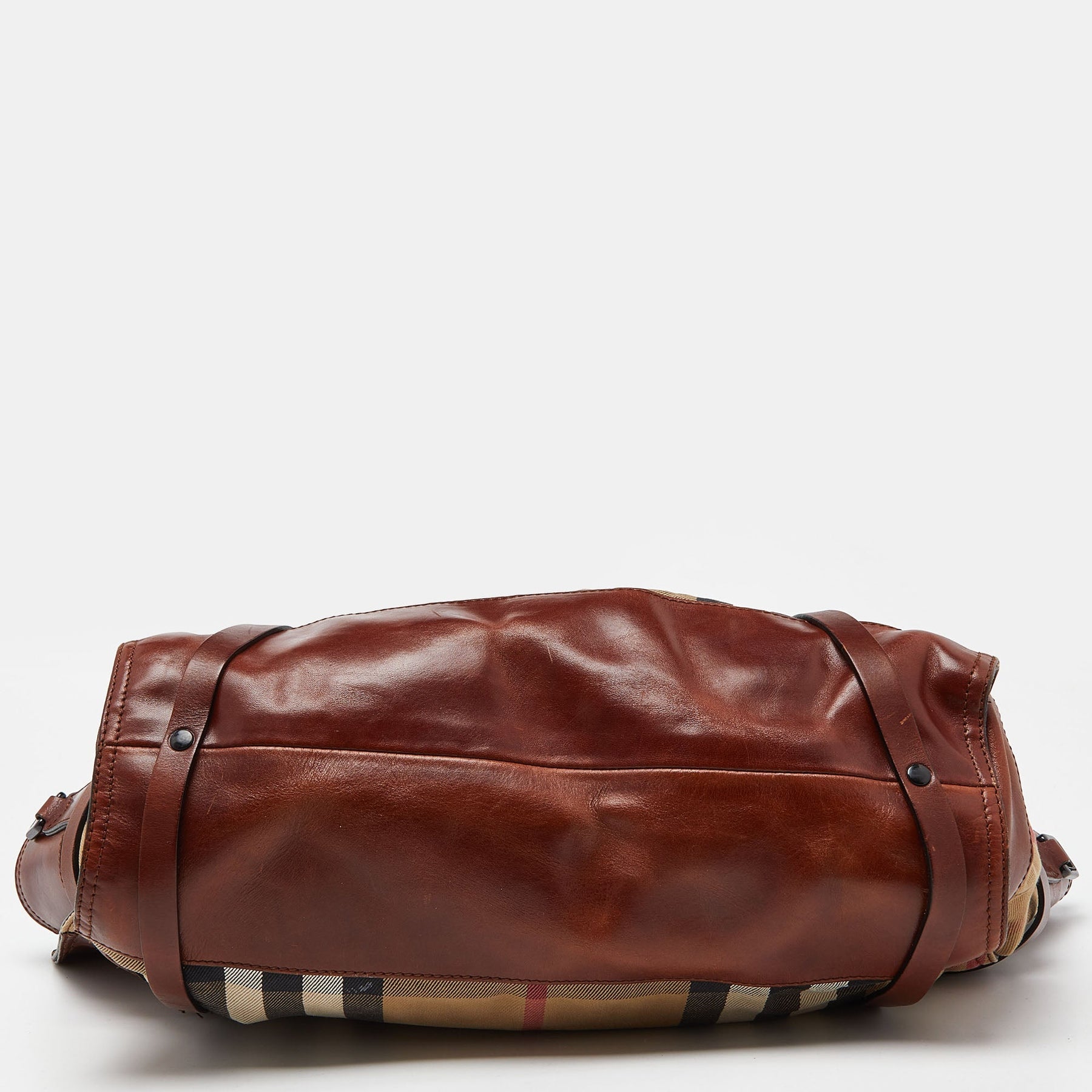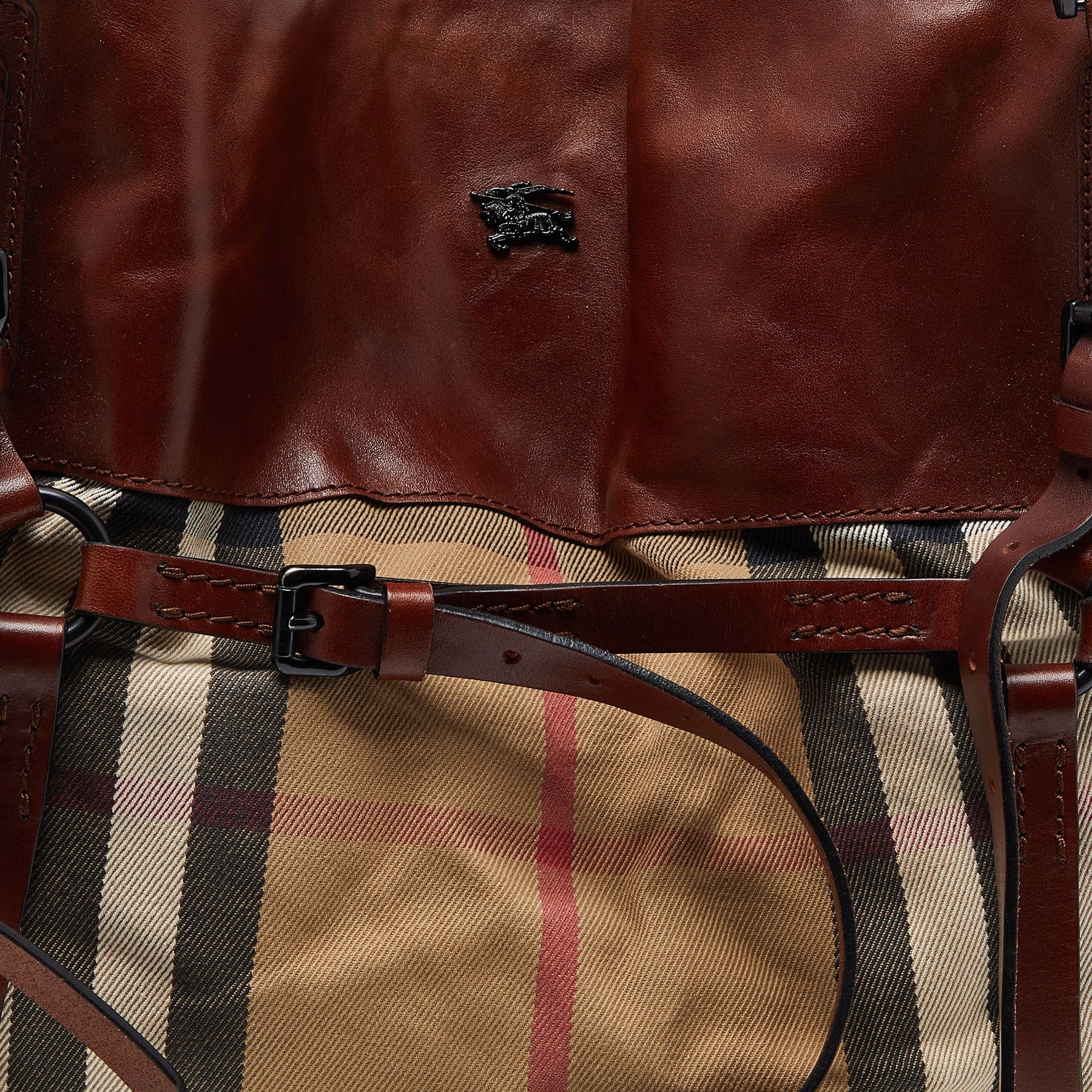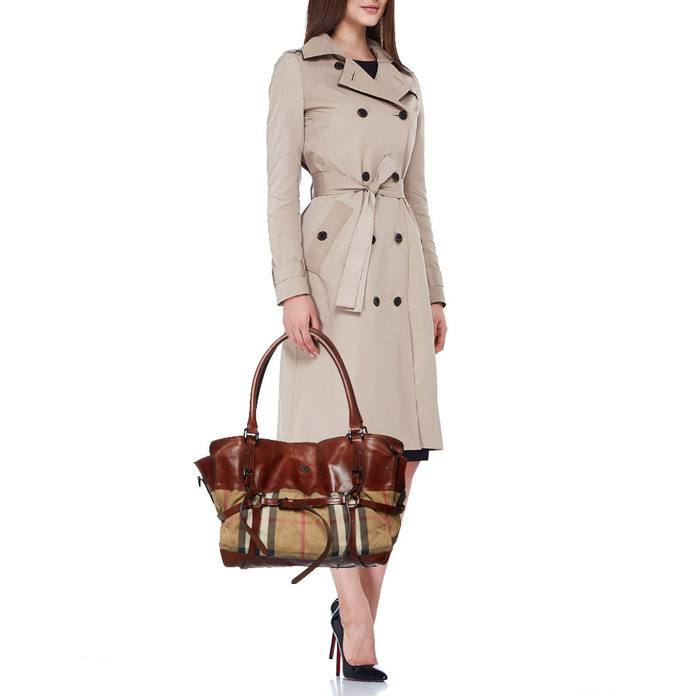 BURBERRY Brown/Beige House Check Canvas and Leather Belted Tote