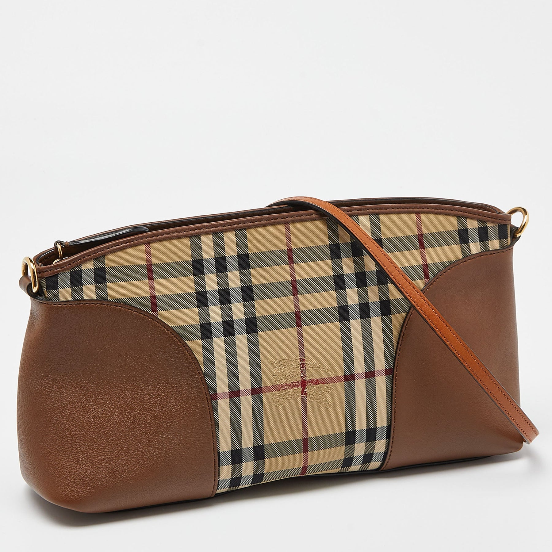 BURBERRY Brown/Beige House Check Canvas and Leather Small Chichester Crossbody Bag