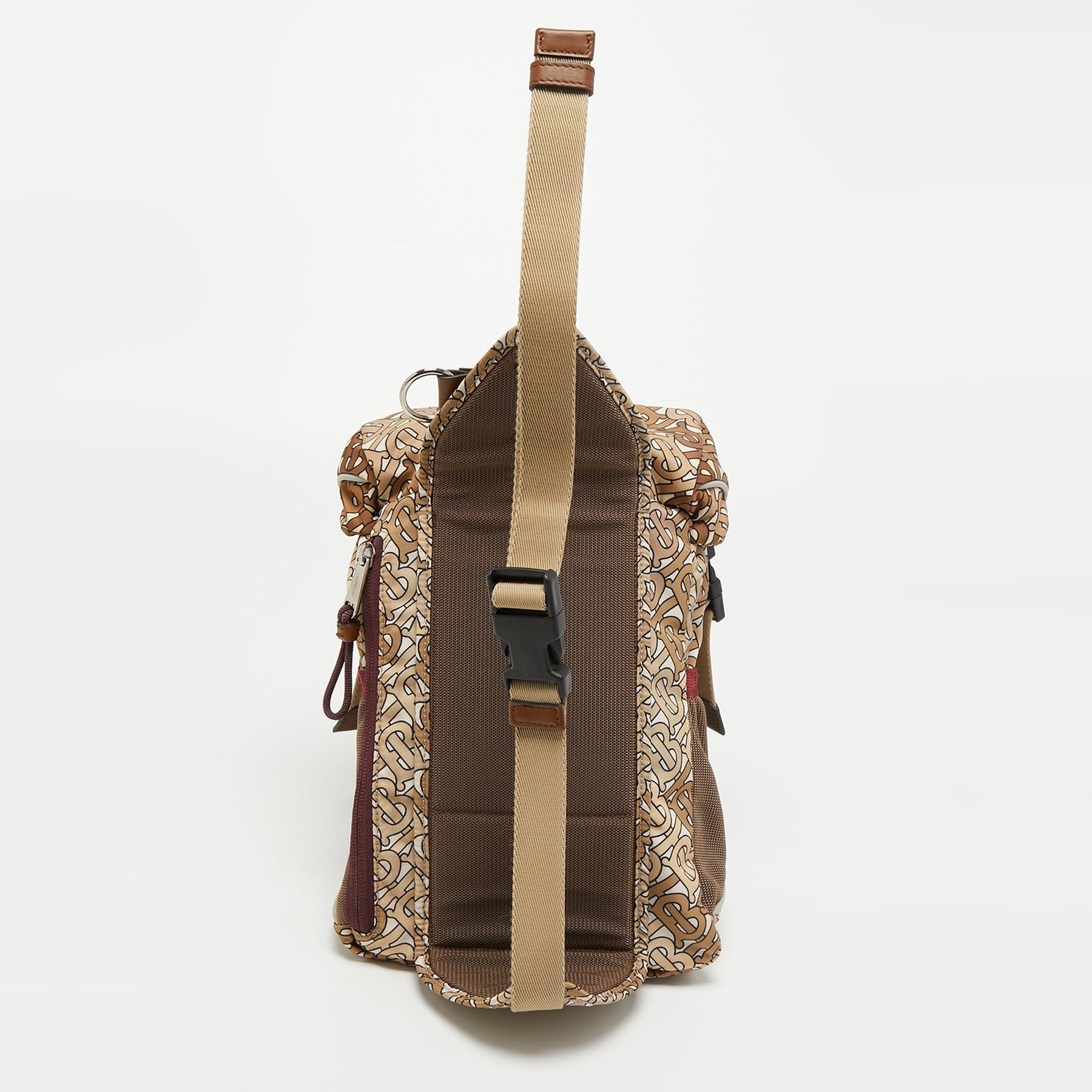 BURBERRY Brown TB Monogram Nylon and Mesh Leo Sling Bag