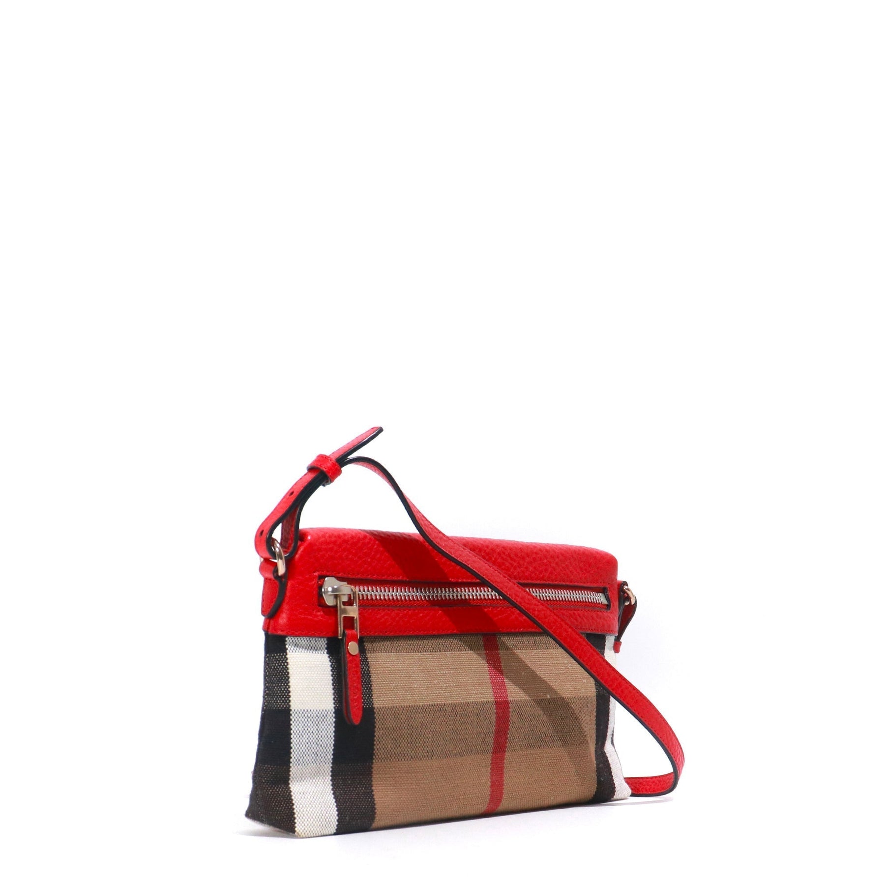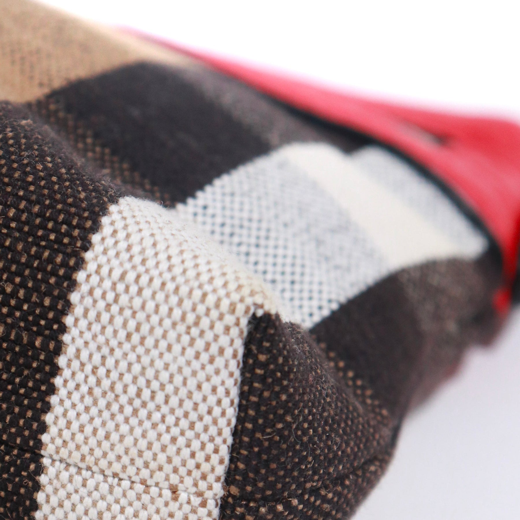 Model: Farley Material: Cotton | Leather Color: Brown | Red Zip closure Dimensions: 28cm x 15cm x 14cm Removable red leather shoulder strap