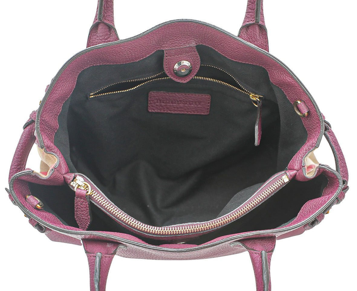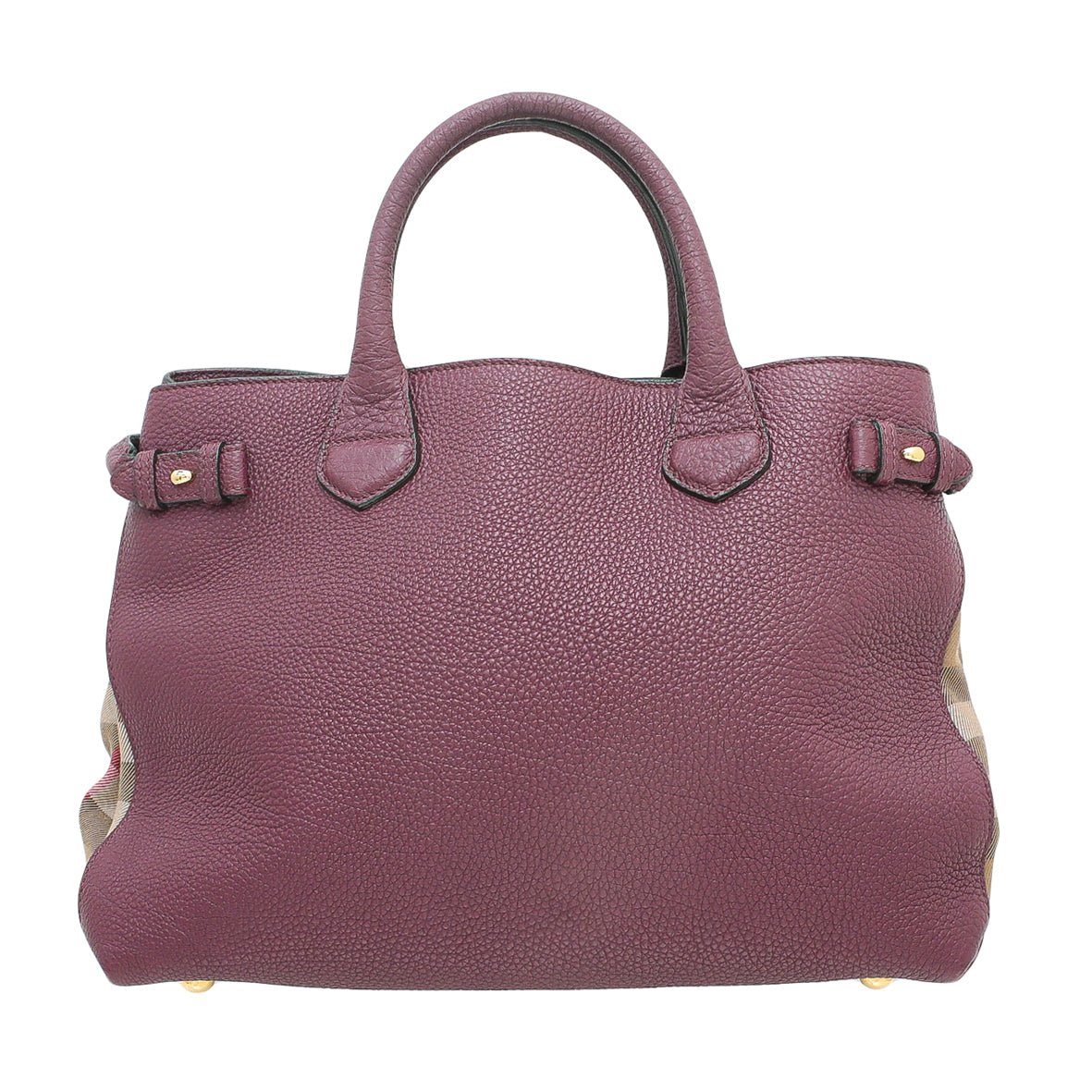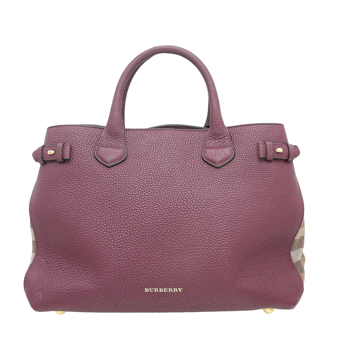 - Material: Burgundy Calfskin Leather with House Check Canvas Trim