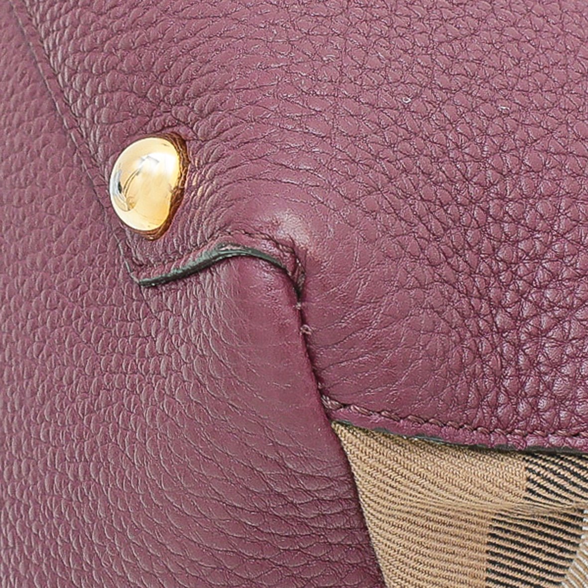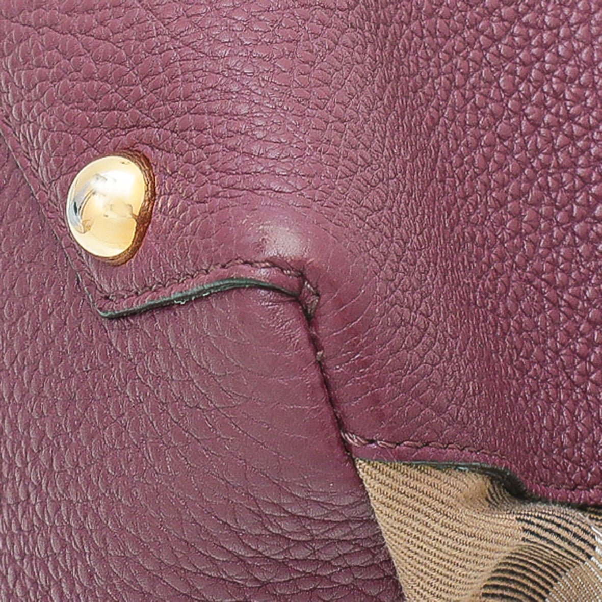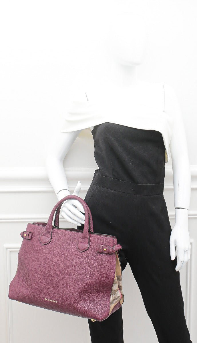 - Material: Burgundy Calfskin Leather with House Check Canvas Trim