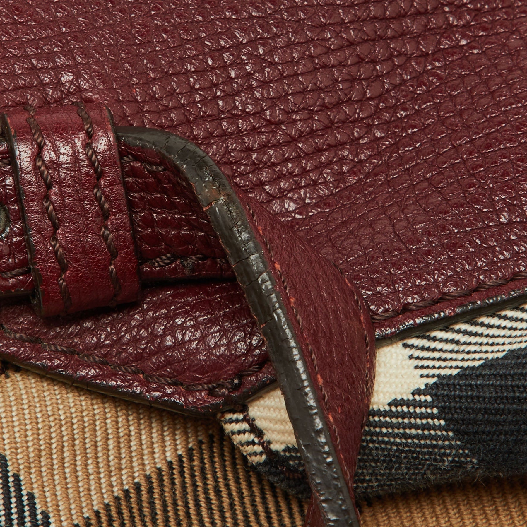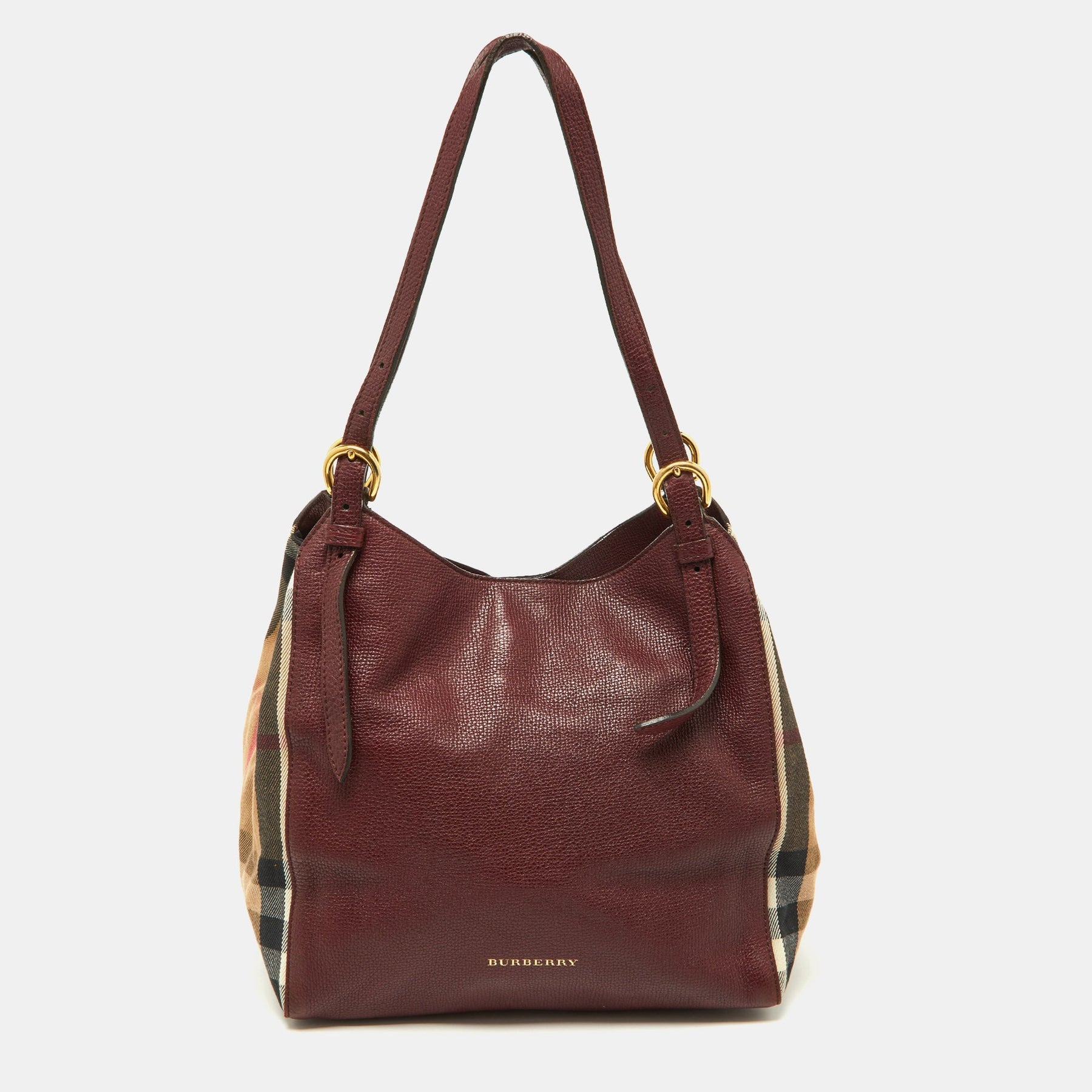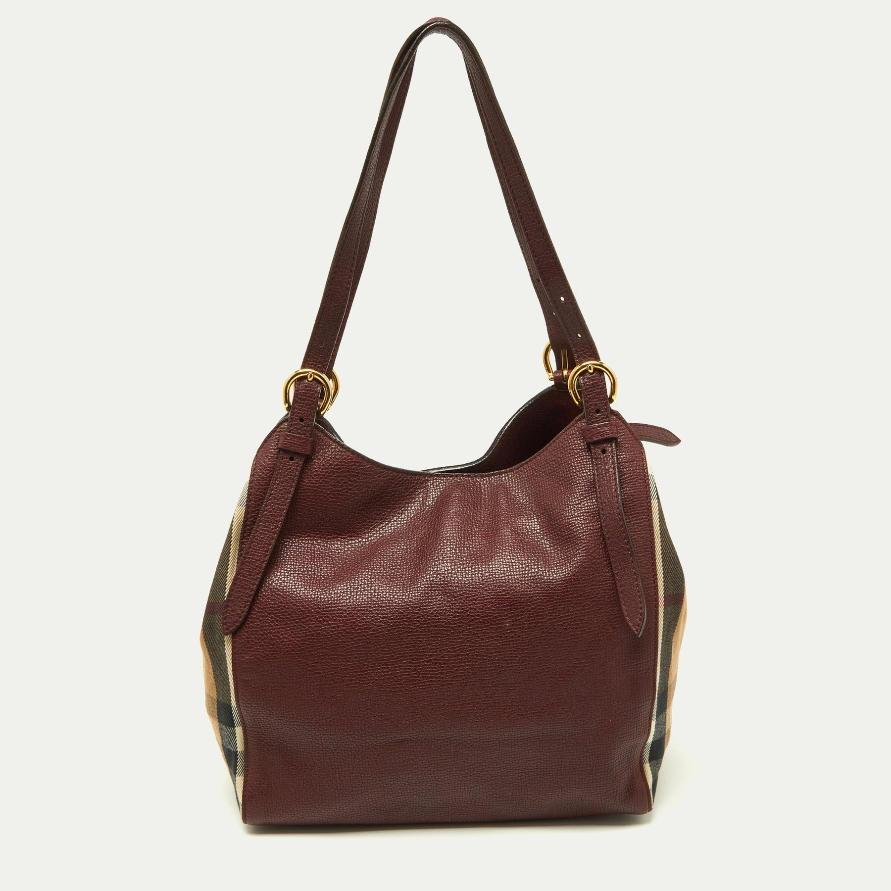 BURBERRY Burgundy/Beige House Check Fabric and Leather Small Canterbury Tote