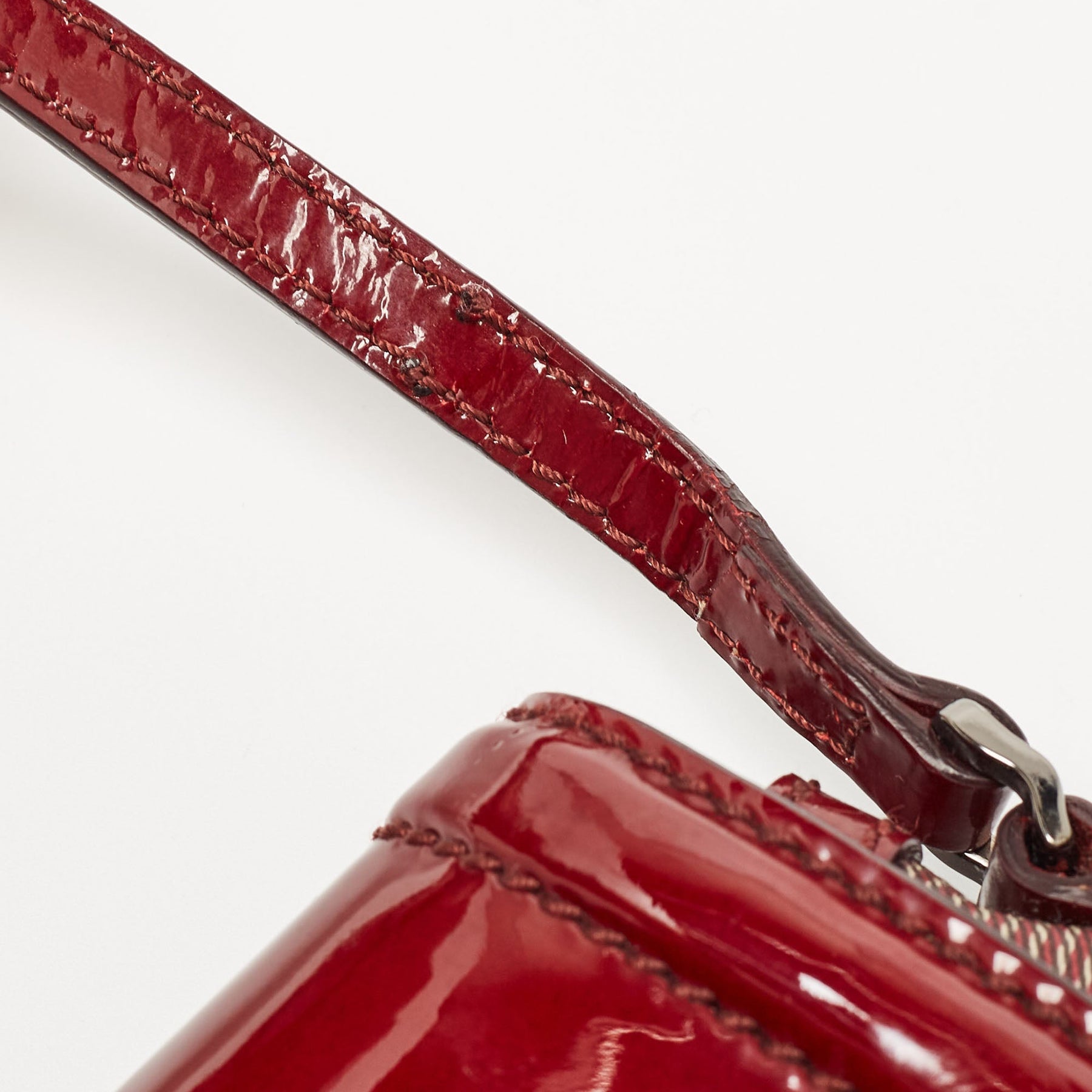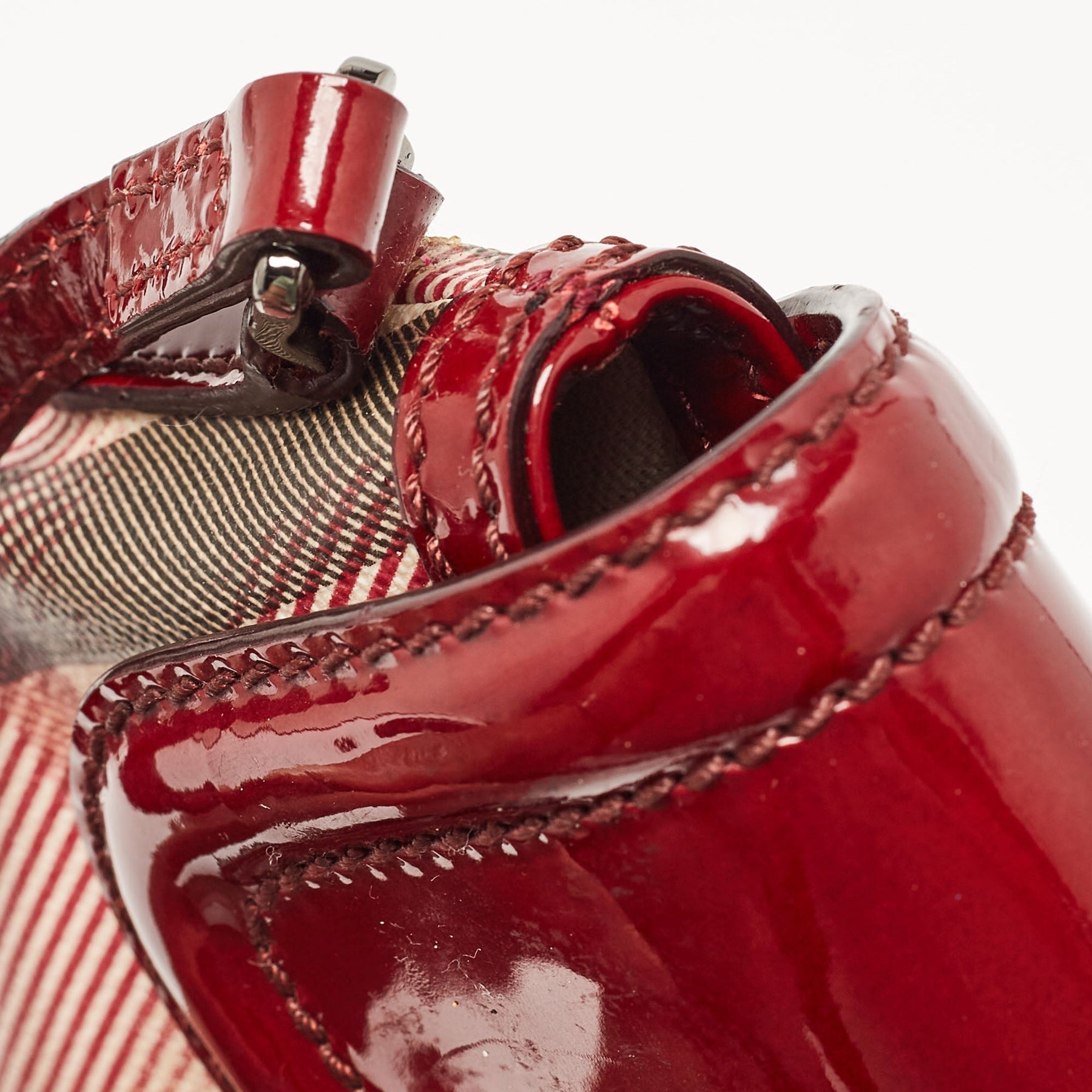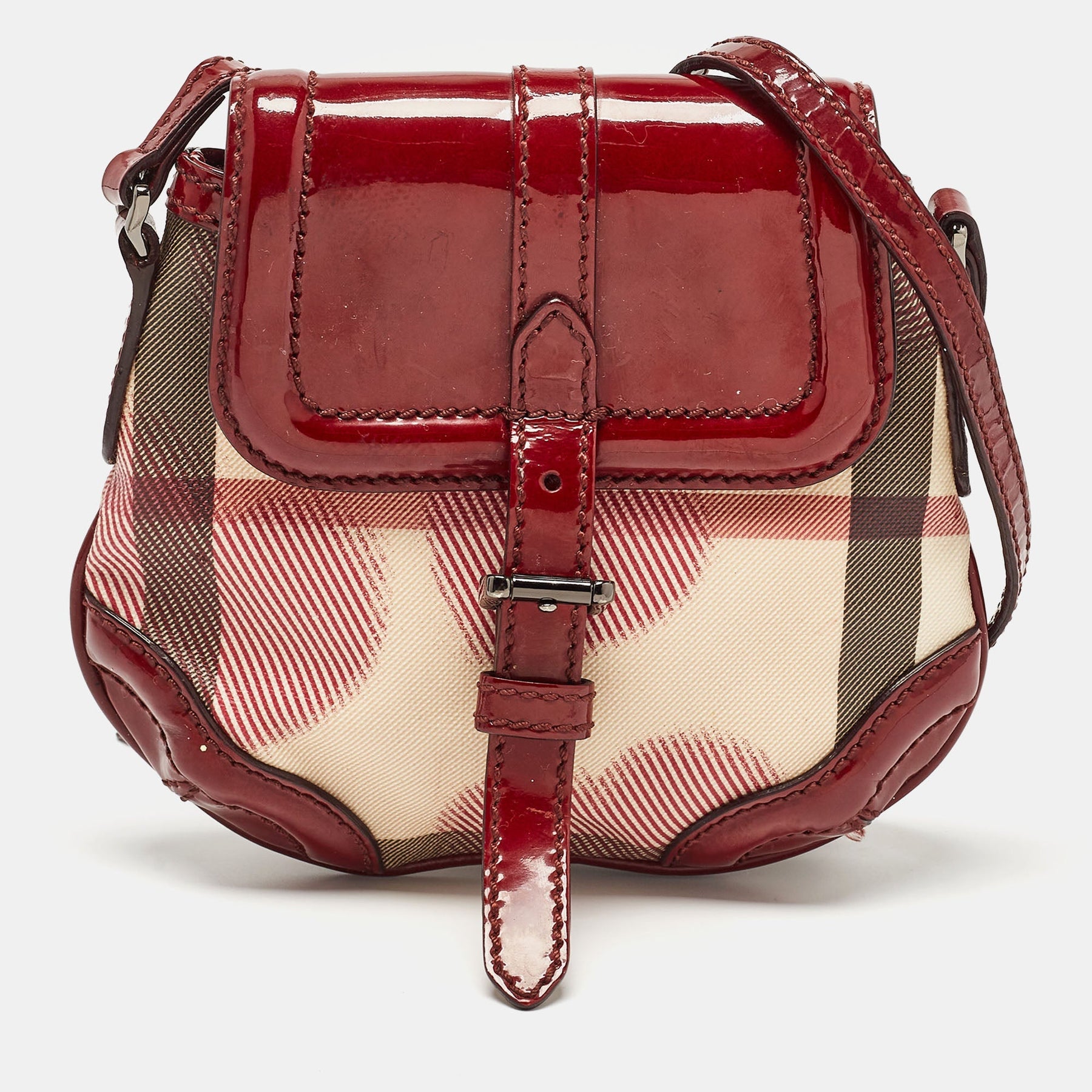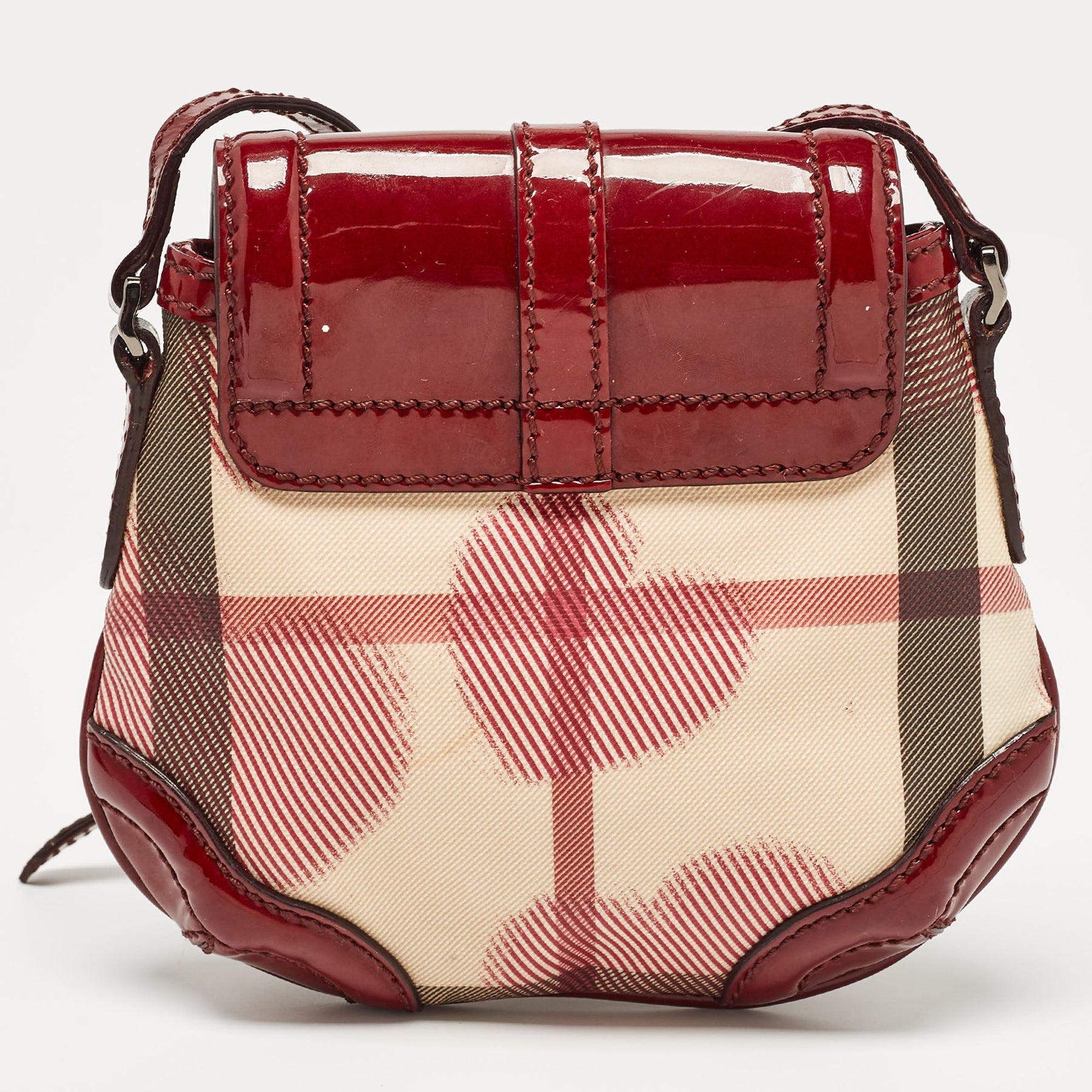 BURBERRY Burgundy/Beige House Check PVC and Patent Leather Heart Flap Crossbody Bag
