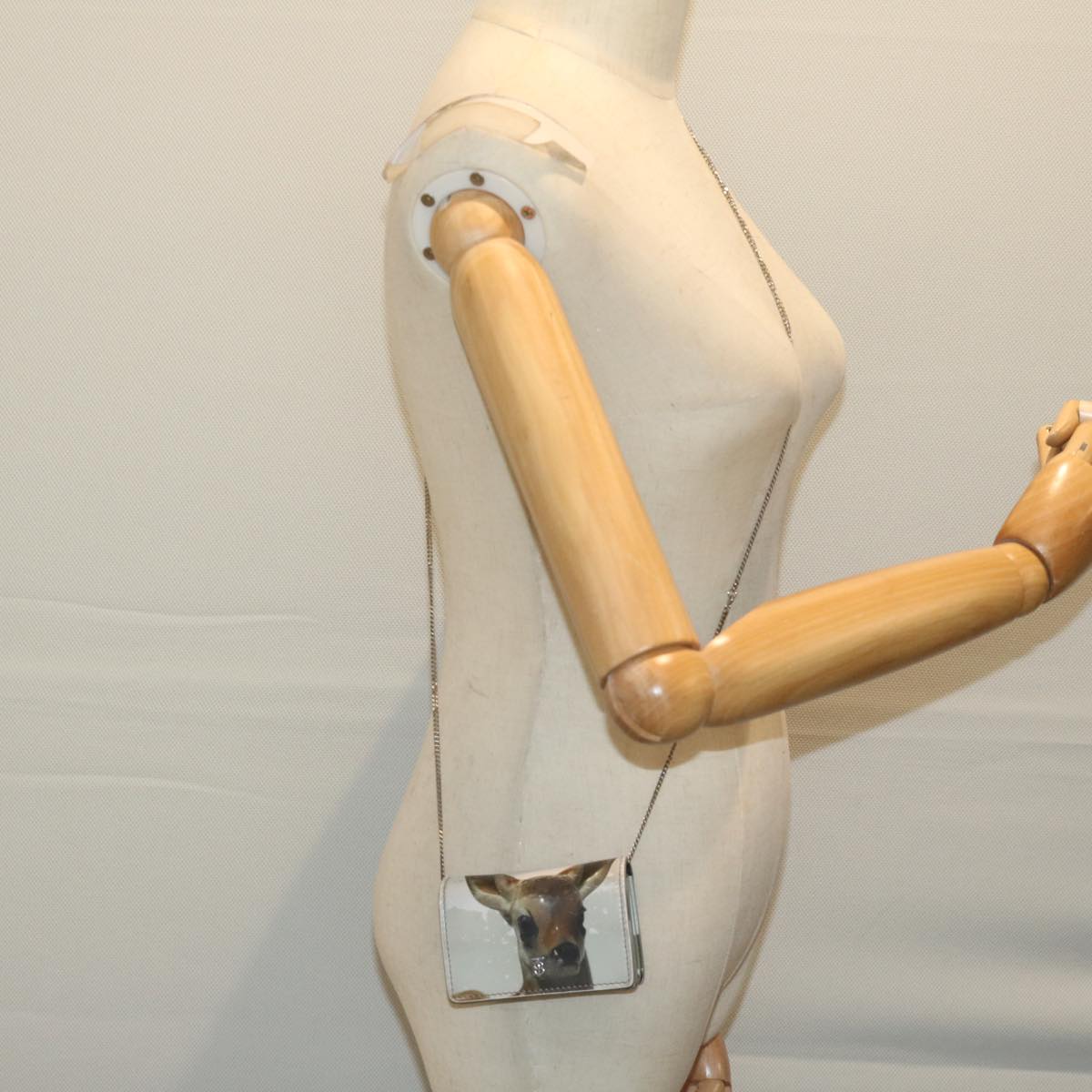 BURBERRY Chain Wallet Patent leather Gray Auth 64515