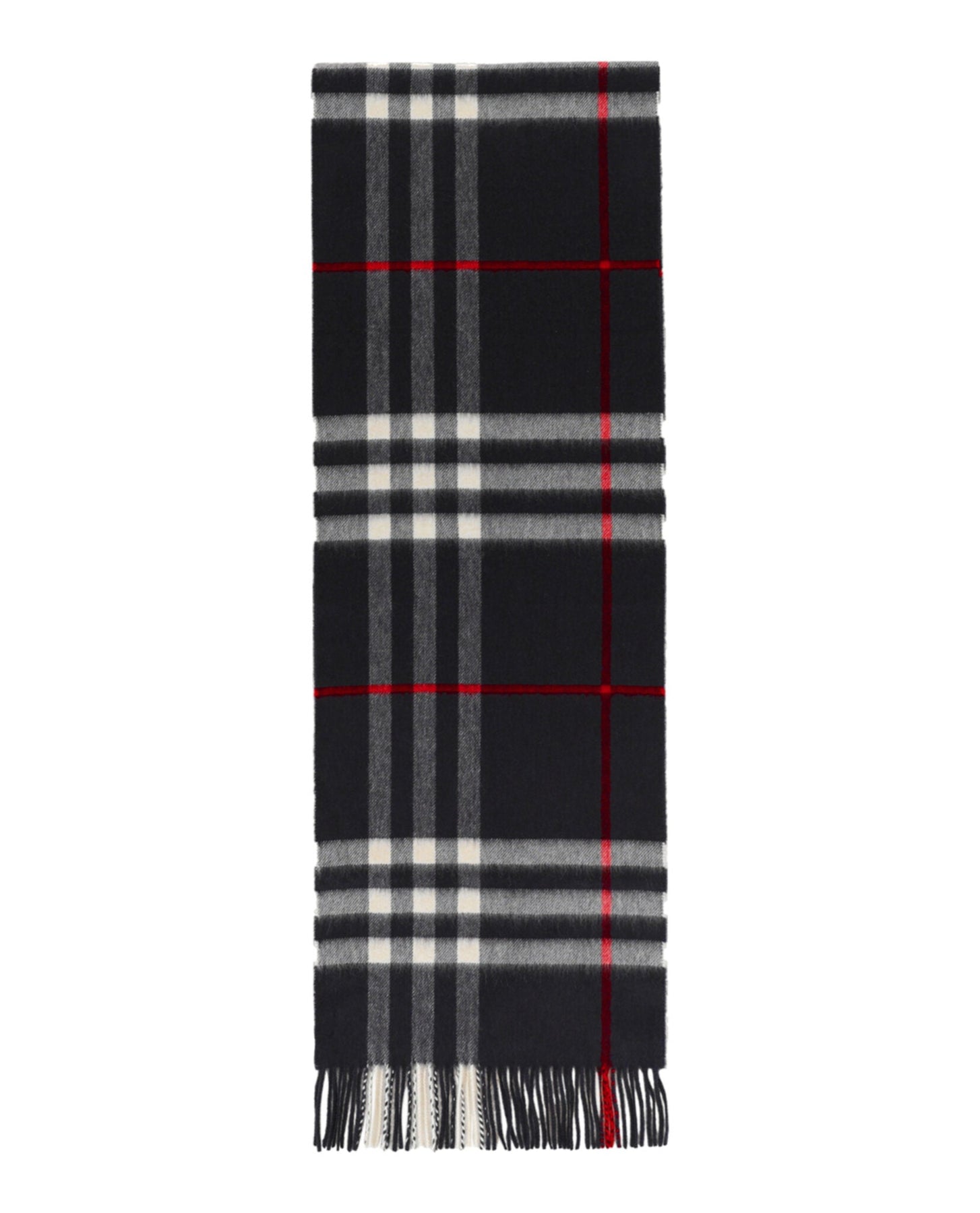 Indulge in timeless elegance with the Burberry Check Cashmere Scarf. Crafted from luxurious 100% cashmere and made in Italy, this iconic black checked scarf is a must-have addition to any woman's wardrobe. Perfect for both warmth and style, it effortlessly complements any outfit. With exclusive outlet deals, now is the perfect time to add this luxurious accessory to your collection.