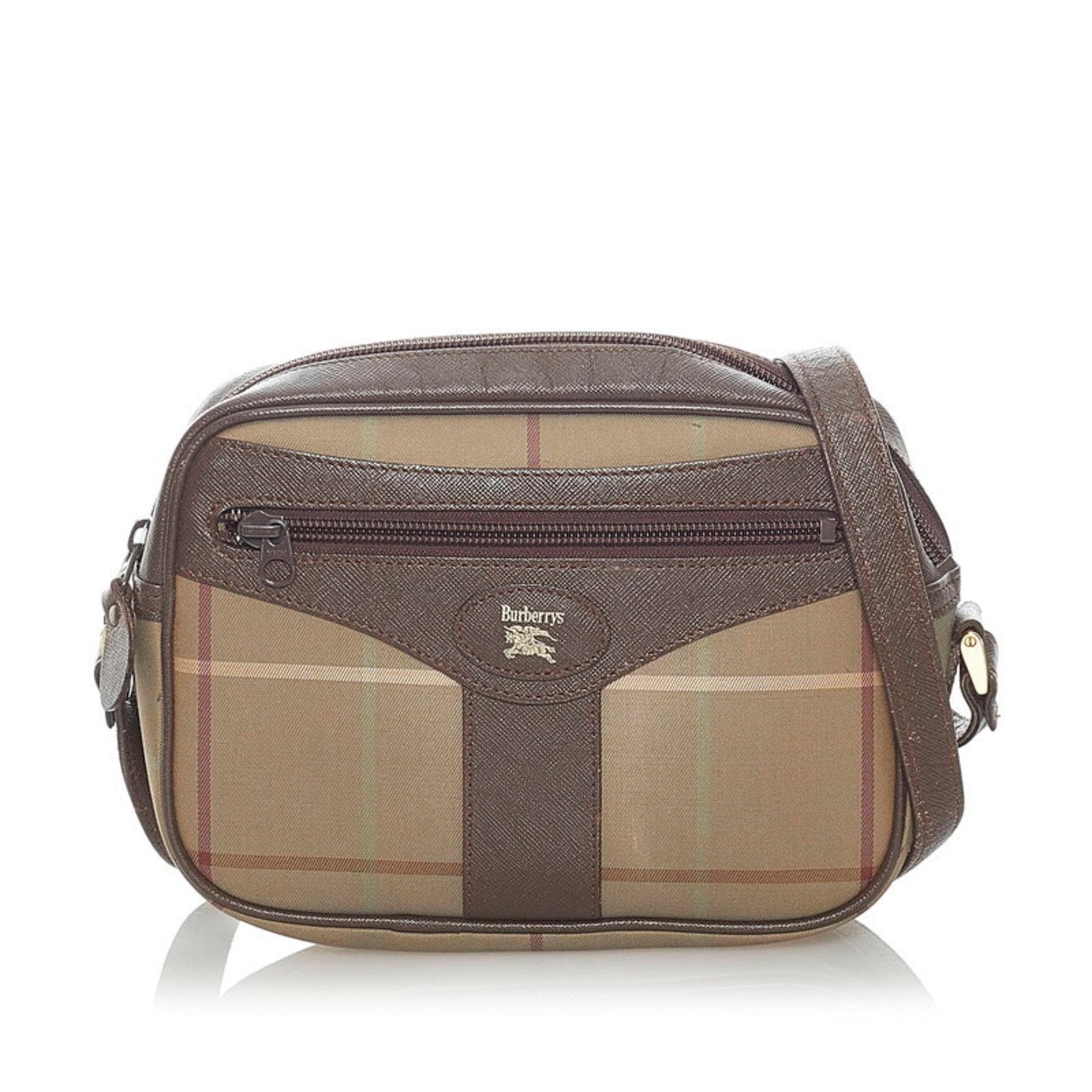 Burberry check shoulder bag khaki brown canvas leather Lady's BURBERRY
