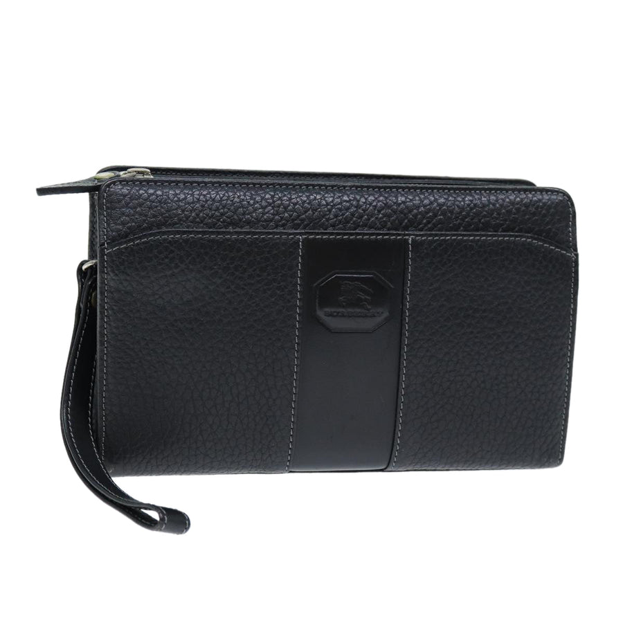 BURBERRY Clutch Bag Leather Black Auth bs14349