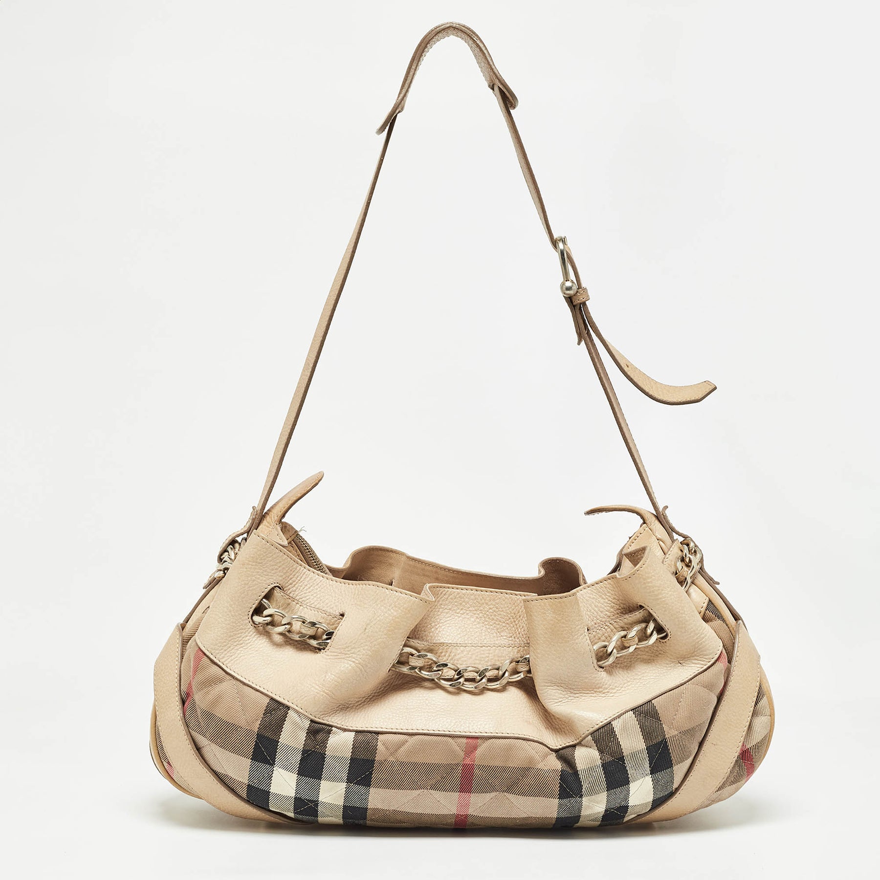 BURBERRY Cream/Beige Quilted House Check Fabric and Leather Shoulder Bag