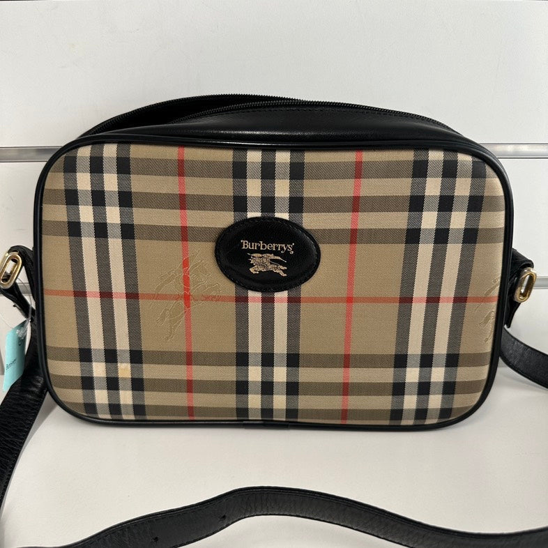 This used Burberry Check Plaid Beige Crossbody Bag 9363 is a stylish addition to any wardrobe. Crafted from iconic Burberry check canvas, it features a durable leather strap and is designed with functionality in mind. The interior is lined in black canvas and offers ample storage, making it perfect for daily use. Whether you're a collector or simply love vintage Burberry bags, this piece stands out among used designer handbags.