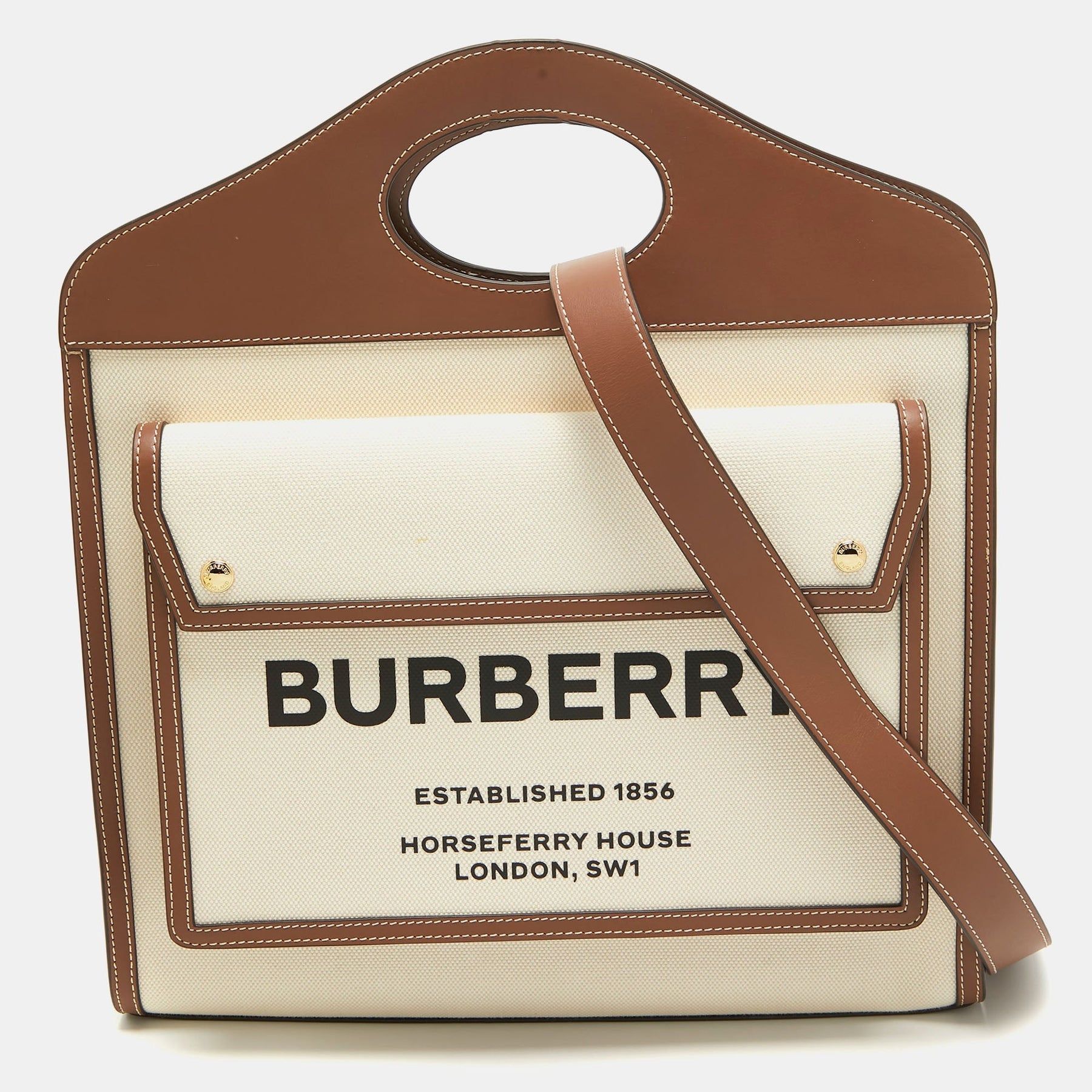 BURBERRY Dark Brown/Beige Canvas and Leather Medium Pocket Bag
