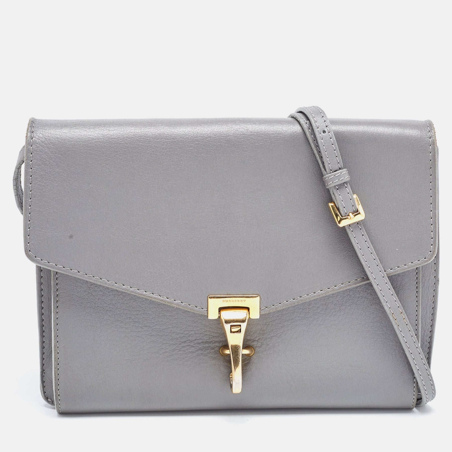 BURBERRY Dark Grey Leather Small Macken Crossbody Bag