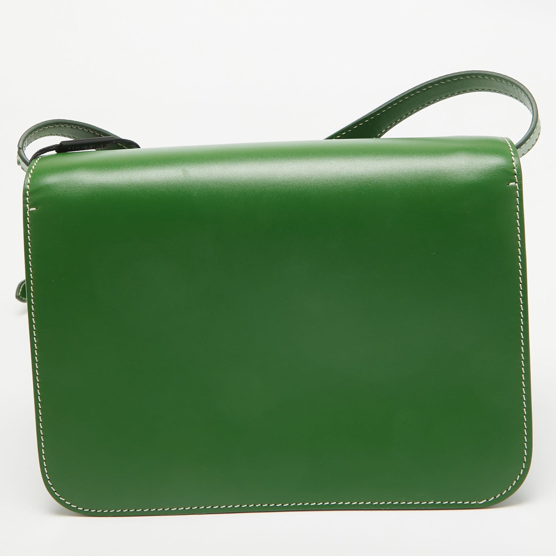 Burberrys green leather shoulder bag is a knowing investment piece thats on trend now, too. Its finished with an elegant gold tone metal TB clasp as well as an adjustable shoulder strap so it can be in a number of different ways. Carry it with everyday ensembles for a modern yet timeless edit.