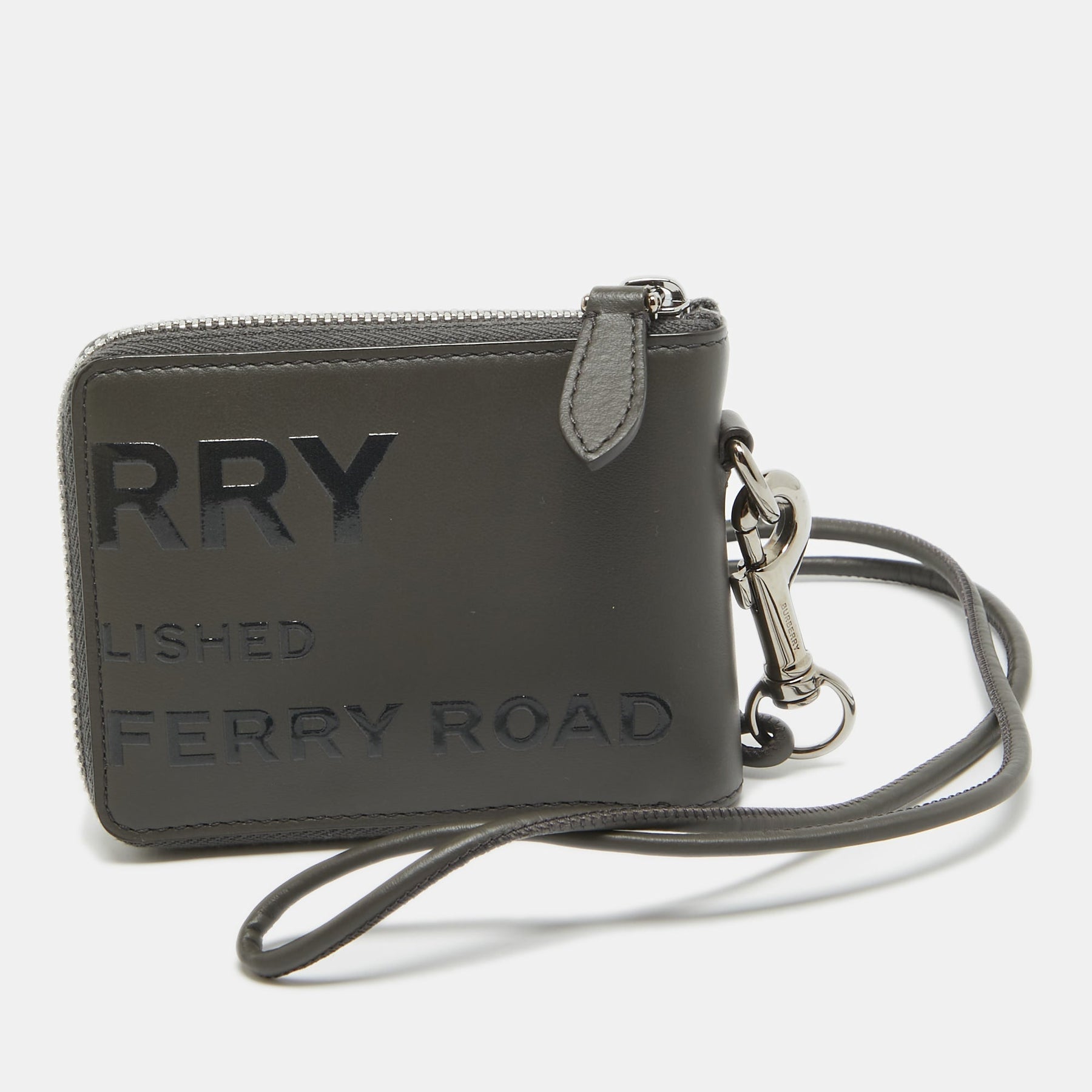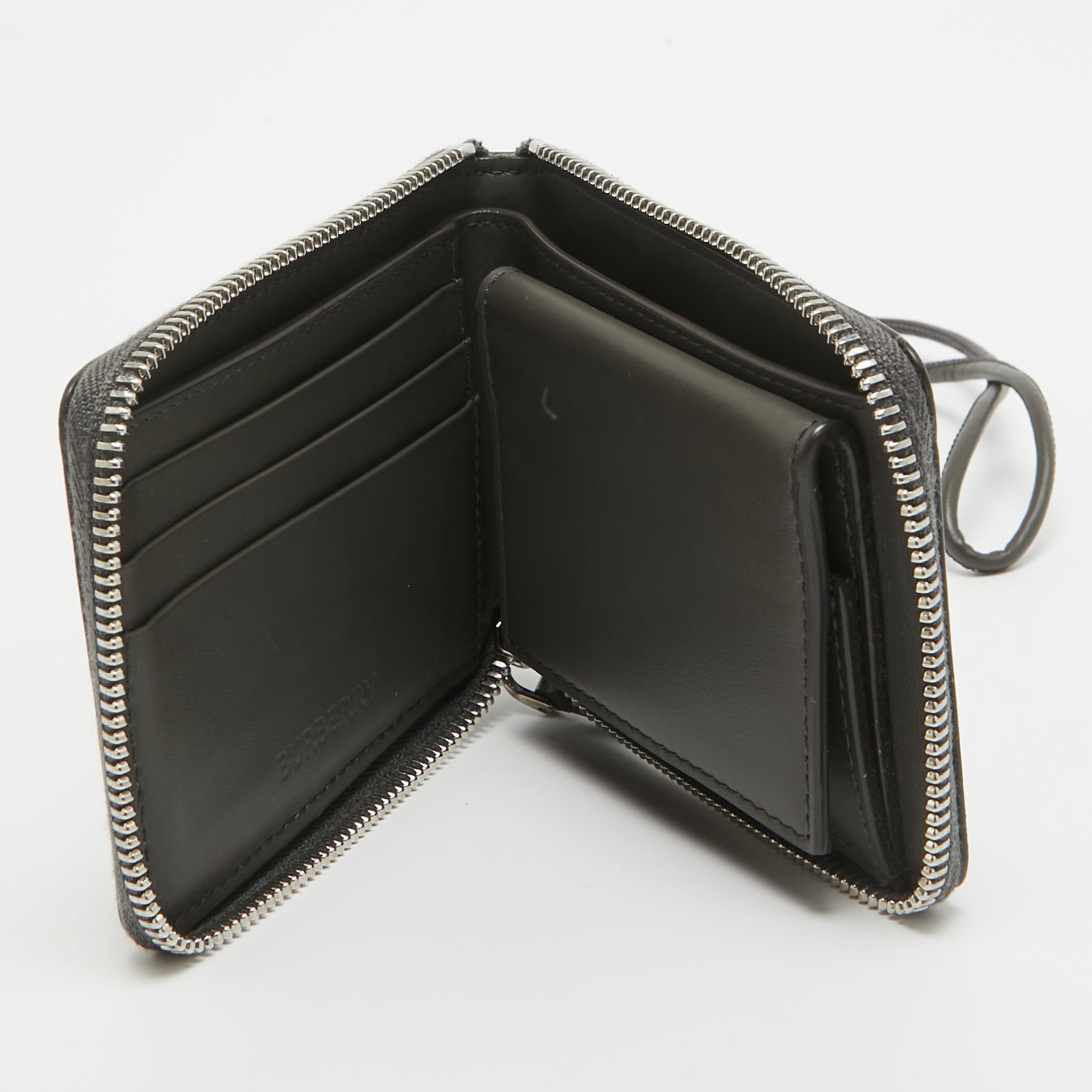 BURBERRY Grey/Black Horseferry Leather Daniel Lanyard Wallet