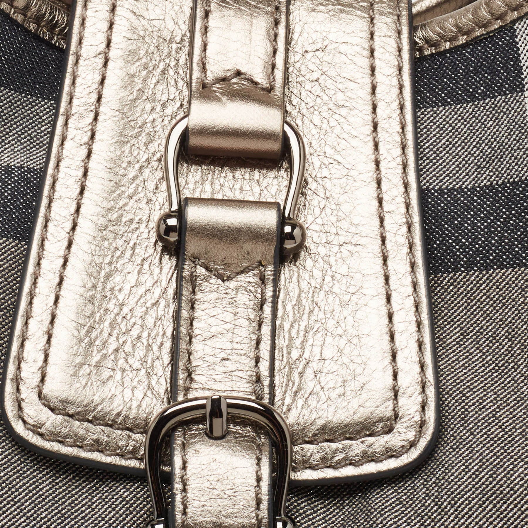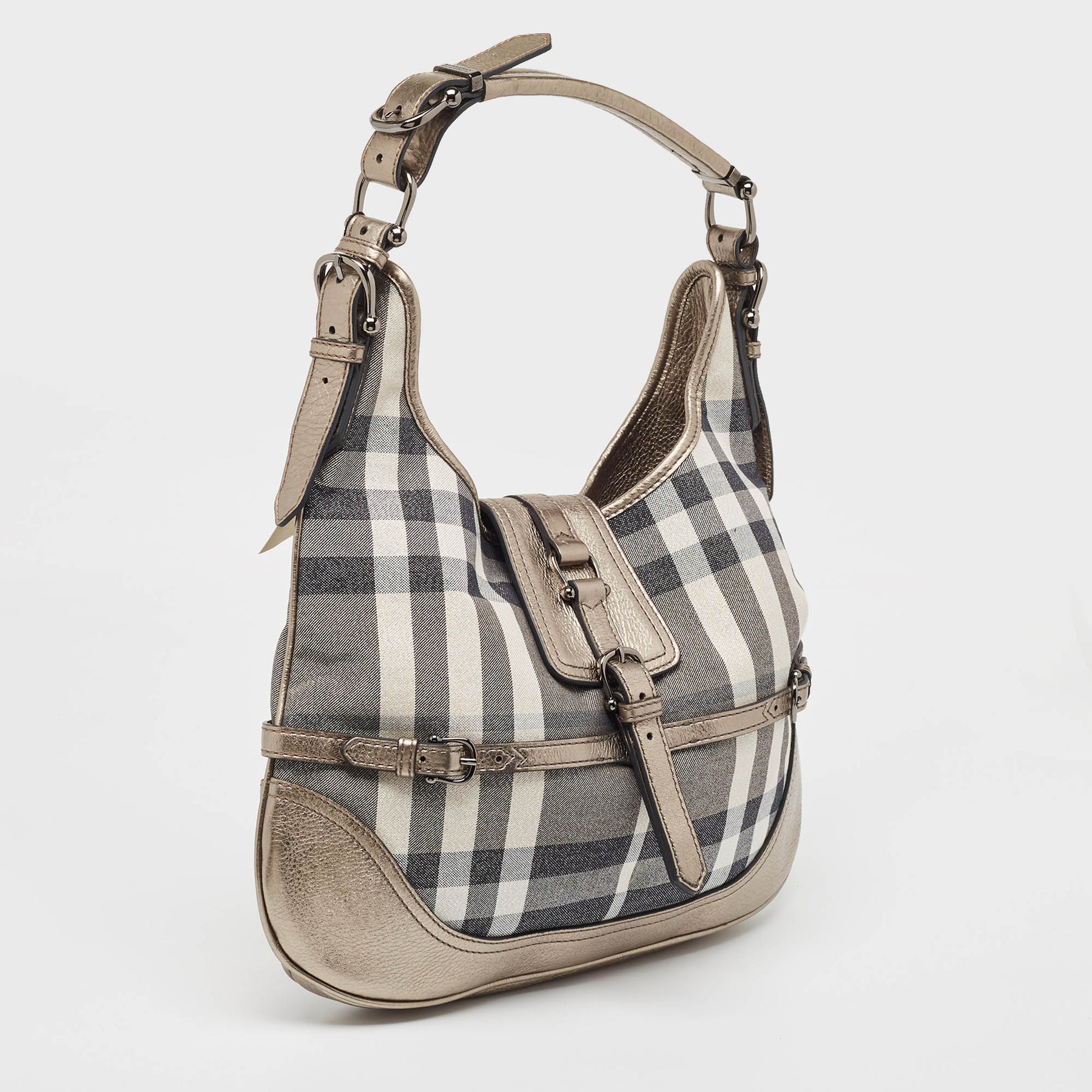 BURBERRY Grey Smoke Check Shimmer Fabric and Leather Brooke Hobo