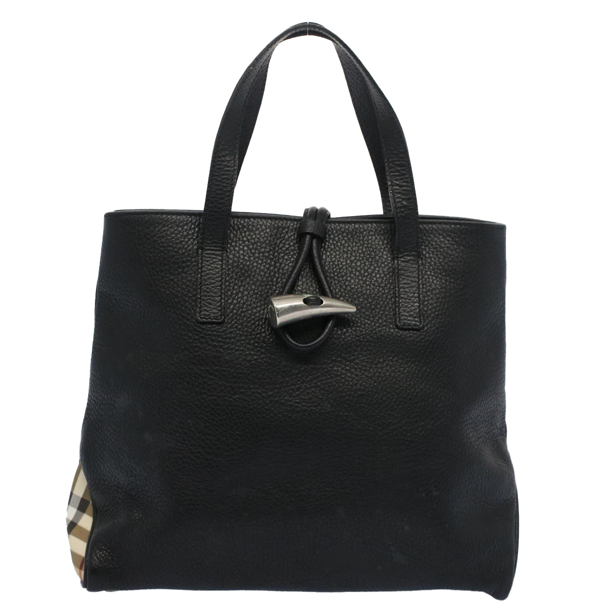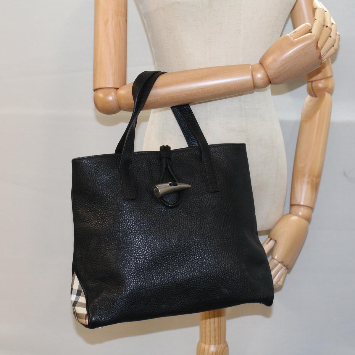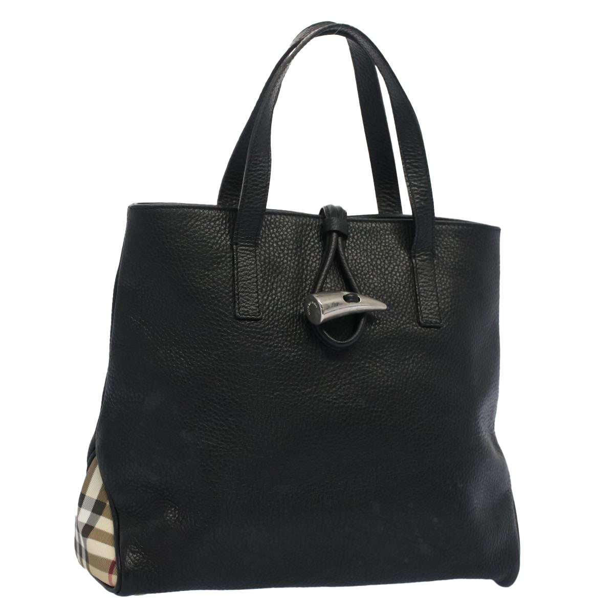 BURBERRY Hand Bag Leather Black Auth bs7987