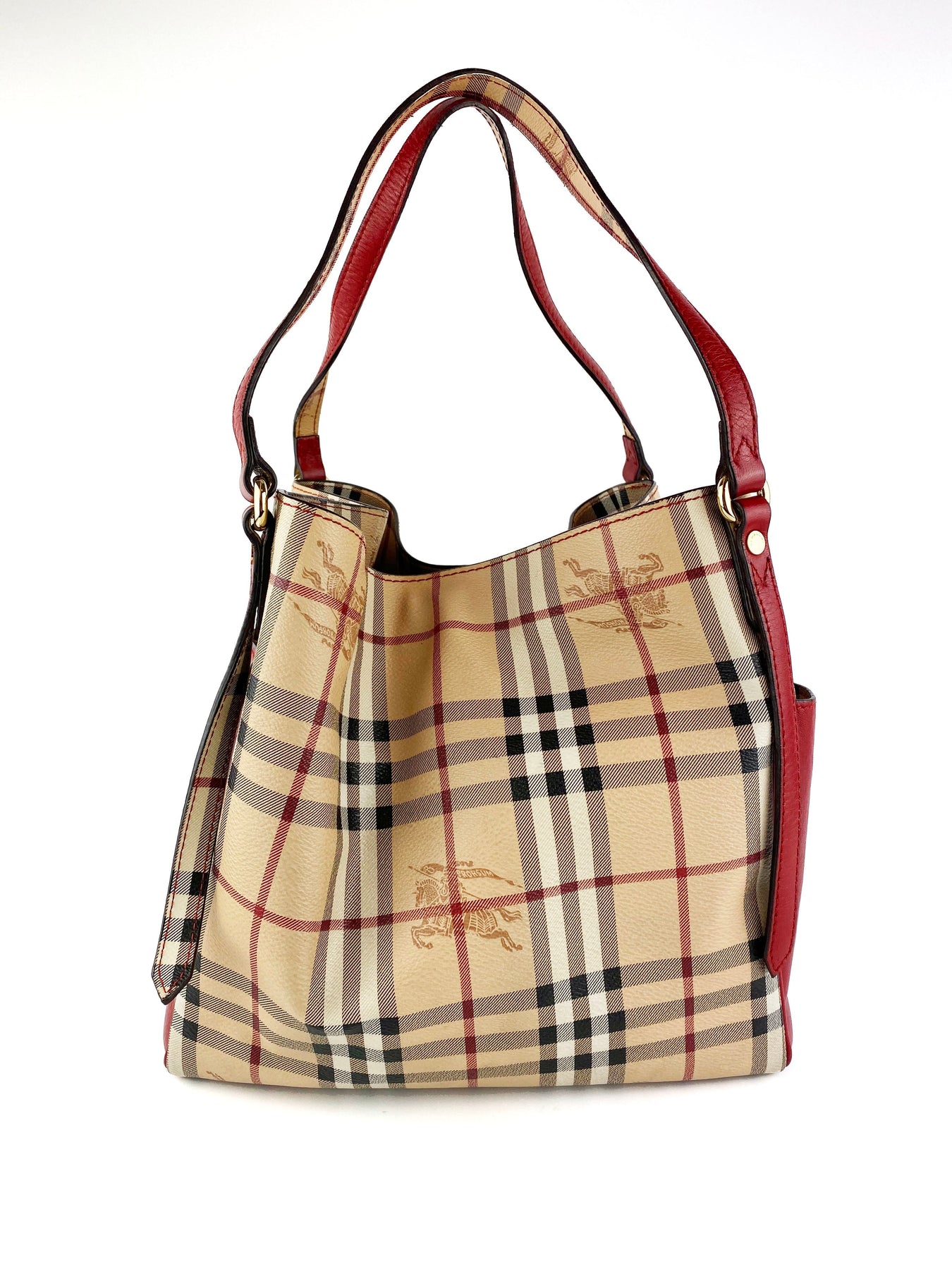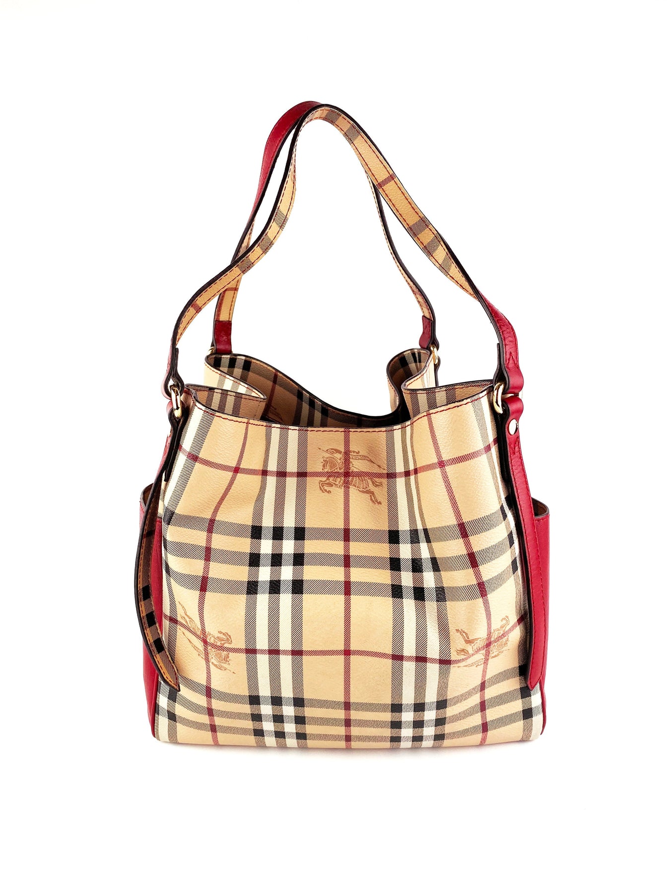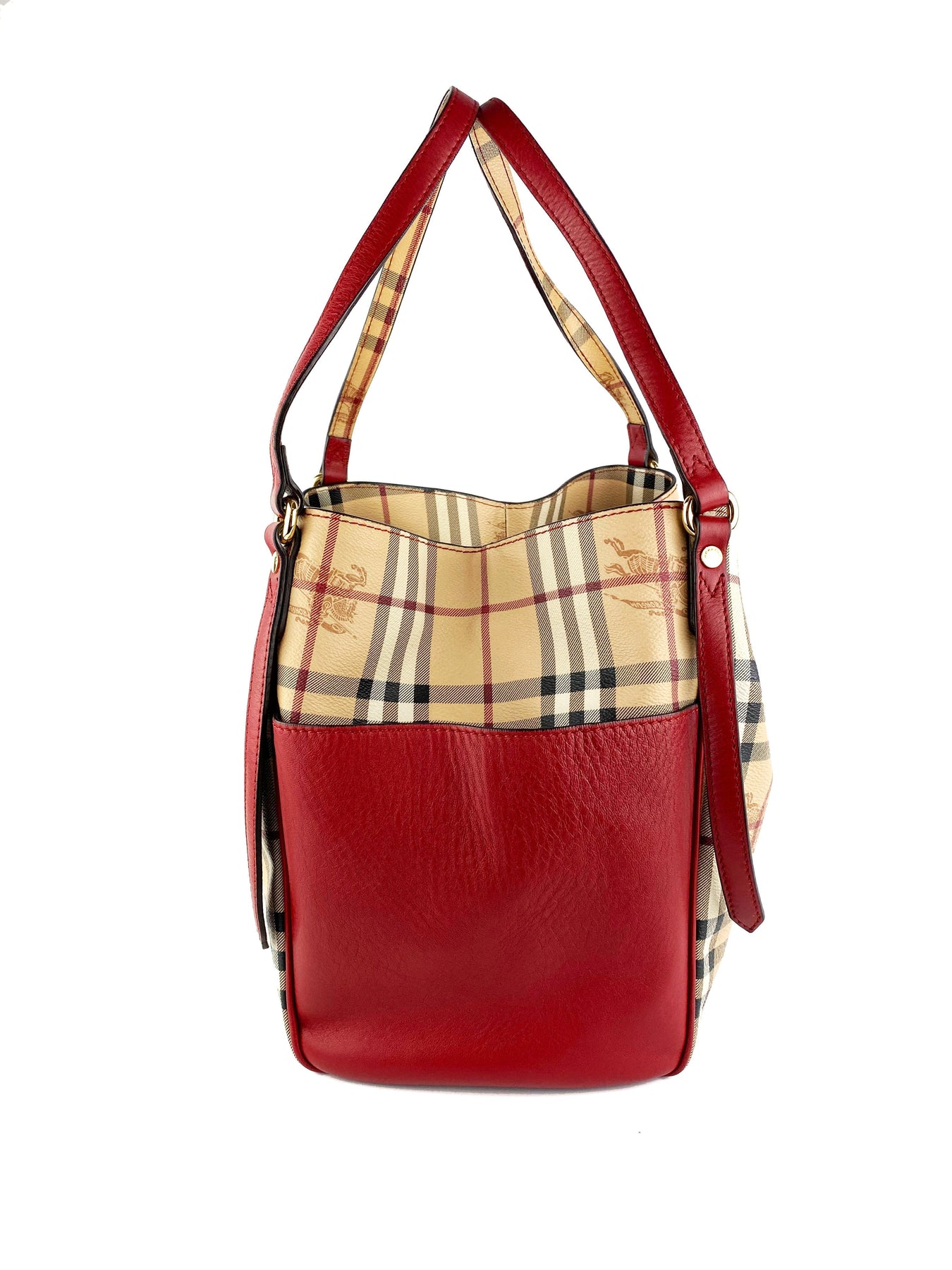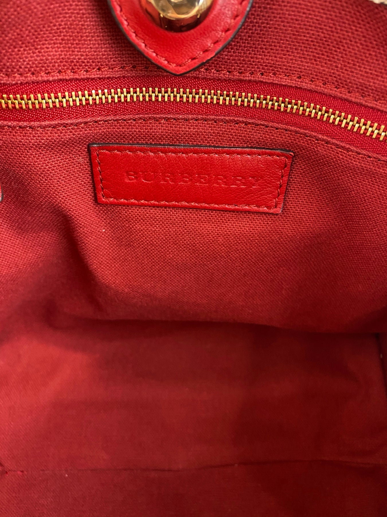 Description : Versatile bucket tote from Burberry in the house's signature check. Excellent condition; slight marks to canvas, some wear to handles