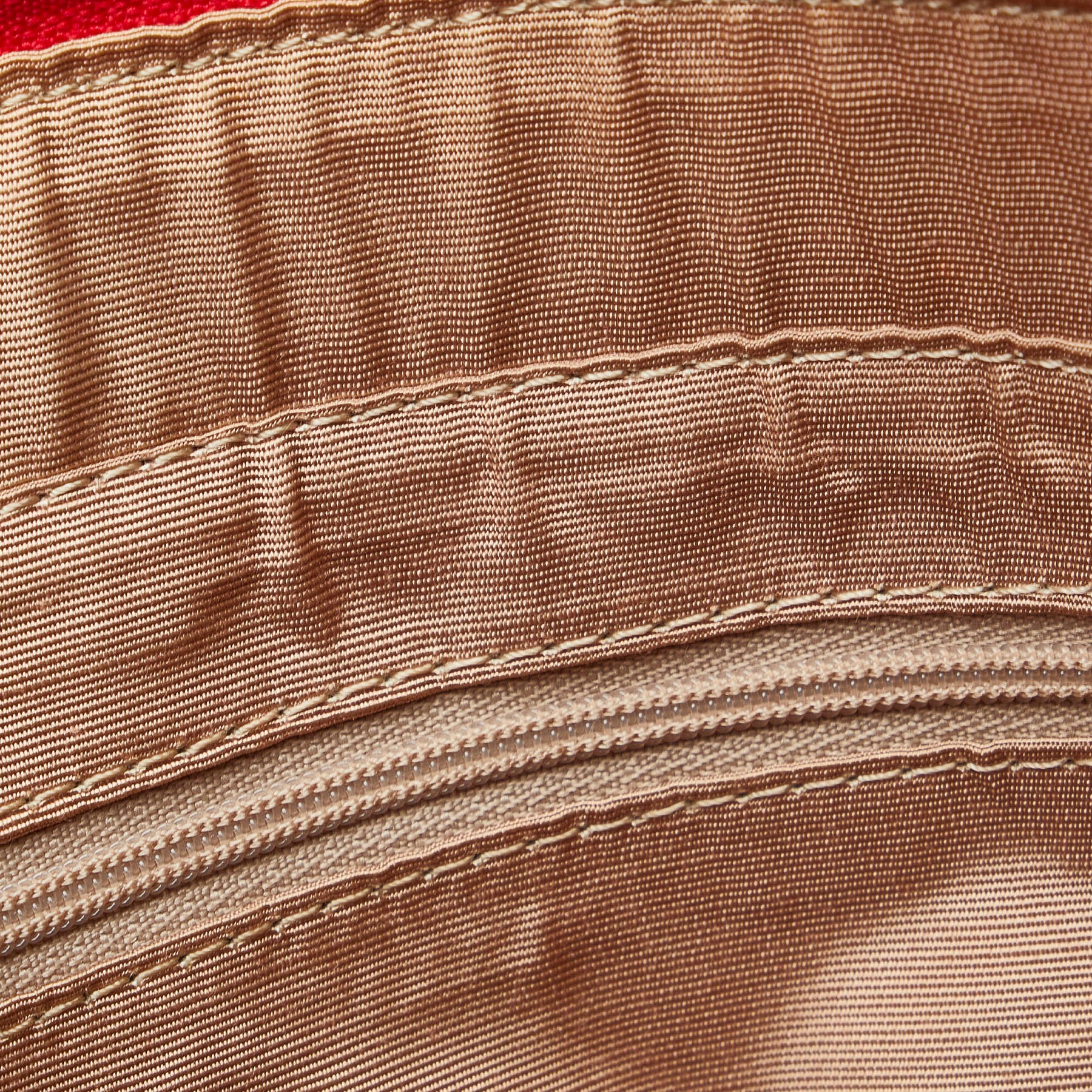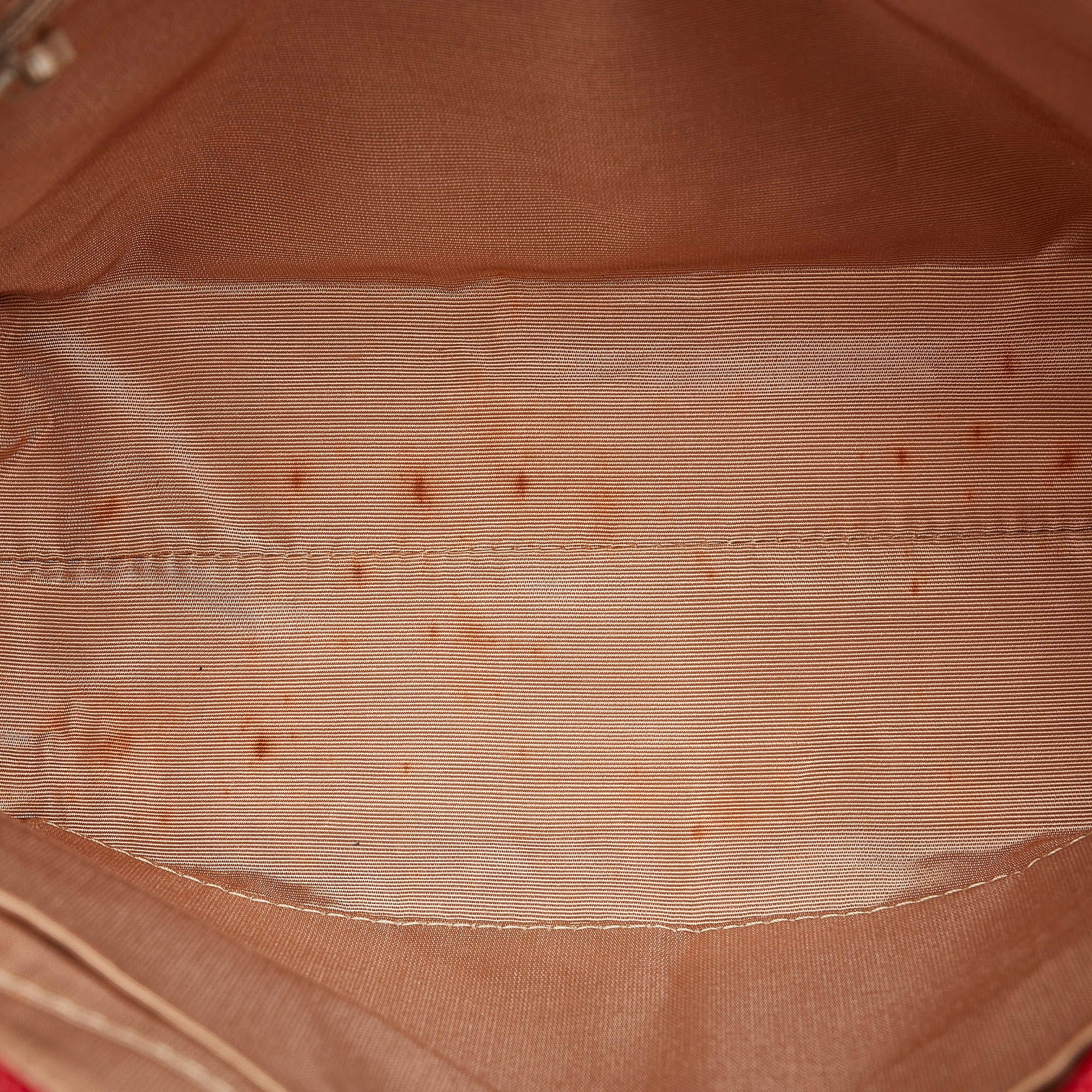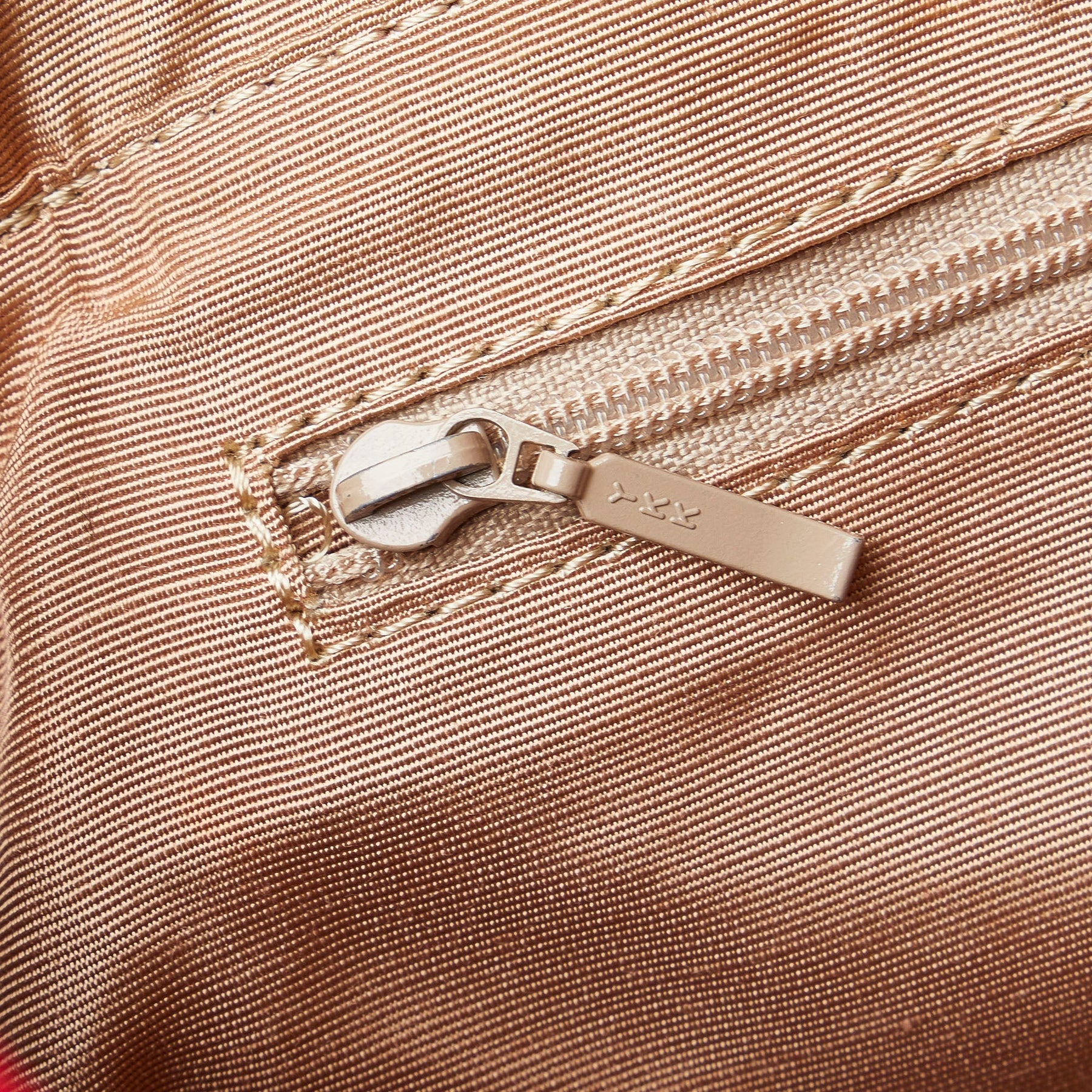 This handbag features a canvas body with leather trim, an exterior slip pocket, flat leather handles, a top zip closure, and interior zip and slip pockets.