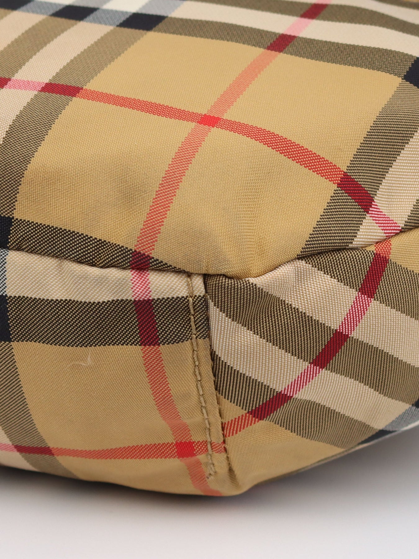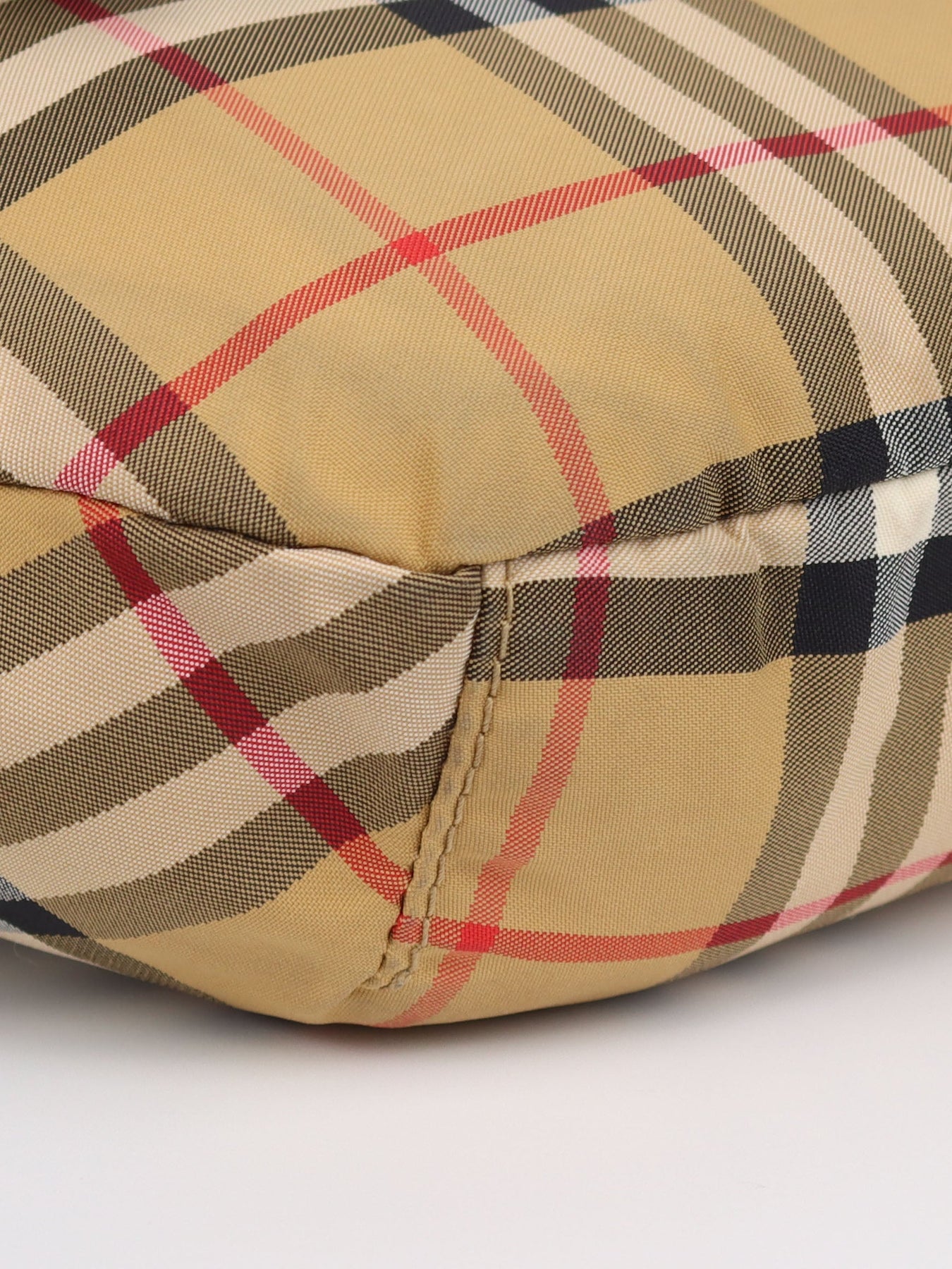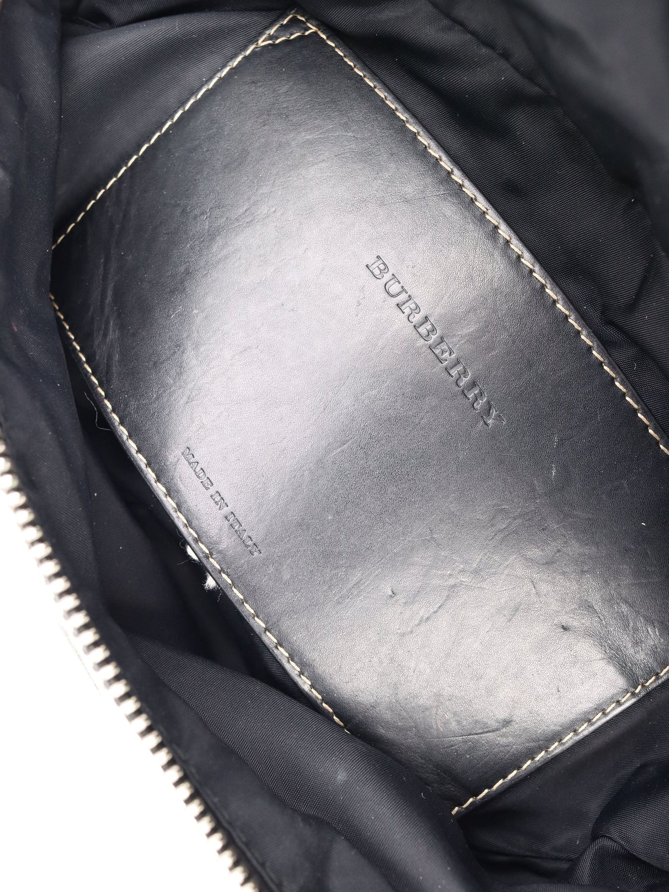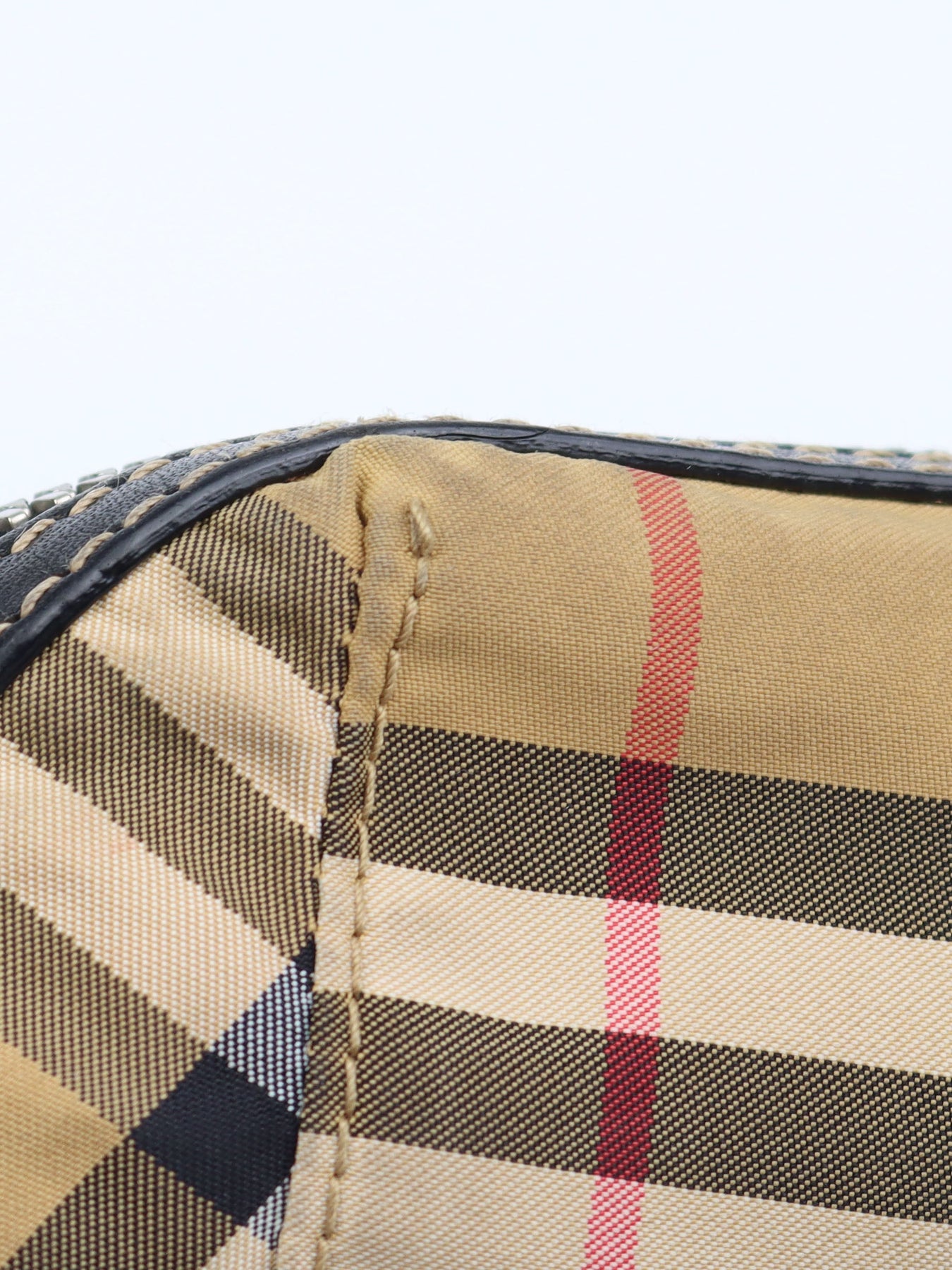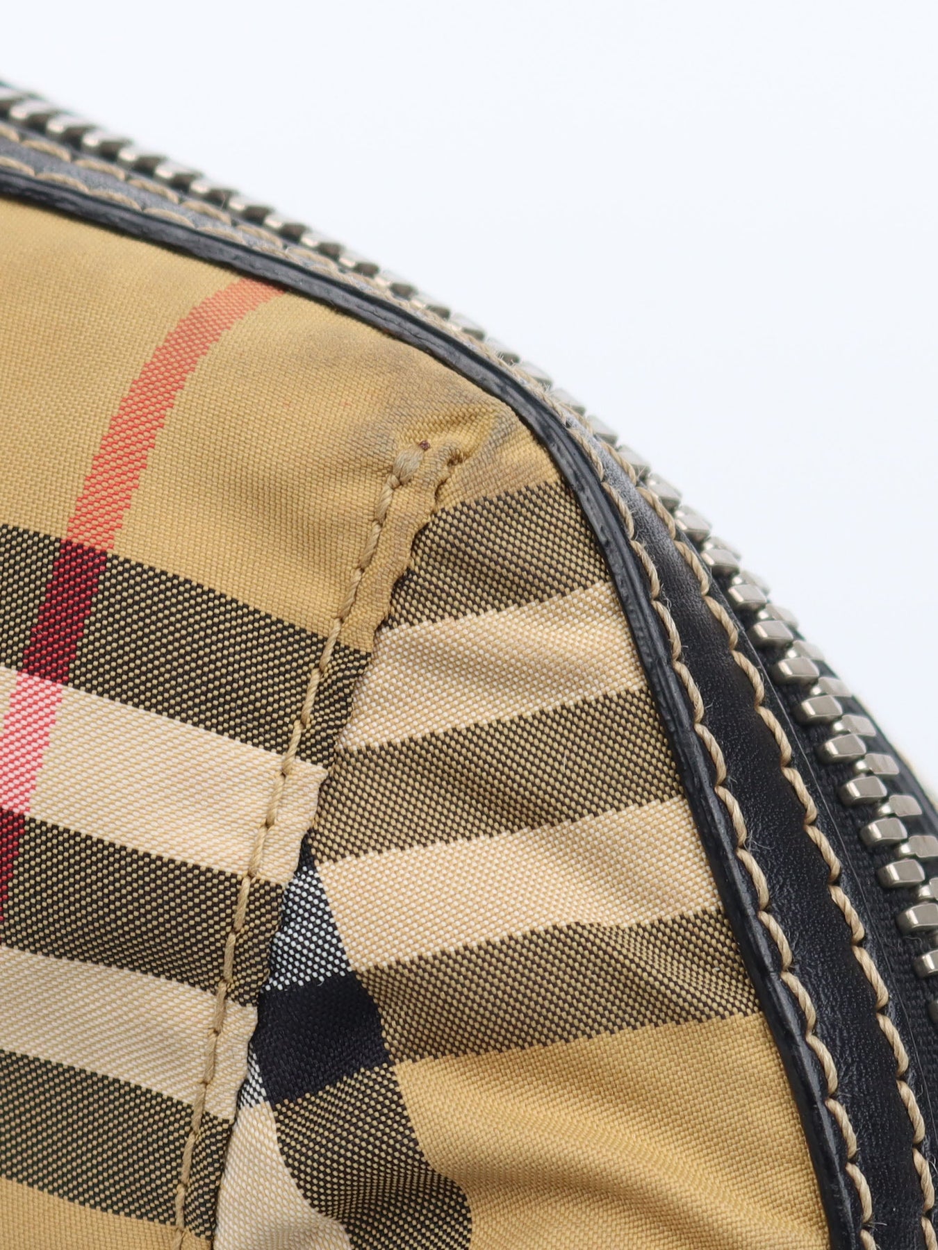 Description : Trendy and chic Burberry waist bag in haymarket check nylon with black leather trim and fabric waistband. In excellent condition; some colour transfer and marks on outer, gentle scratches on buckle, some signs of wear inner.