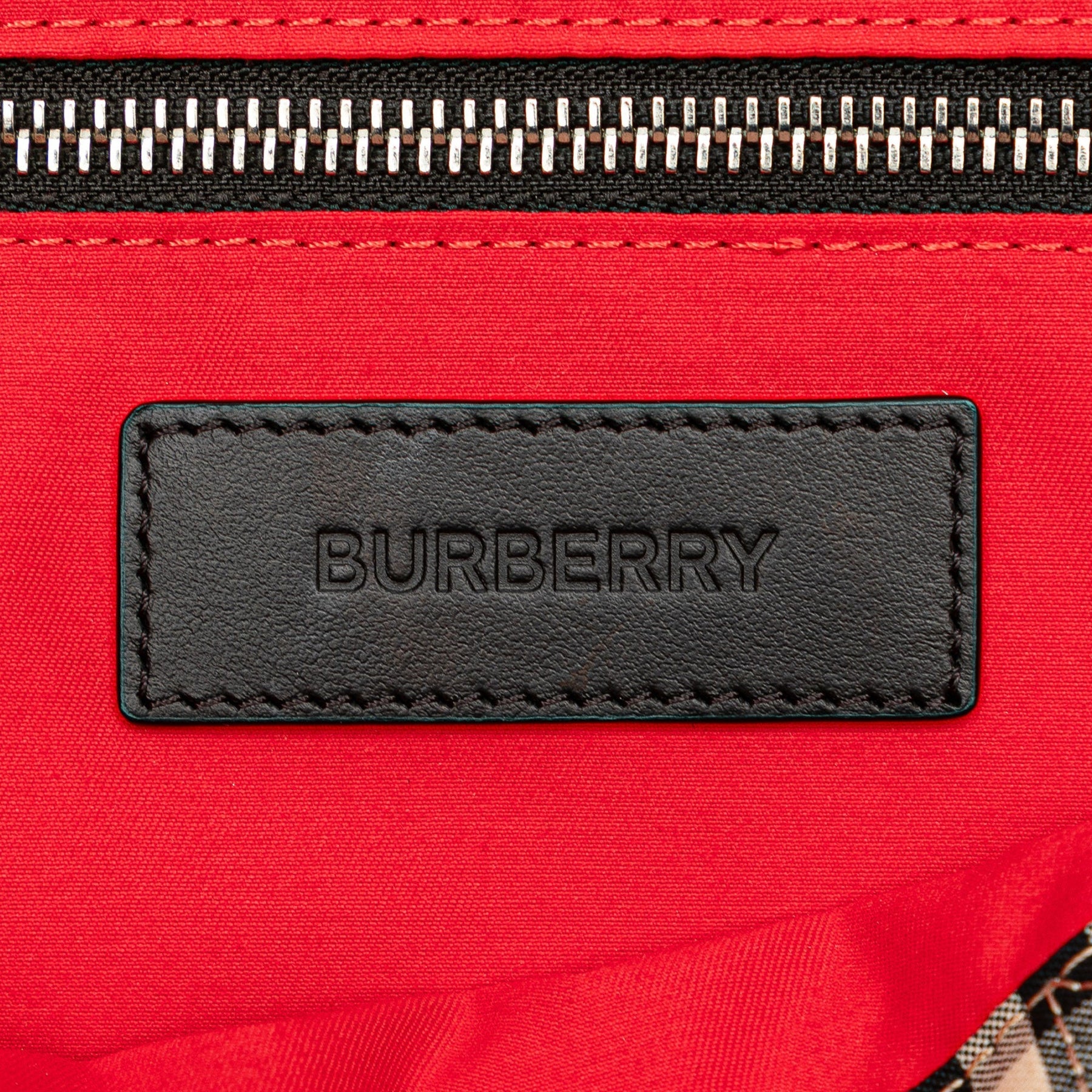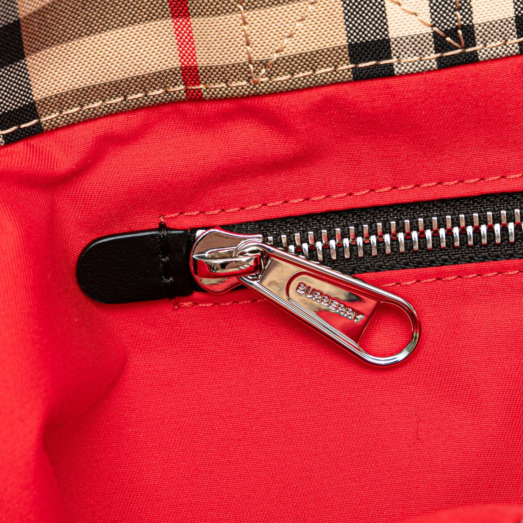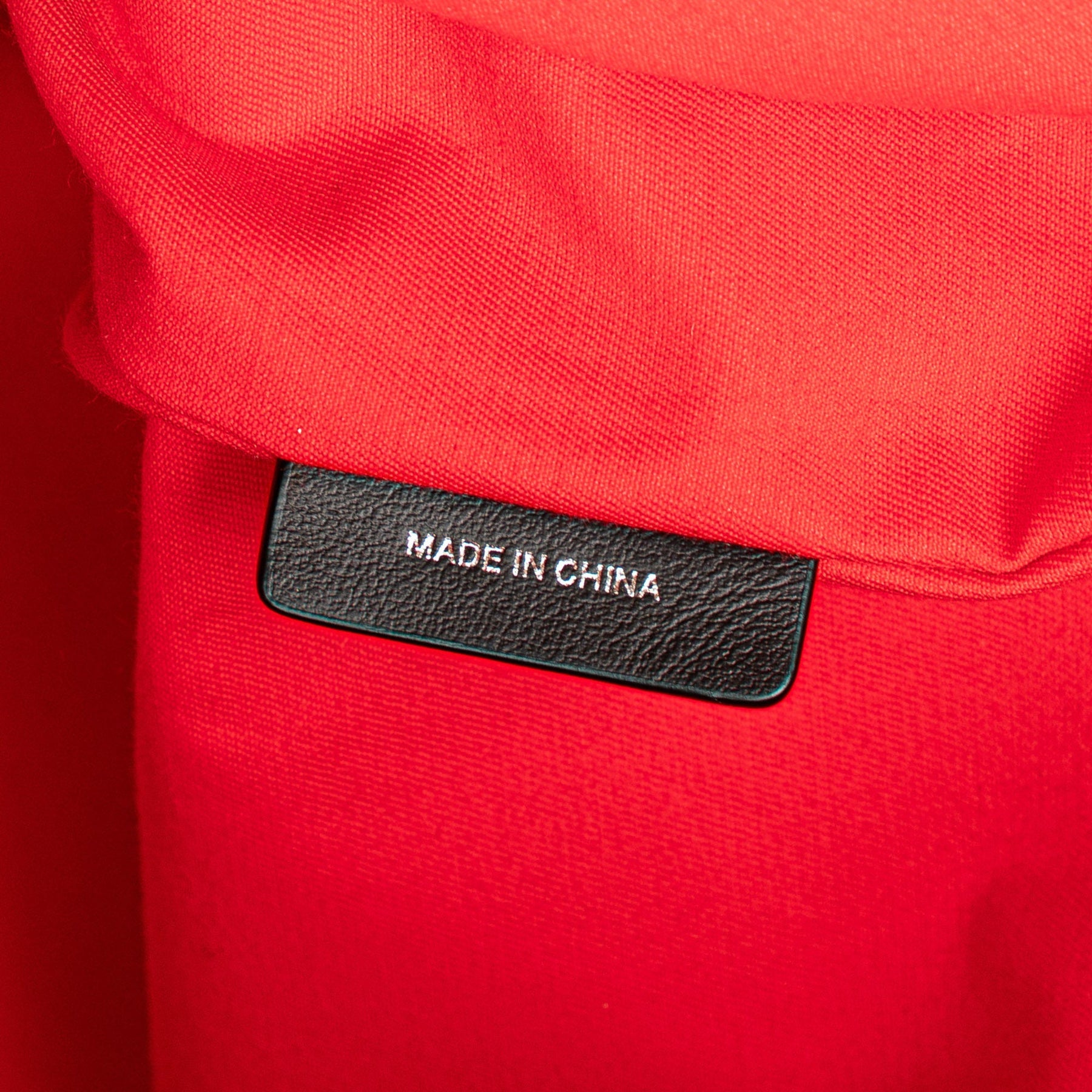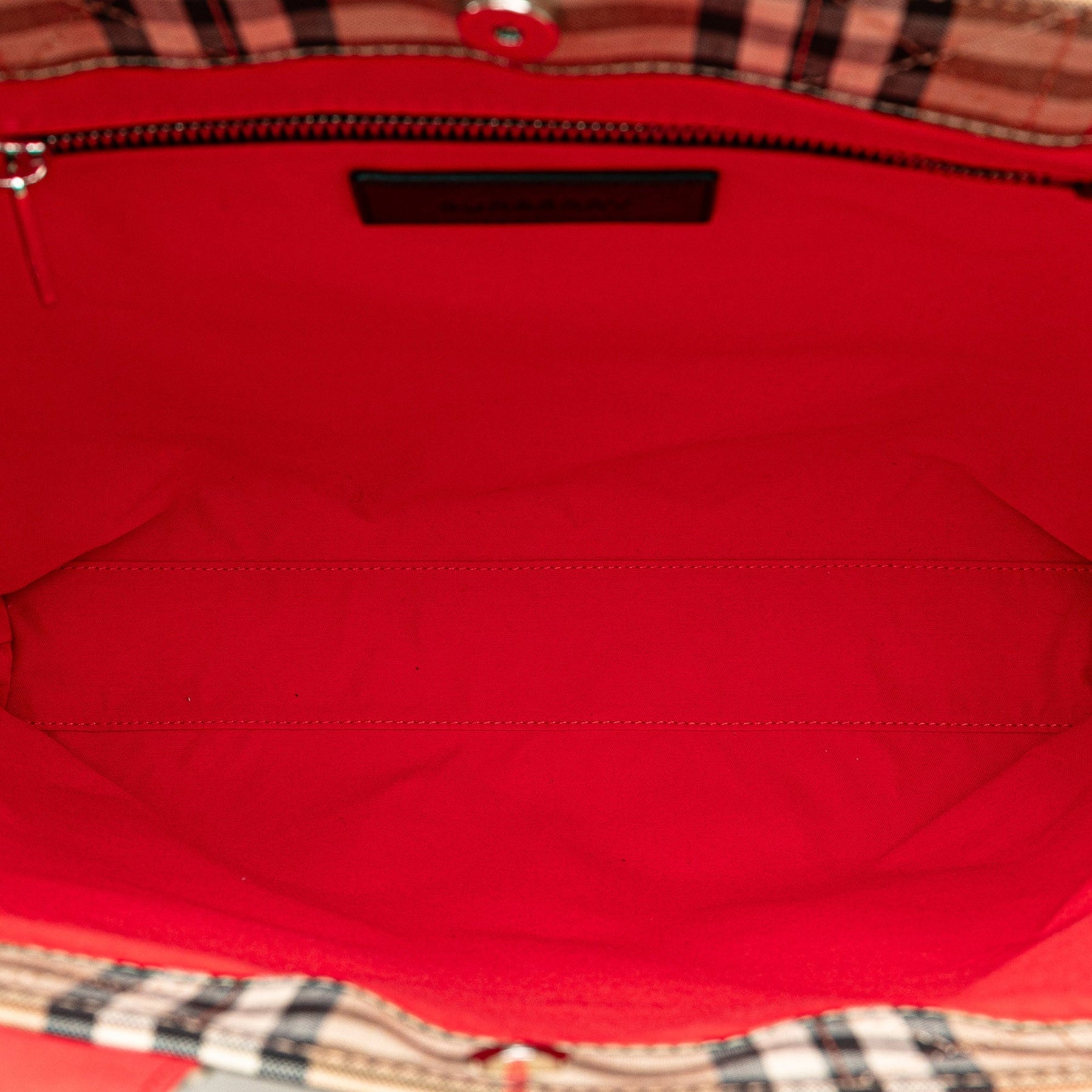 This satchel features a nylon body, flat handles, a detachable flat strap, an open top with magnetic snap closure, and an interior zip pocket.