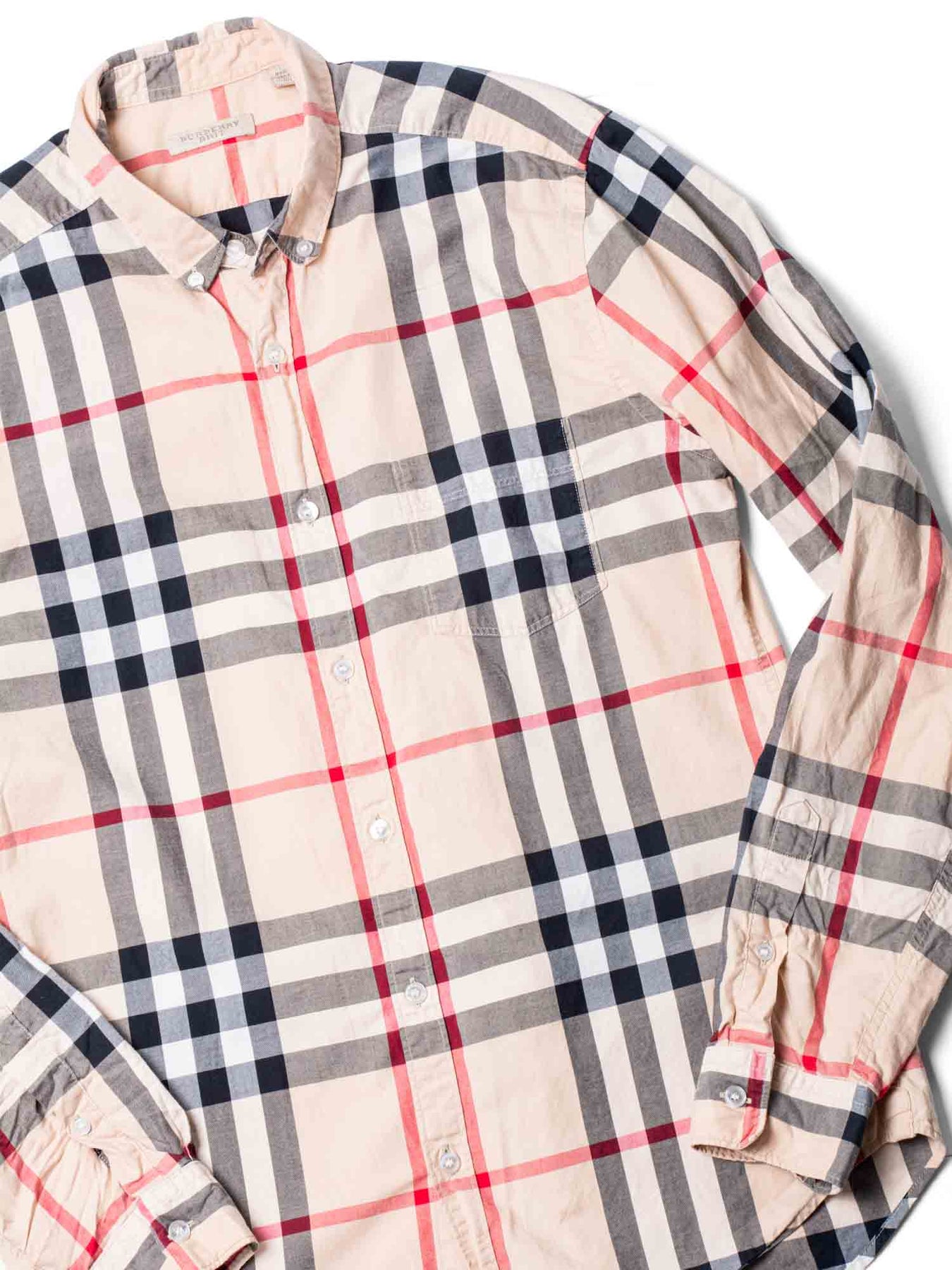 Burberry House Check Button Up Boyfriend Shirt or . This shirt is crafted in cotton featuring classic house check pattern, patch pocket on the left side and button down closure.