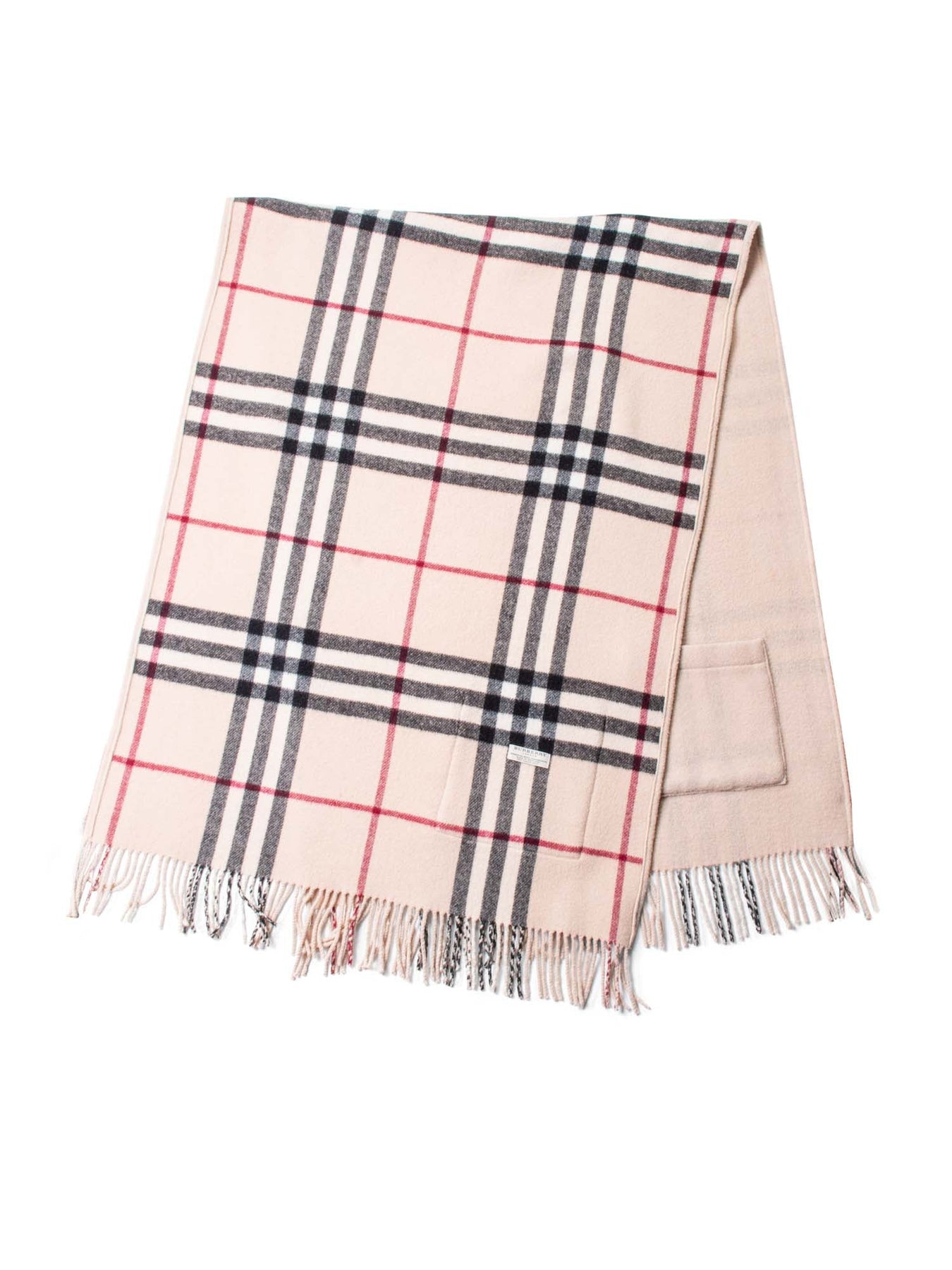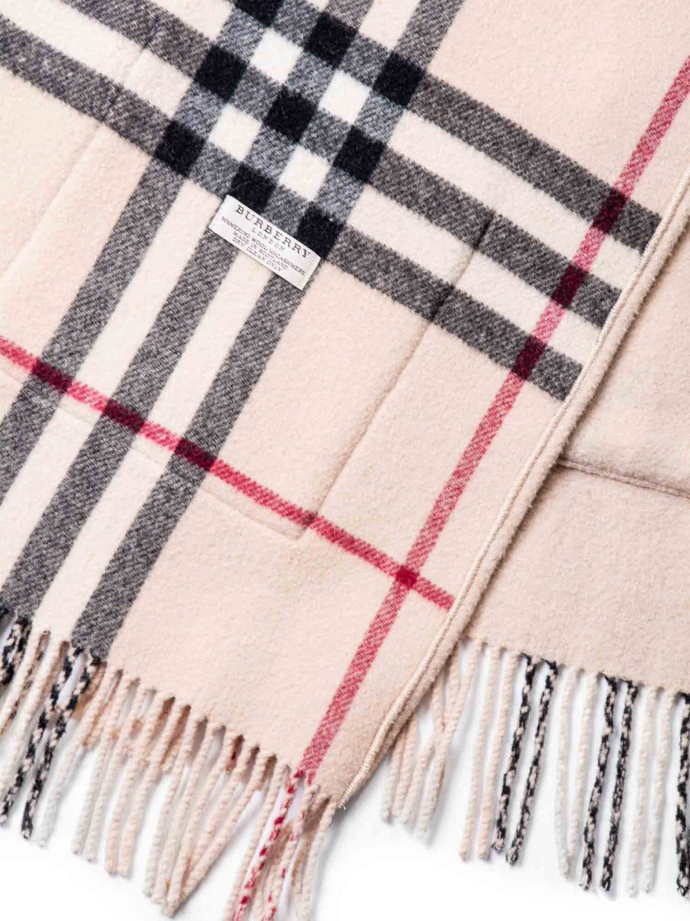 Burberry House Check Wool Poncho or . This Burberry poncho is crafted in double sided wool, on side featuring classic beige color and the other side featuring house check pattern by Burberry. The poncho has fringe detail on the trim and two patch pockets.