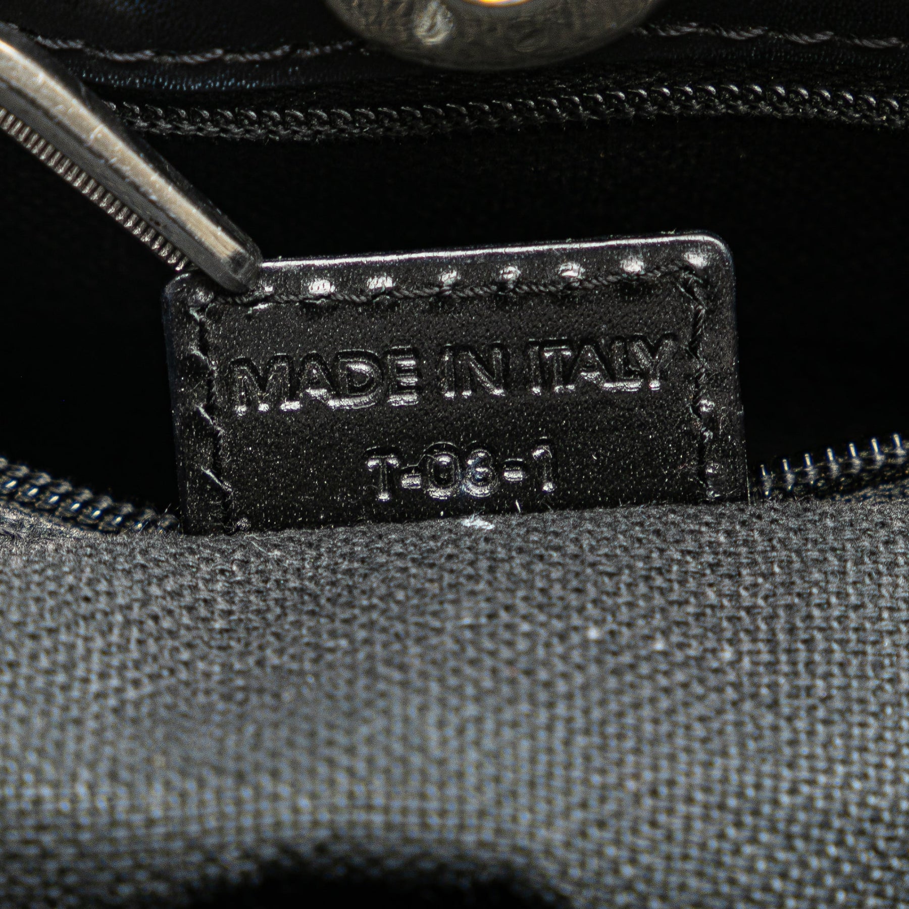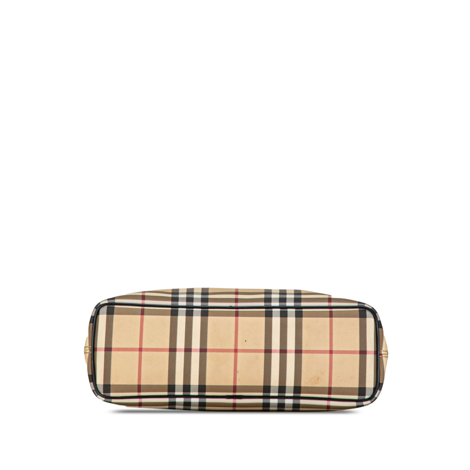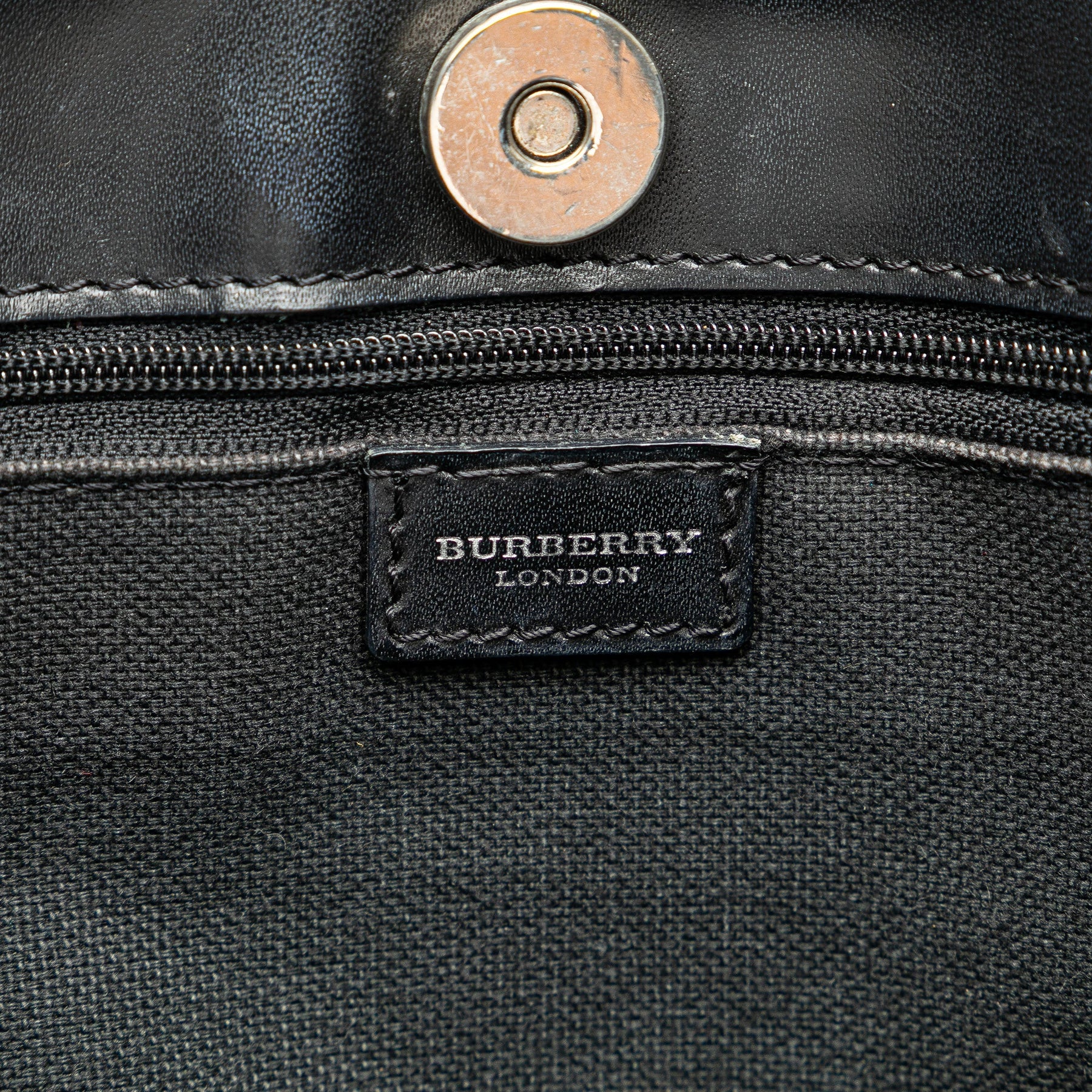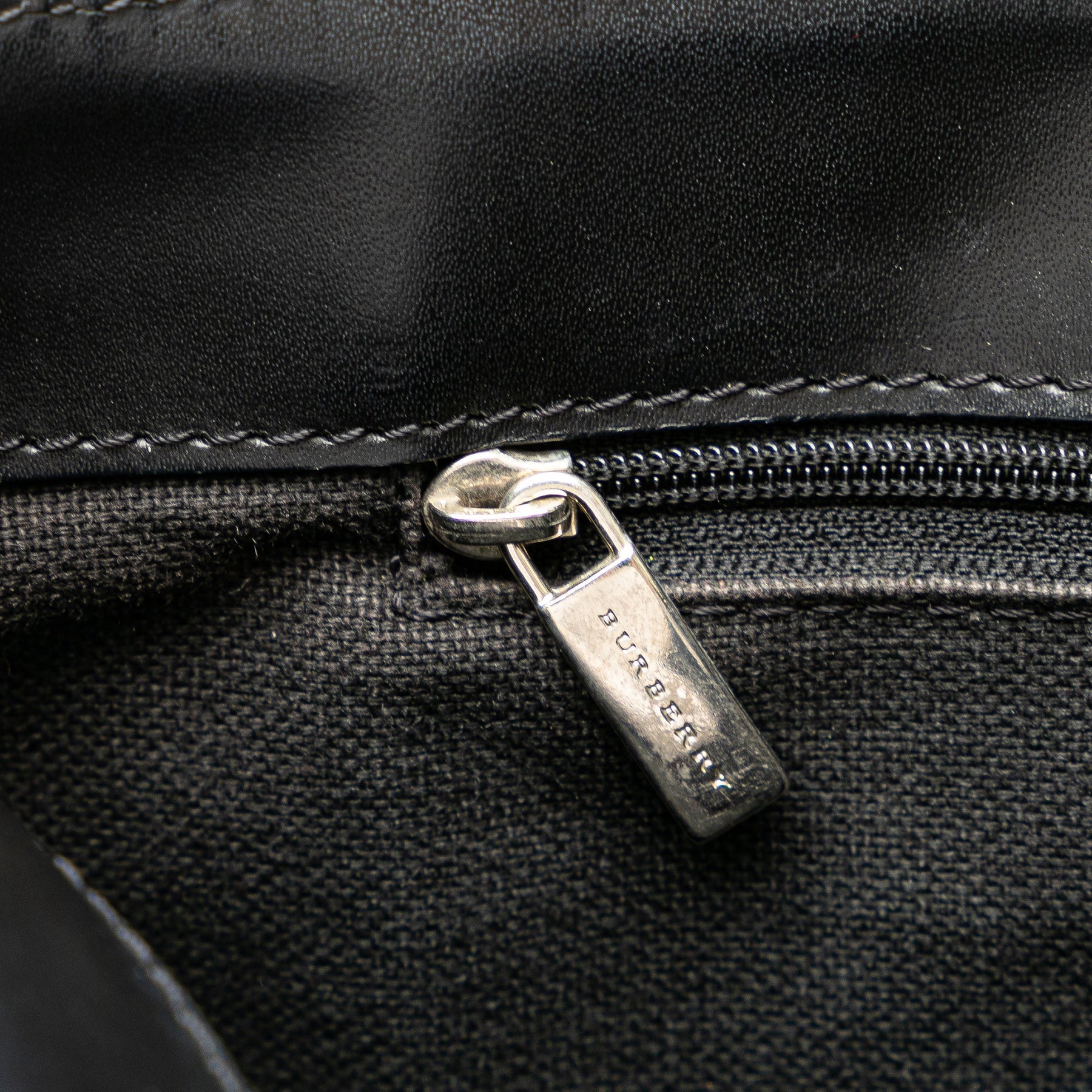 This tote bag features a canvas body with leather trim, flat leather handles, an open top with magnetic closure, and interior zip and slip pockets.