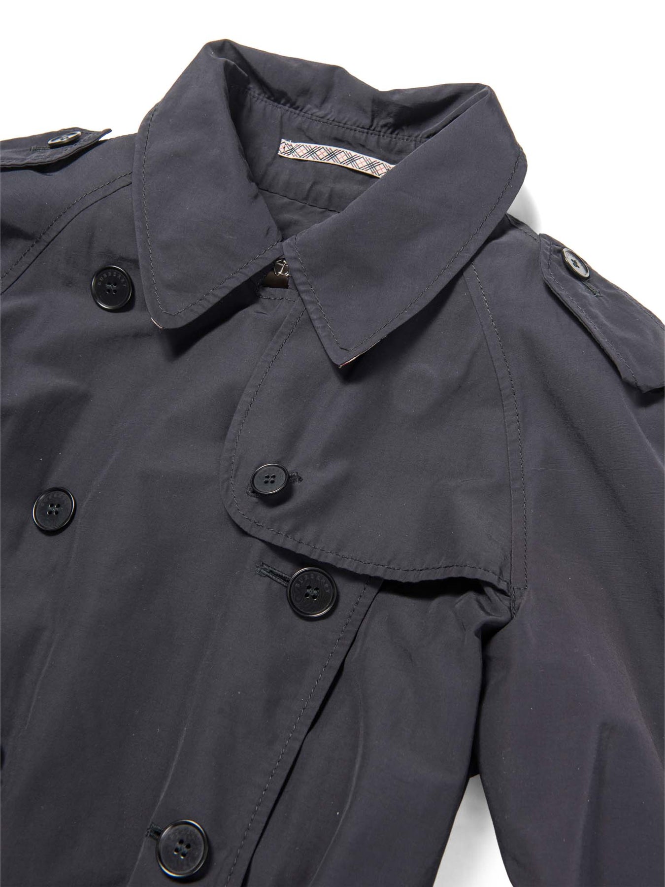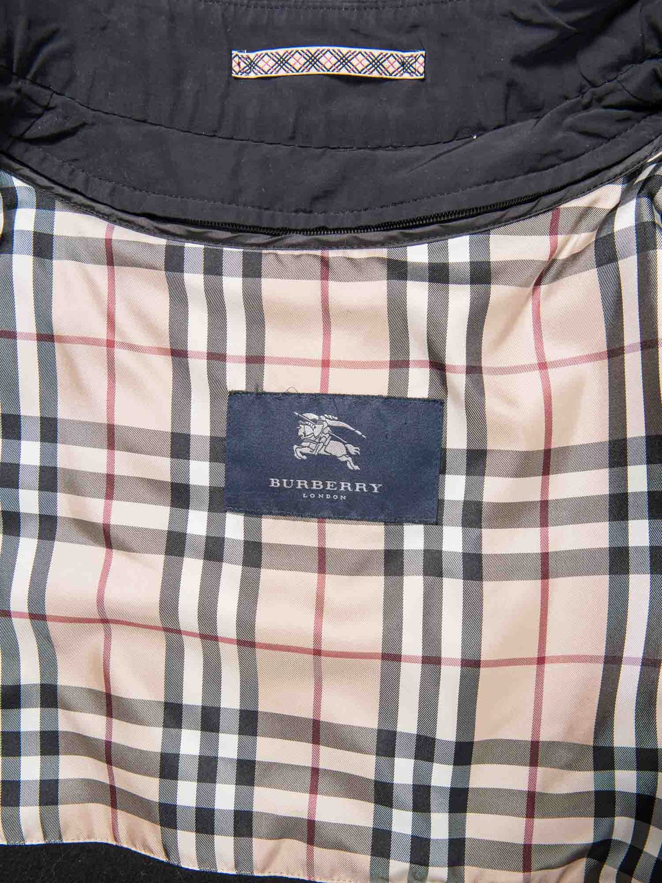 Burberry House Check Wool Lined Trench Coat or . This Burberry trench coat is in specially treated black canvas with belted waist and buttons along the front. It features a house check lining, two buttoned front pockets, adjustable buckle detail on the sleeves and a collar. The wool lining is in black wool and house check detail, it can be easily detached using the zipper.