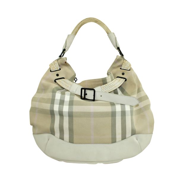 BURBERRY Large Checked Hobo Bag
