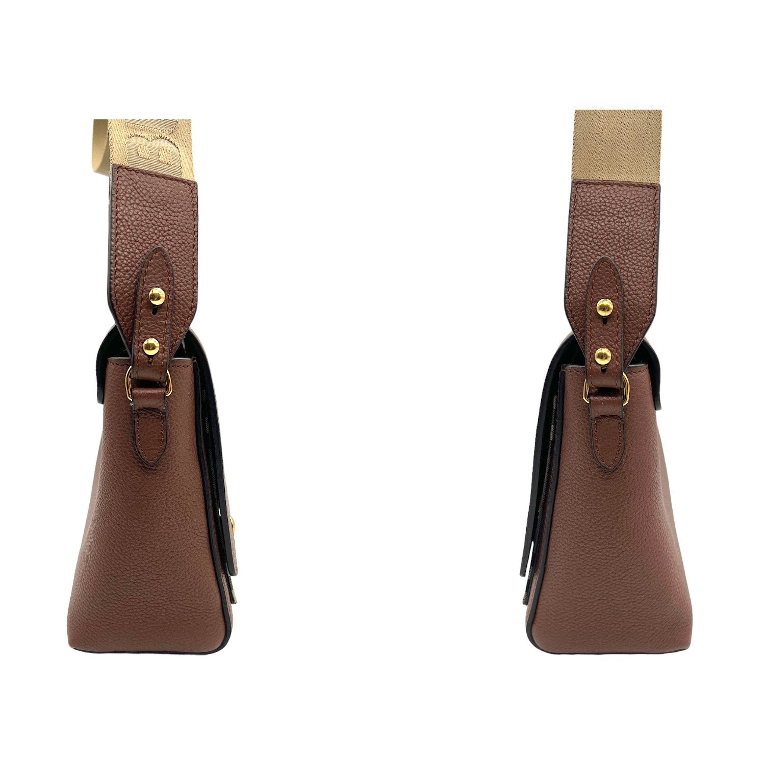 This Burberry Leather Note Crossbody Bag was made in Italy and it is finely crafted of a leather exterior with gold-tone hardware features. It has a removeable and adjustable Burberry shoulder strap. It features a fold over magnetic closure that opens up to a frontal slip pocket and a spacious main interior with Burberry jacquard lining with a slip pocket. It is also by !