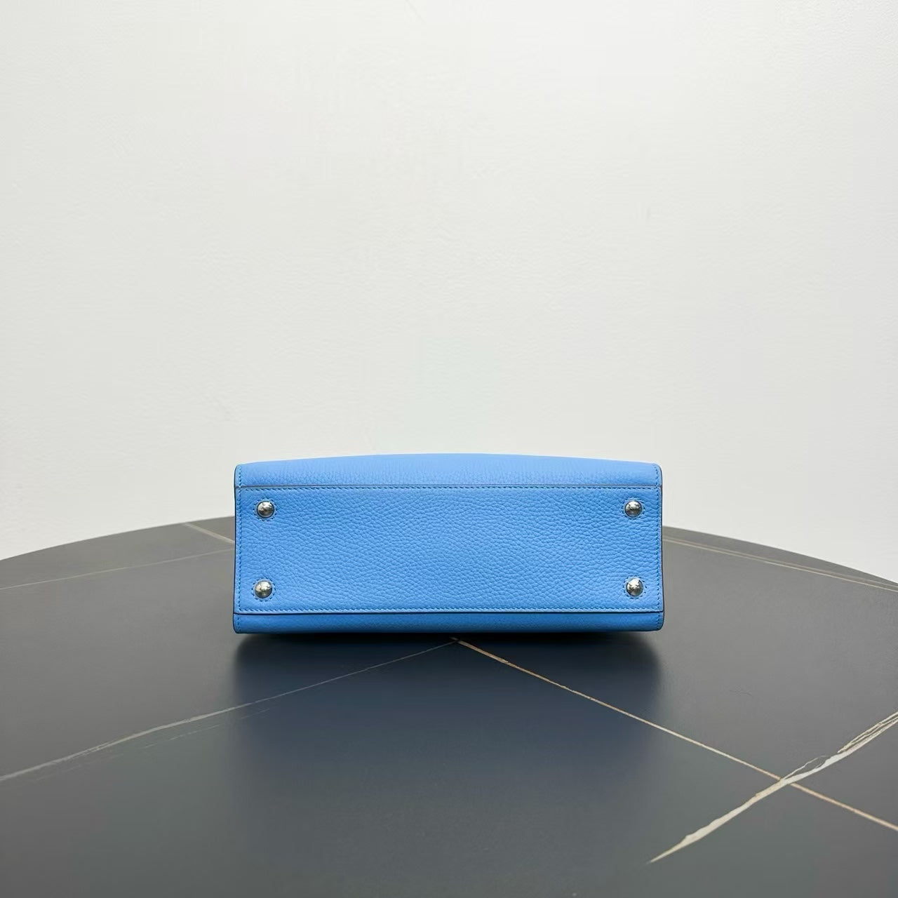 This Burberry leather two-way bag offers classic elegance and versatility for fashion-savvy women. Crafted from high-quality leather in a striking blue hue, it features a detachable strap for convenient style switching. The interior is spacious with a rich brown fabric lining, making it functional and chic. With minimal signs of wear, it's a perfect addition to any collection of vintage Burberry bags, making a statement among used designer handbags.