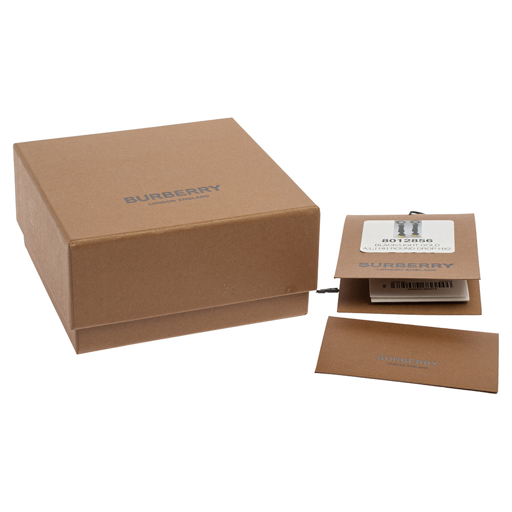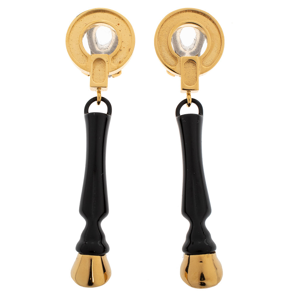 Burberry Light Gold Plated Black Hoof Drop Clip On Earrings