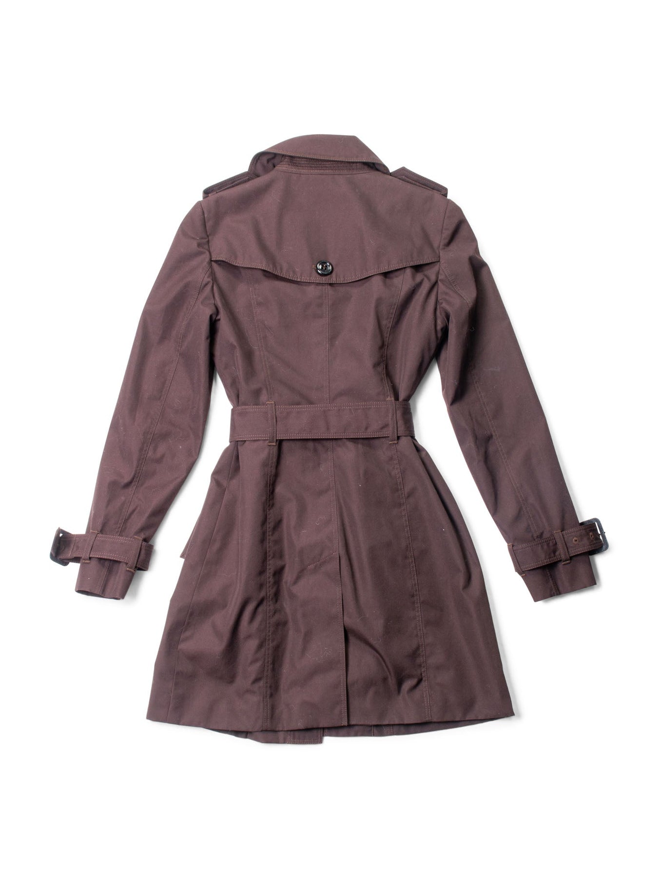 Burberry Belted Rain Coat or . This Burberry rain coat is in brown waterproof fabric with signature Burberry house check lining. This jacket has two front pockets, large Burberry buttons, and adjustable belts around the waist and cuffs.