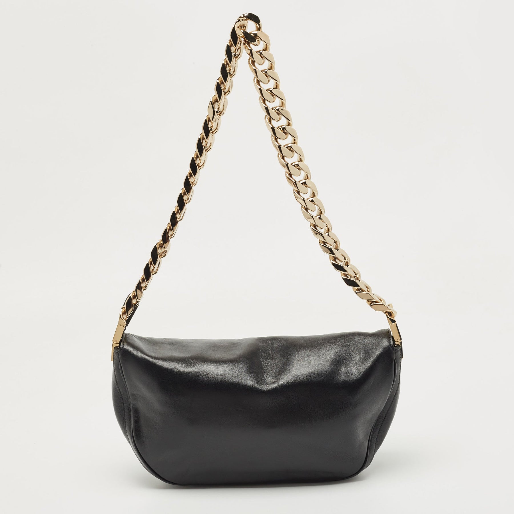 With an architectural shape, this Burberry Olympia bag resembles the crescent moon. The brand signature on the front lends to its instant identification, and it can be carried conveniently with a shoulder strap. Capturing the essence of feminity, it celebrates beauty through its creative design. The top zipper closure of the bag secures its lined interior.
