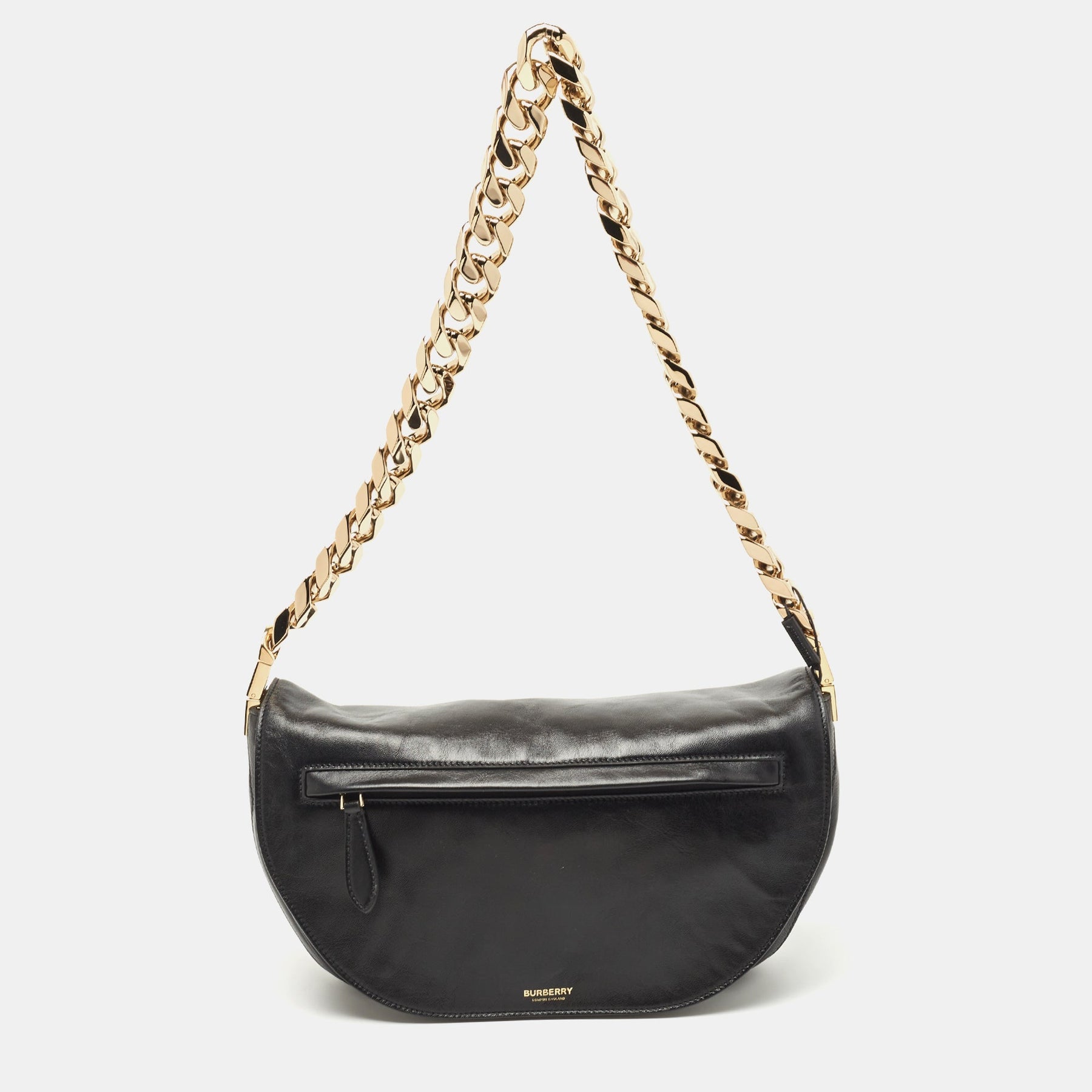 BURBERRY LONDON Black Leather Medium Soft Olympia Shoulder Bag
