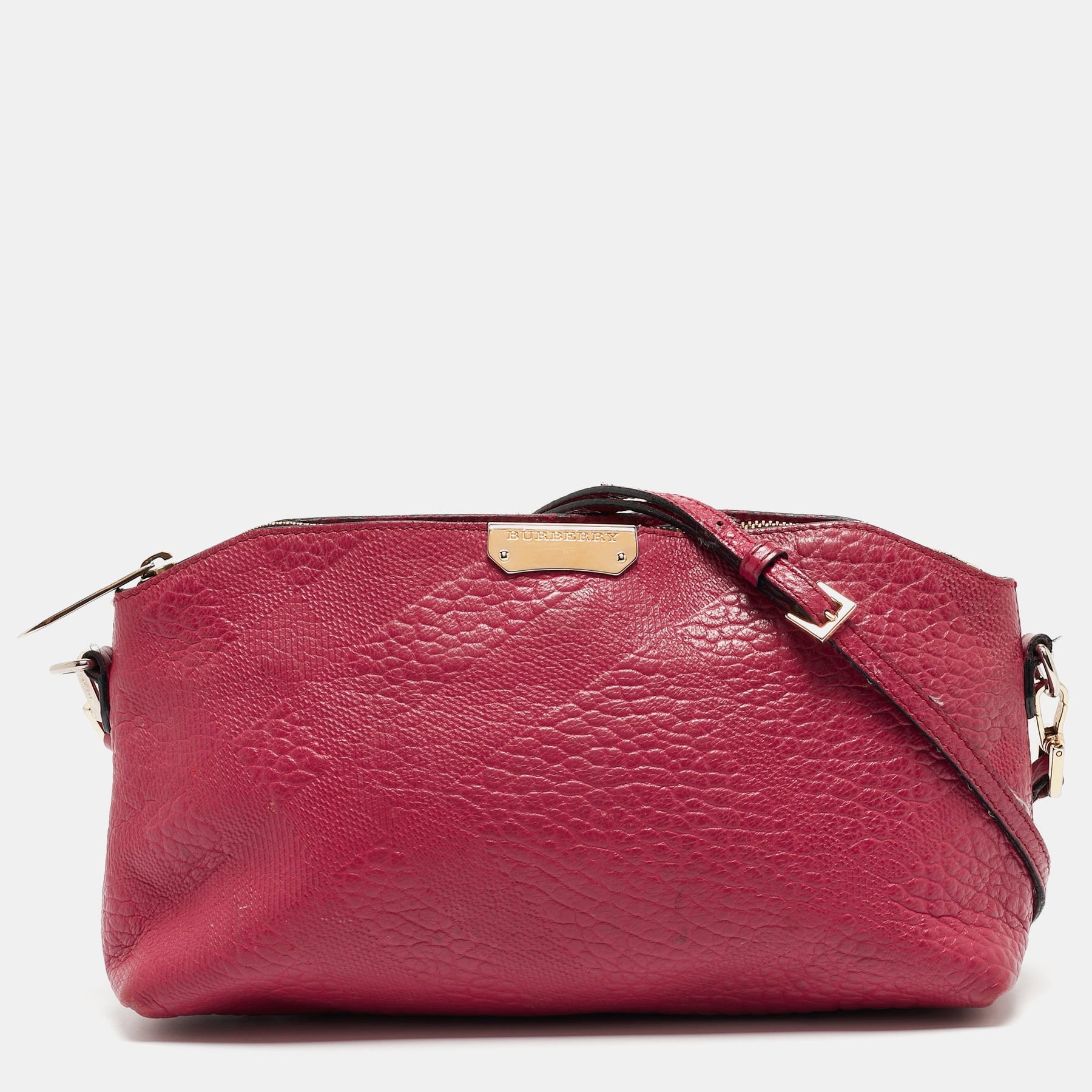 BURBERRY Magenta Embossed Check Leather Chichester Crossbody Bag