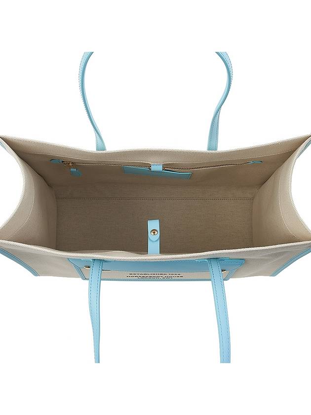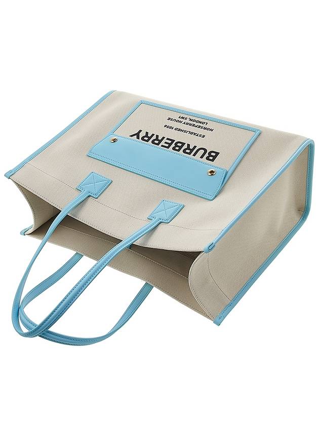 Burberry Freya Logo Print Medium Canvas Tote Bag Natural Blue