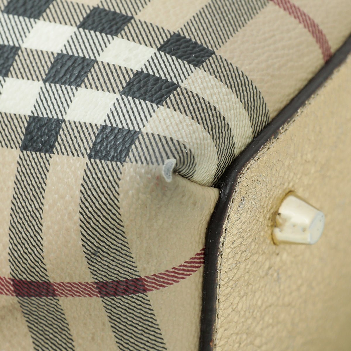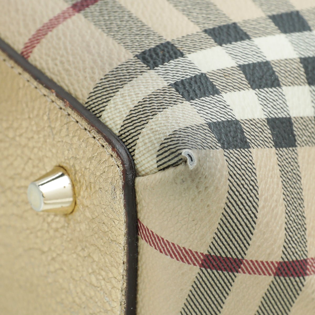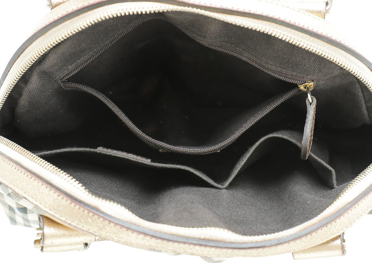 - Material: Haymarket Check Canvas with Metallic Gold Leather Trim