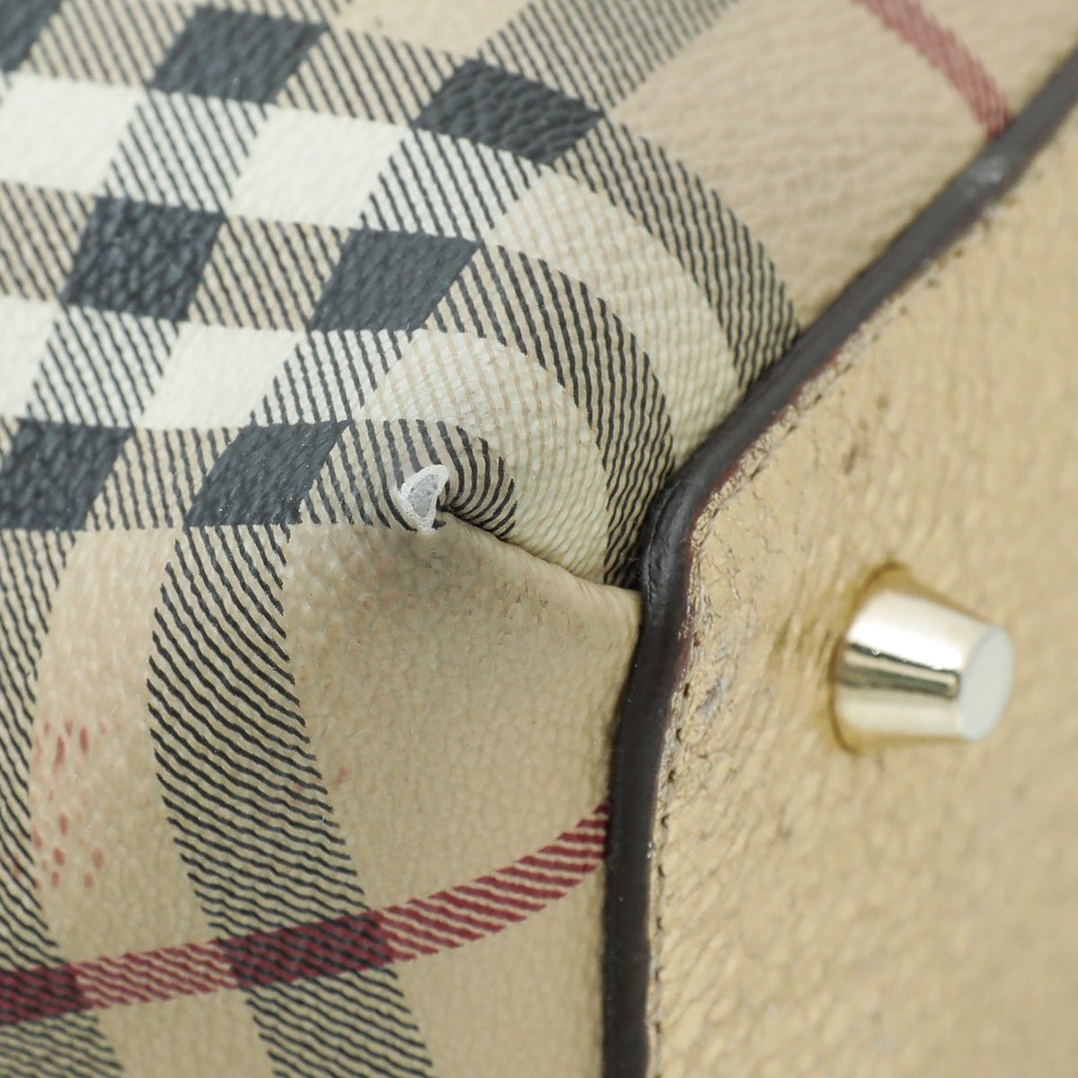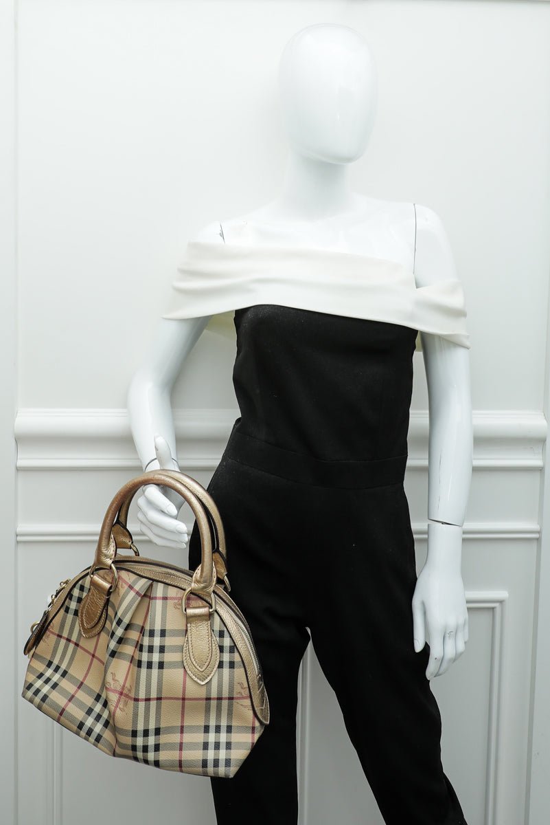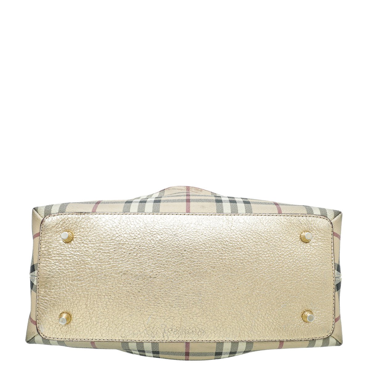 - Material: Haymarket Check Canvas with Metallic Gold Leather Trim