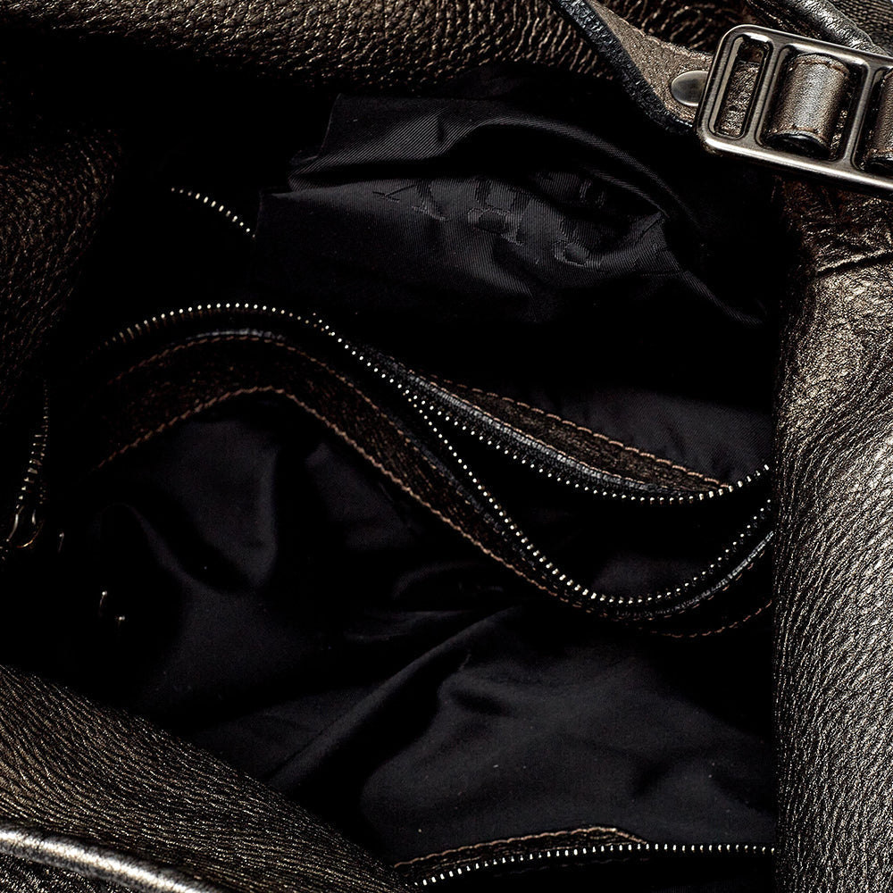 This hobo by Burberry combines function and fashion. Crafted from leather the bag features a spacious fabric interior to house your everyday essentials. The hobo flaunts a metallic silver hue and it is held by a single handle.
