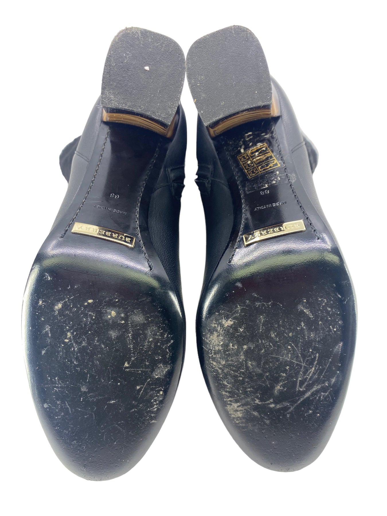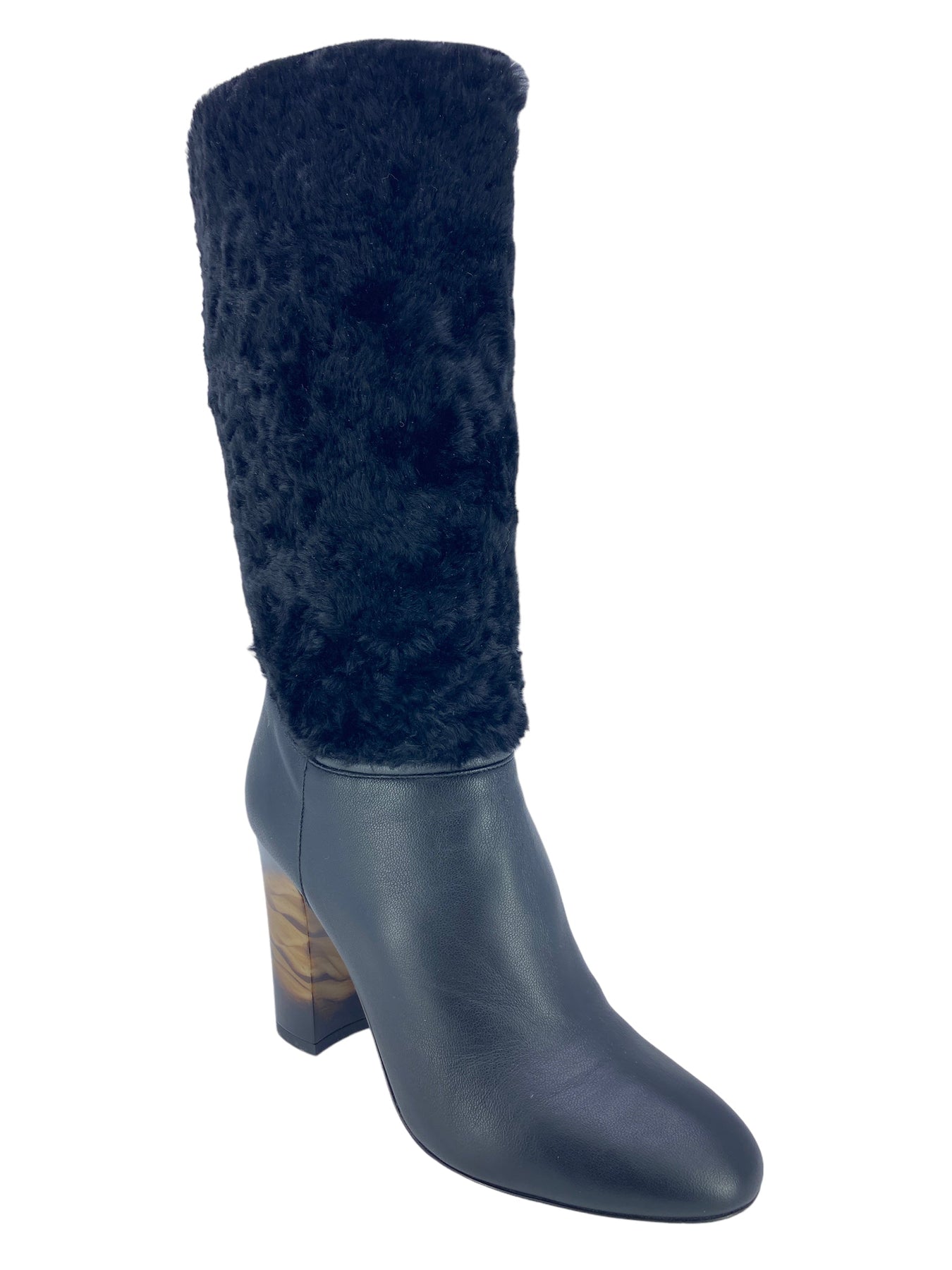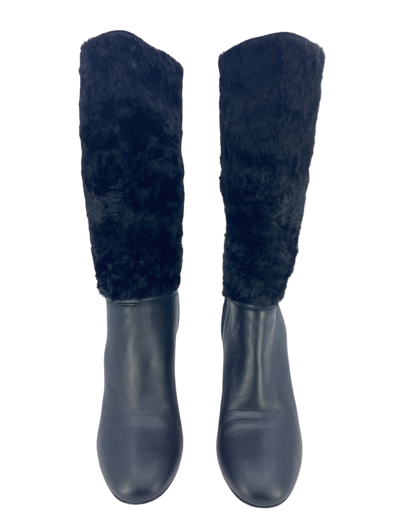 Add to your collection these beautiful Burberry mid calf fur boots, Size 8 I EU 38. These boots are crafted in a smooth black leather and fur. Featuring a 4in" block heel, round toe and slip on design.