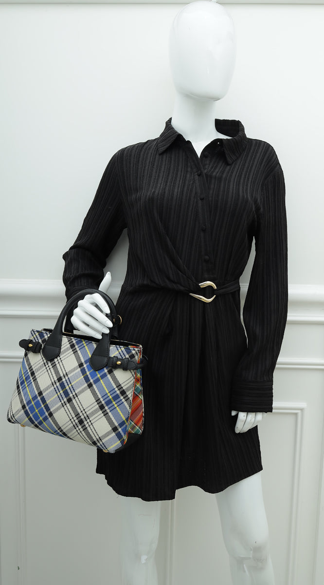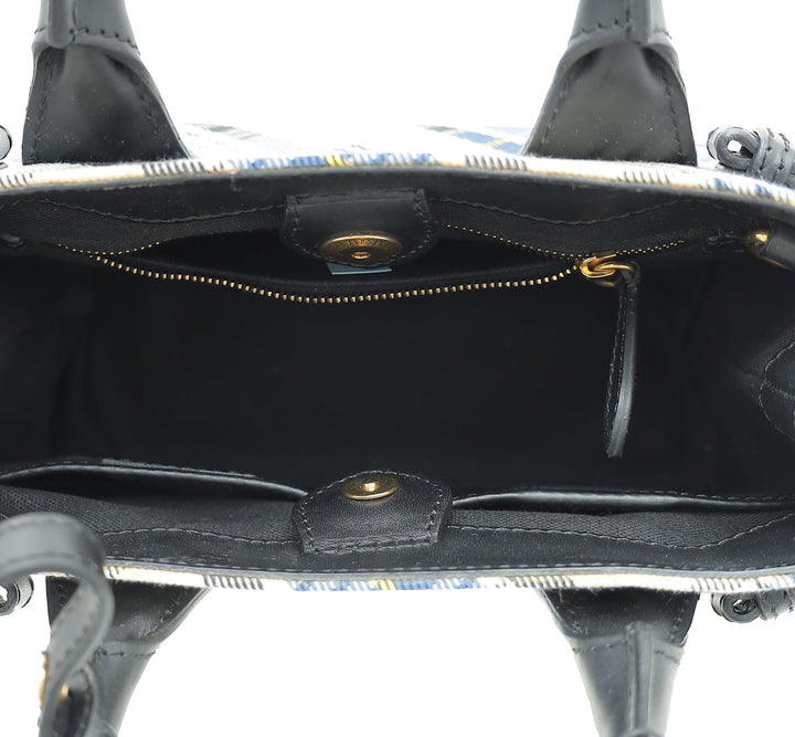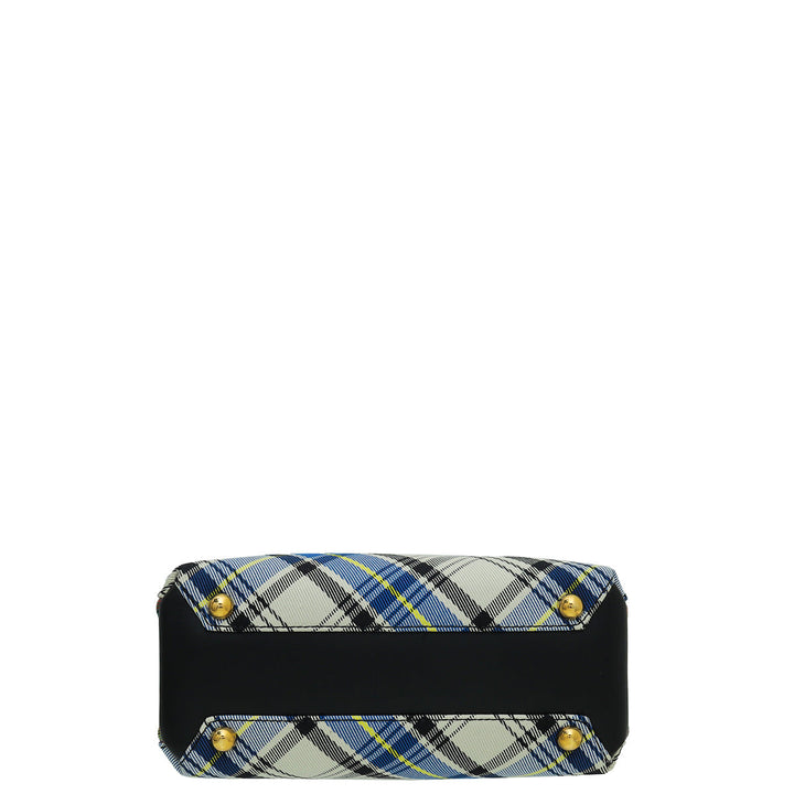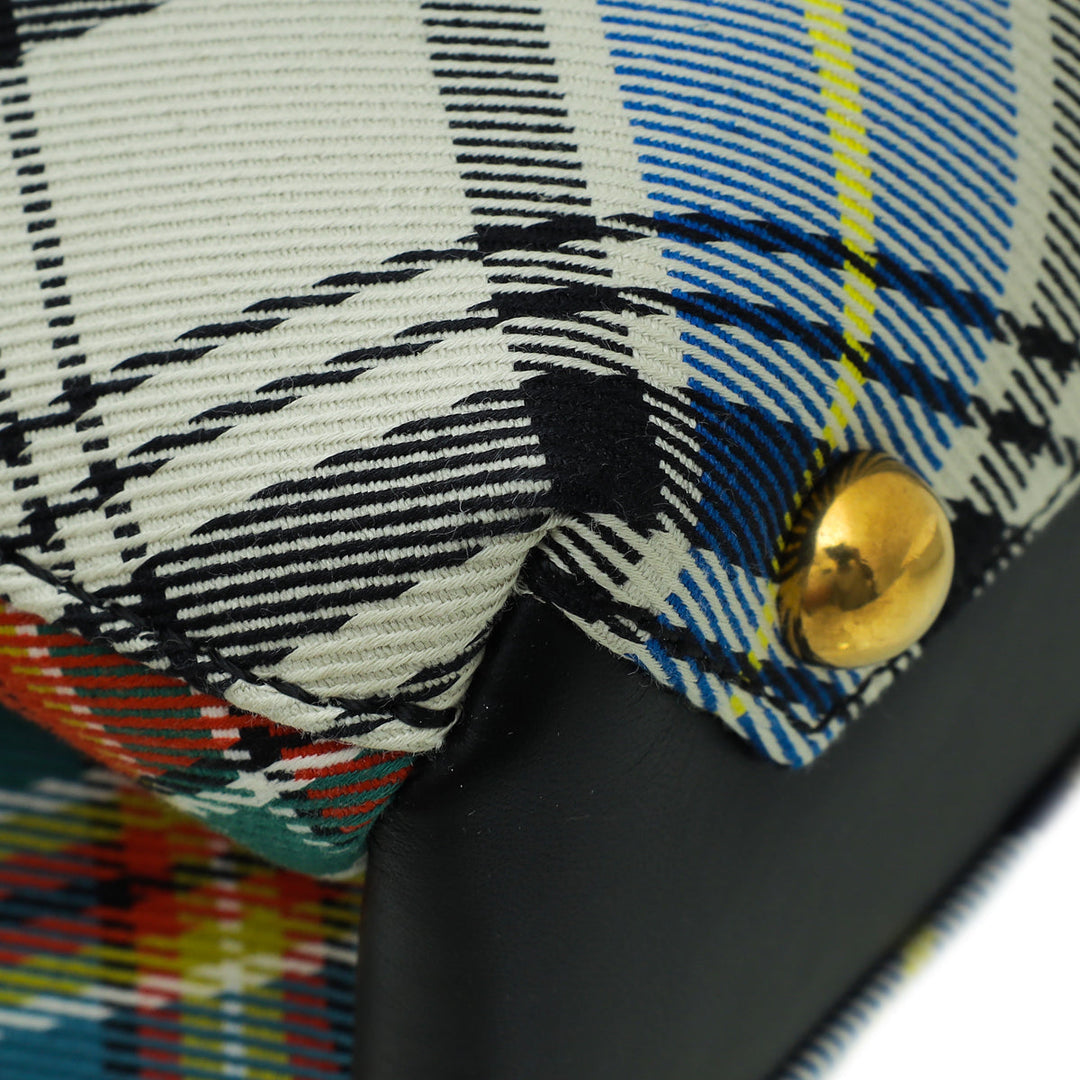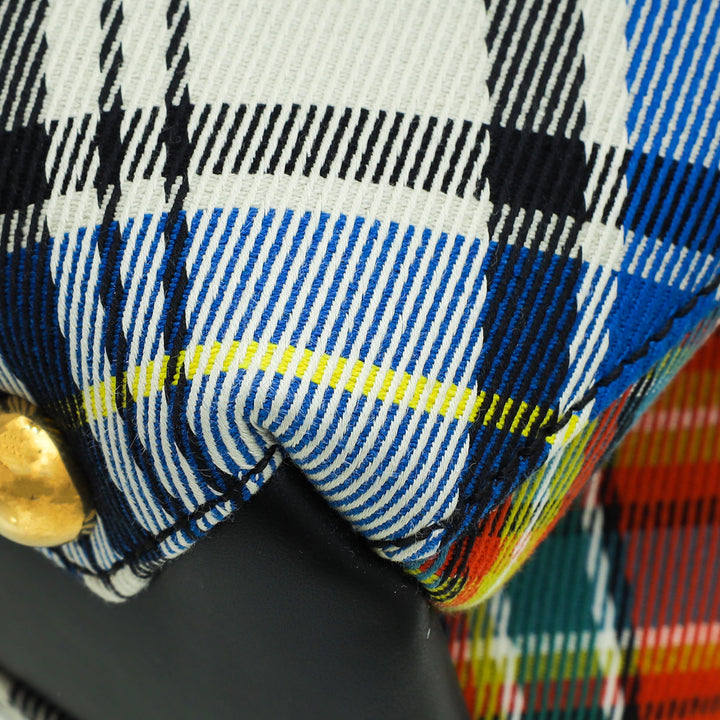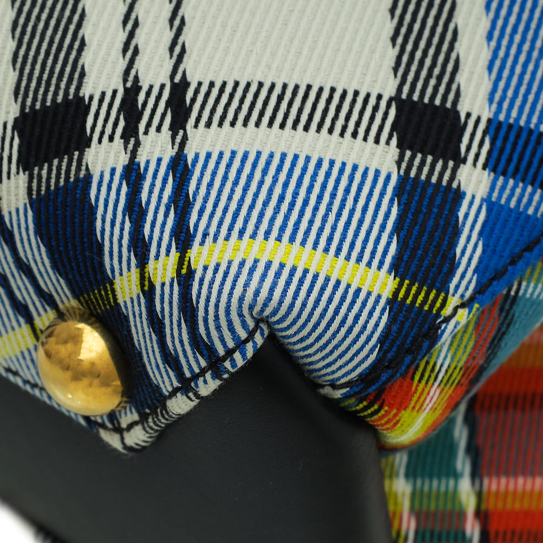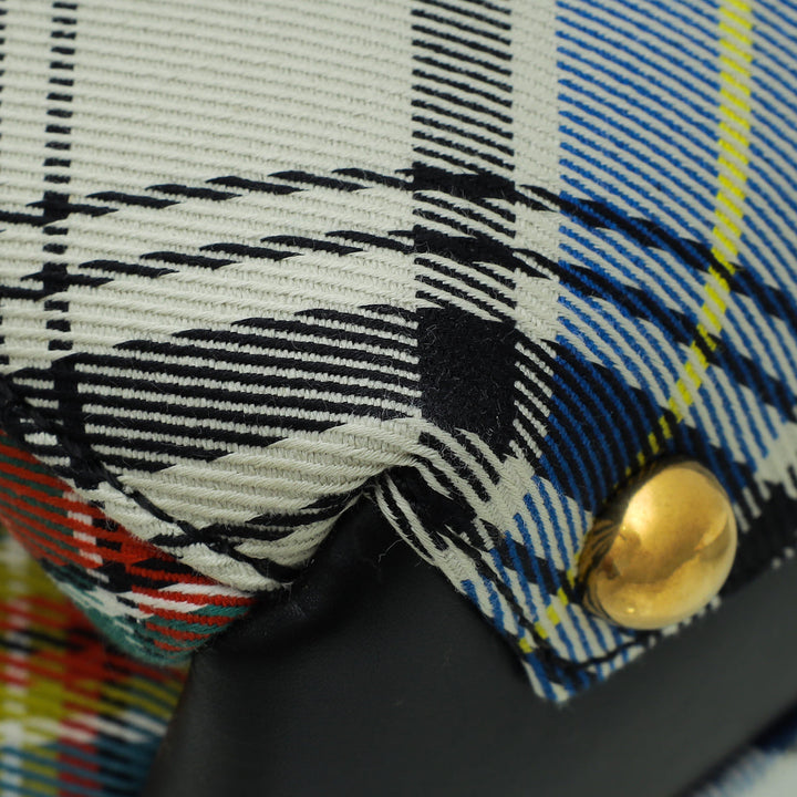 • Material: White Multicolor House Check Canvas with Black Leather Trim
