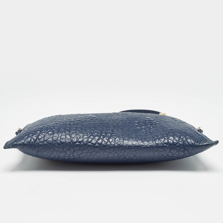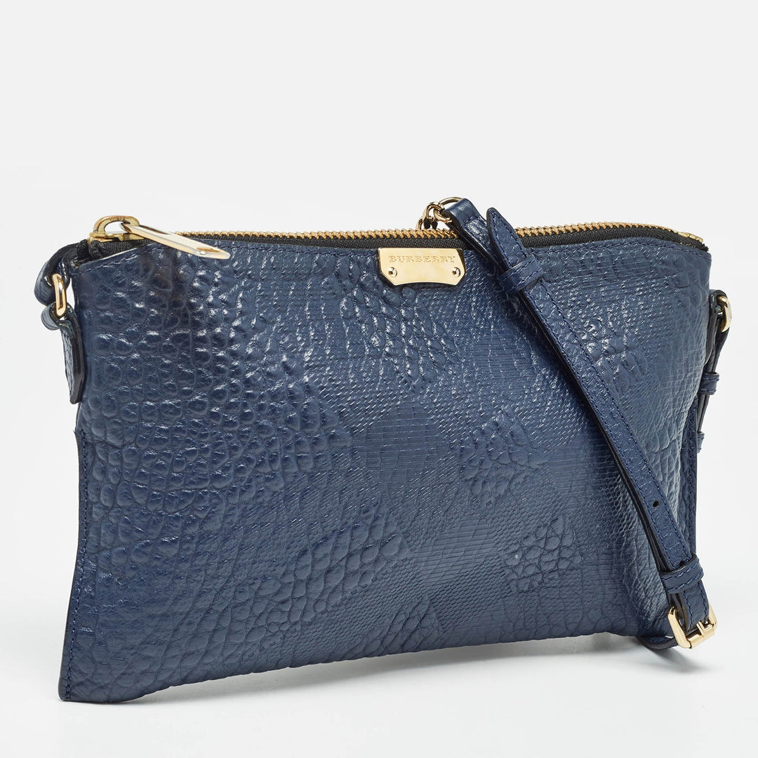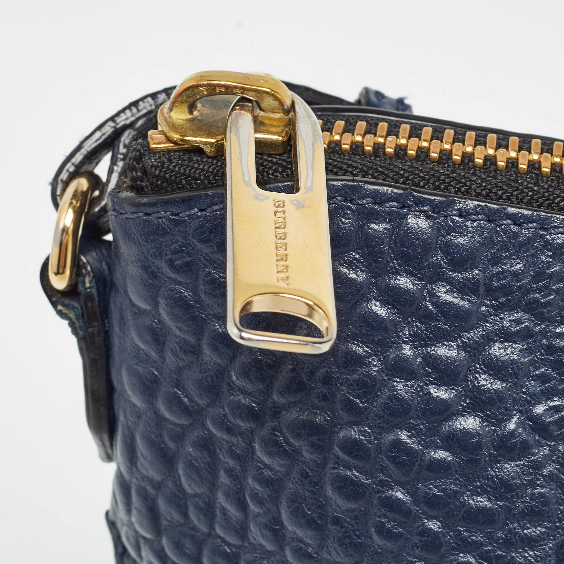 Burberry Navy Blue Grain Check Embossed Leather Peyton Crossbody Bag