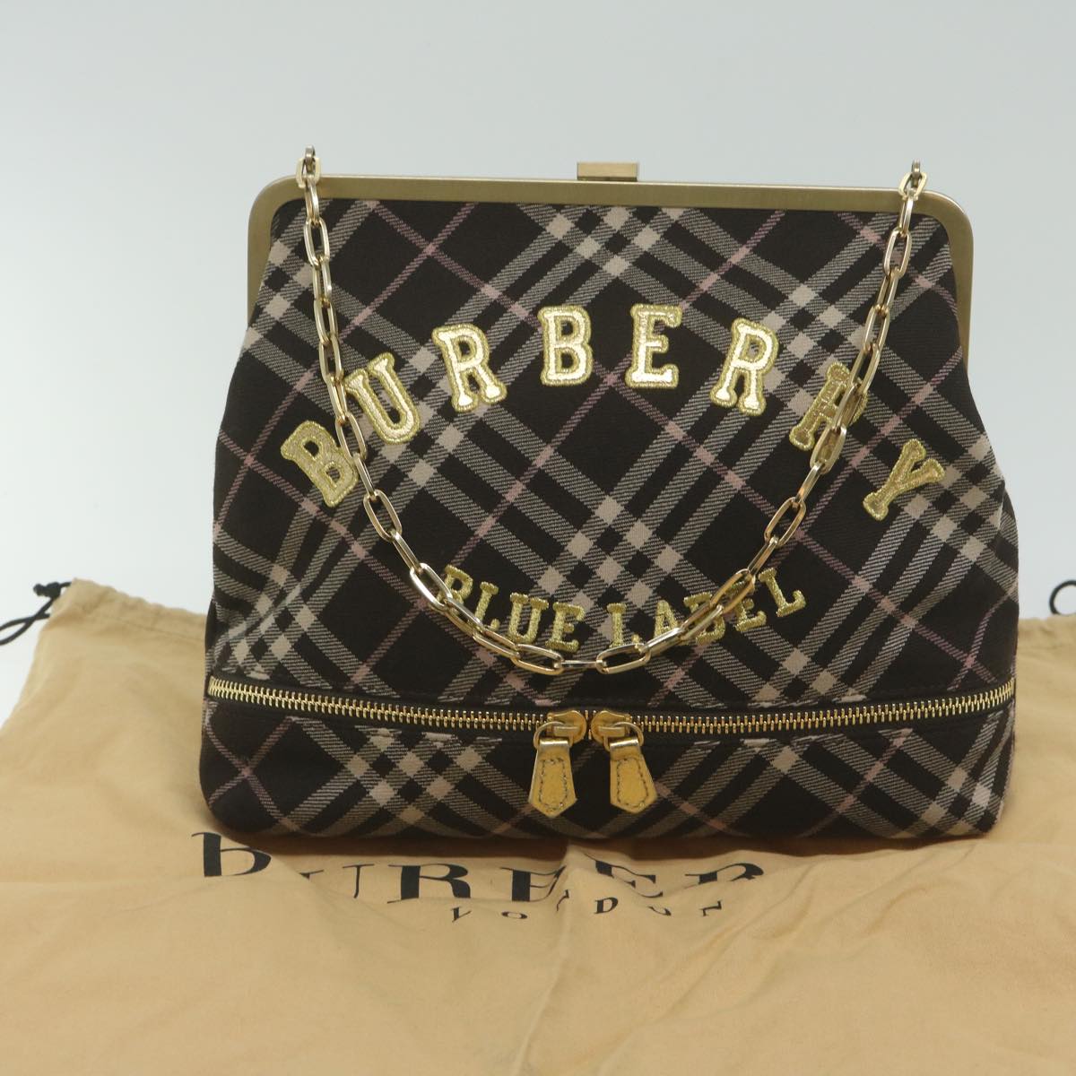 BURBERRY Nova Check Blue Label Chain Hand Bag Canvas Brown Auth 61800