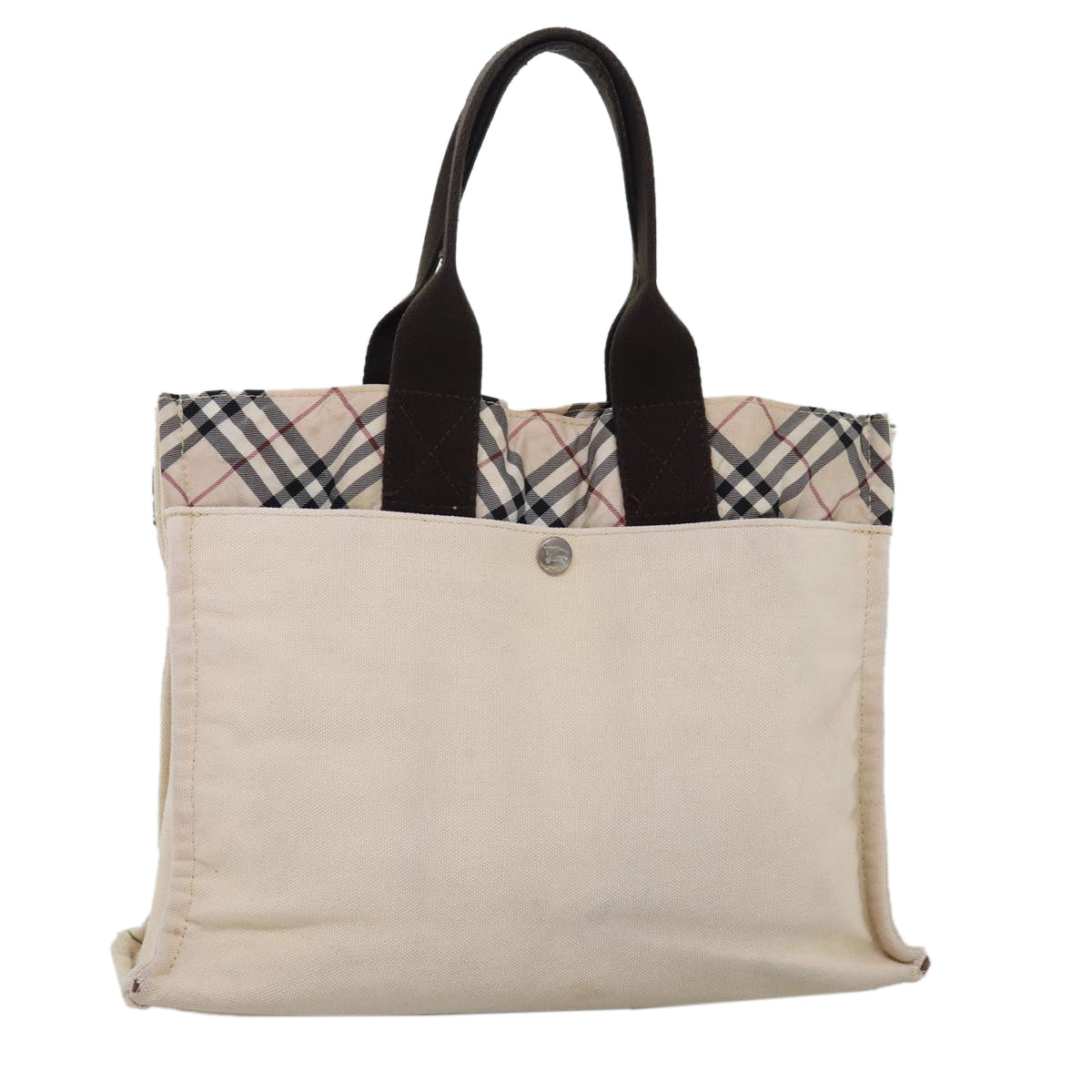 BURBERRY Nova Check Blue Label Hand Bag Canvas Beige Auth bs14383