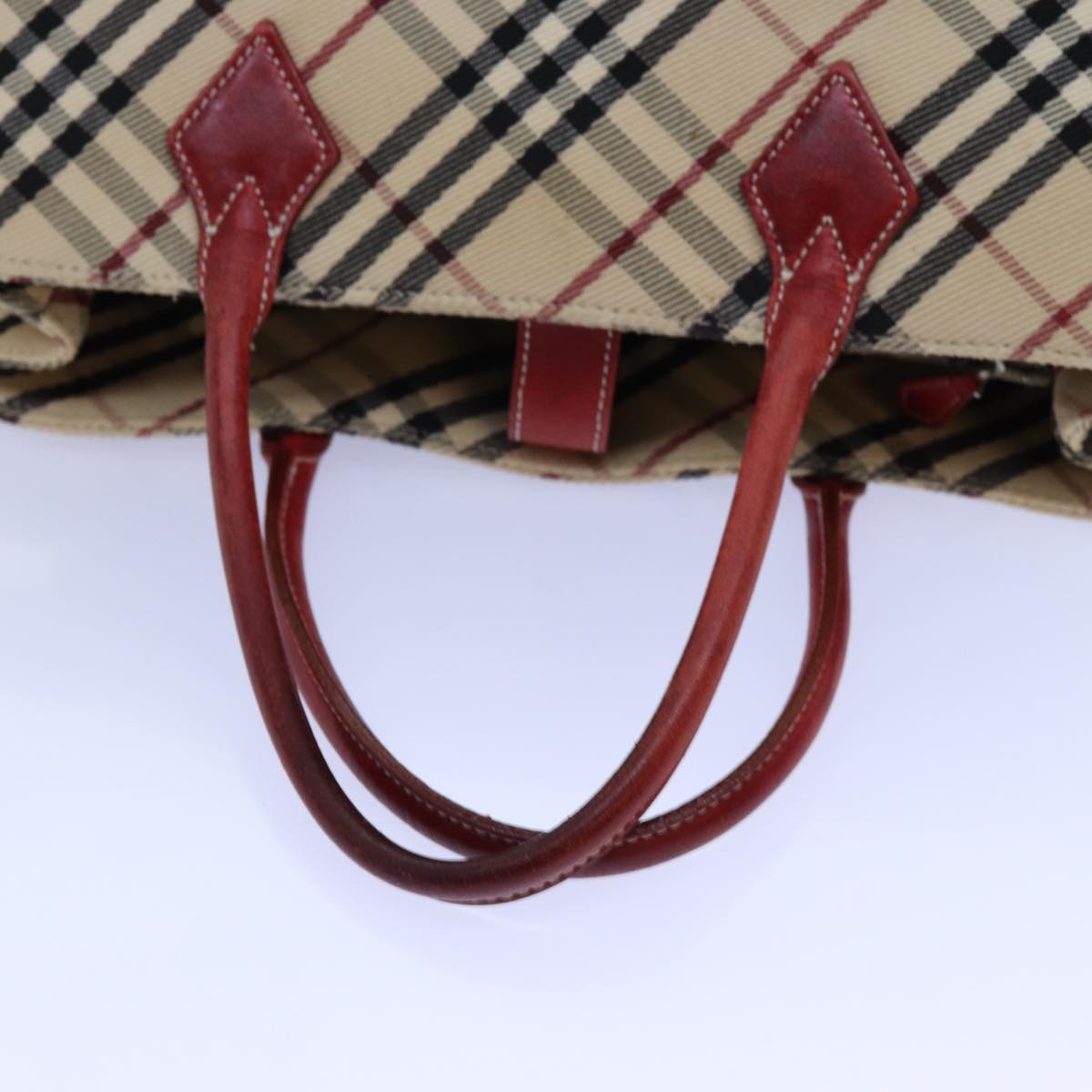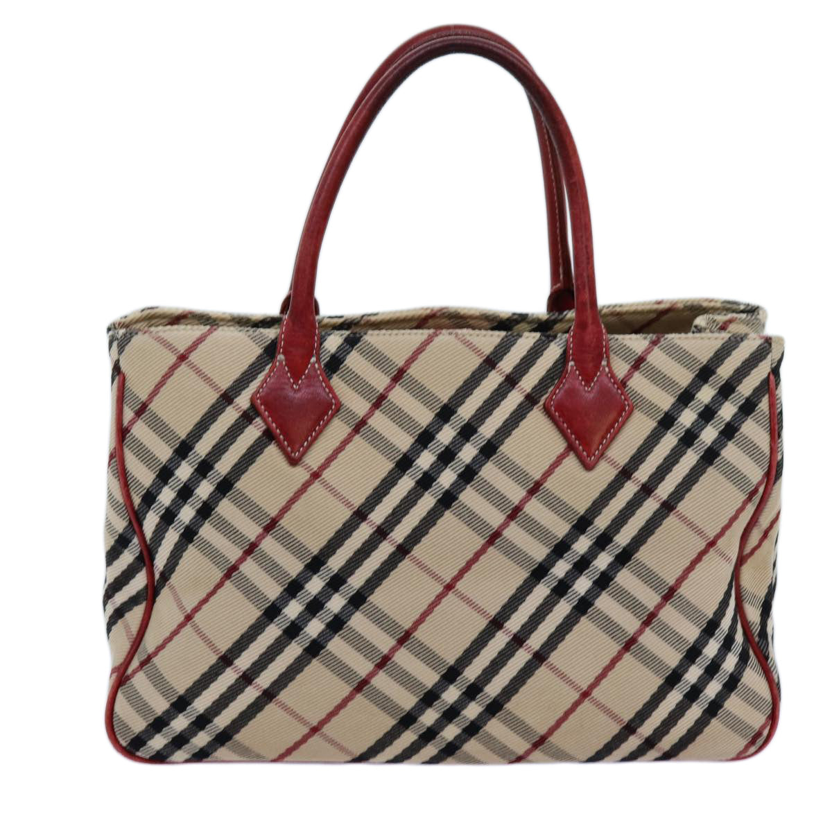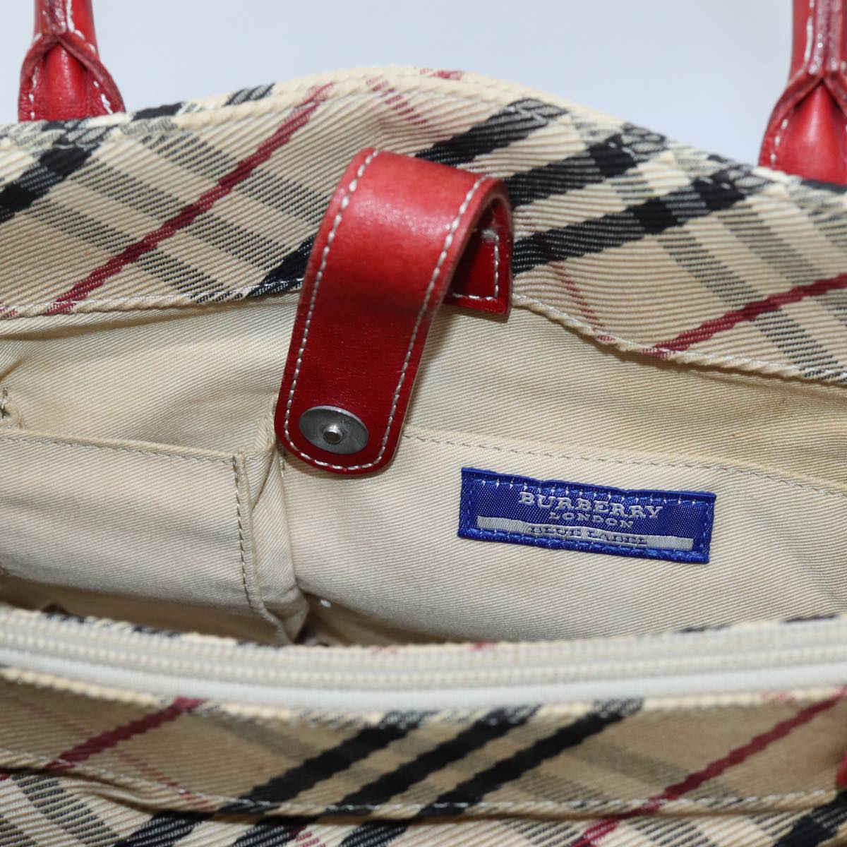 BURBERRY Nova Check Blue Label Hand Bag Canvas Beige Red Auth bs13814